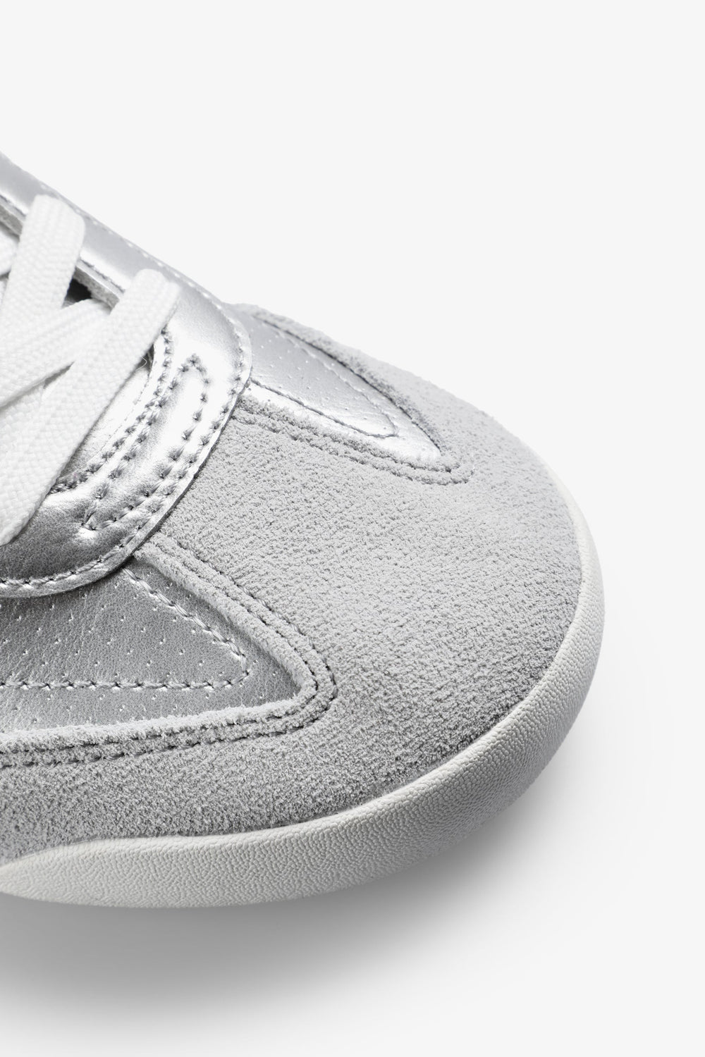 Sneakers made of suede and leather. Retro style. Rubber sole Drawstring fastening. Contrast details. Logo on tongue and side.