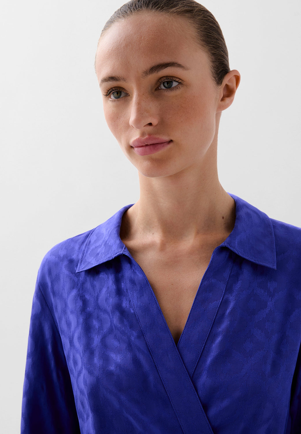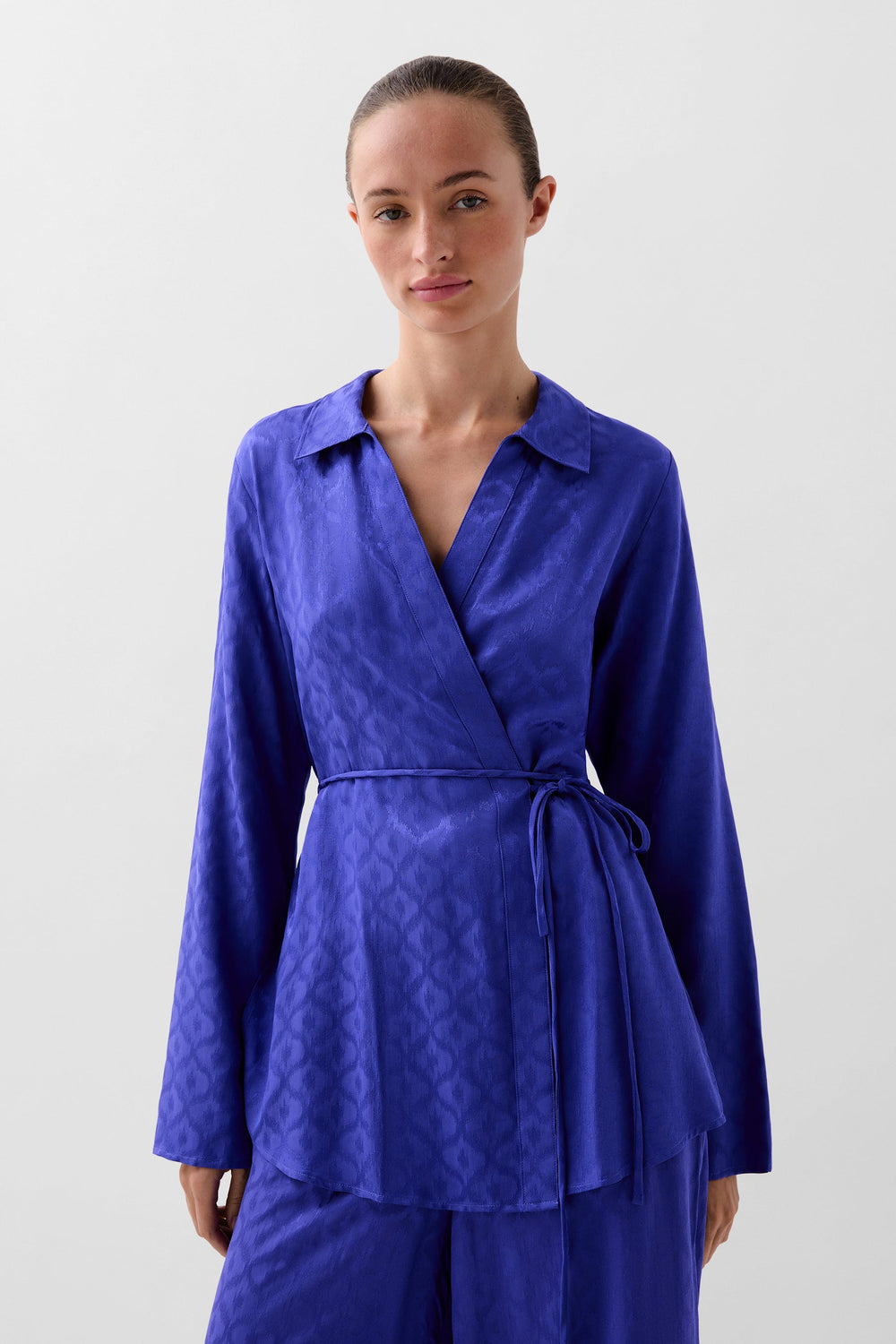 Kaftan made of a flowing fabric with jacquard print. Regular fit, shirt collar, slightly flared long sleeves and tie waist.