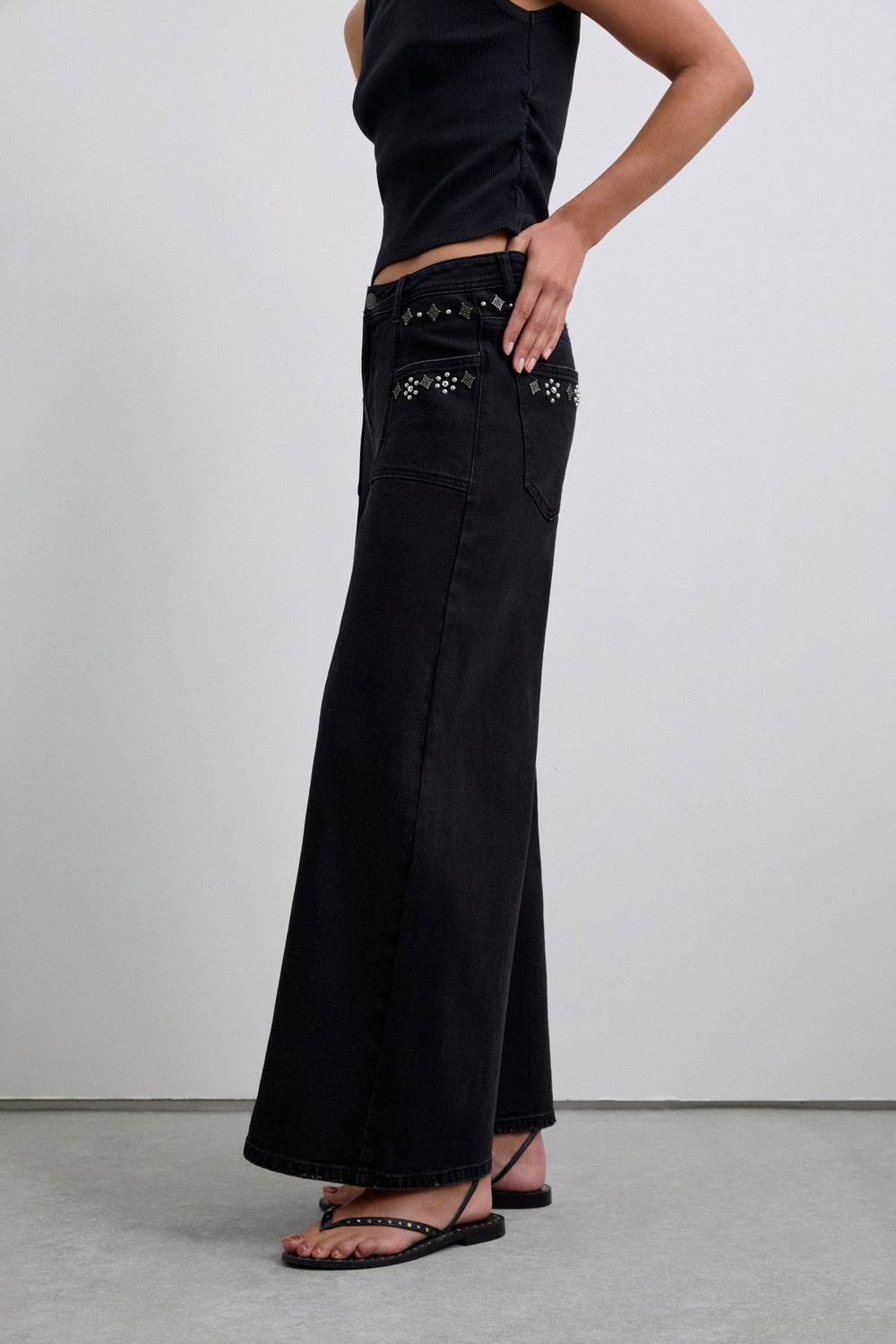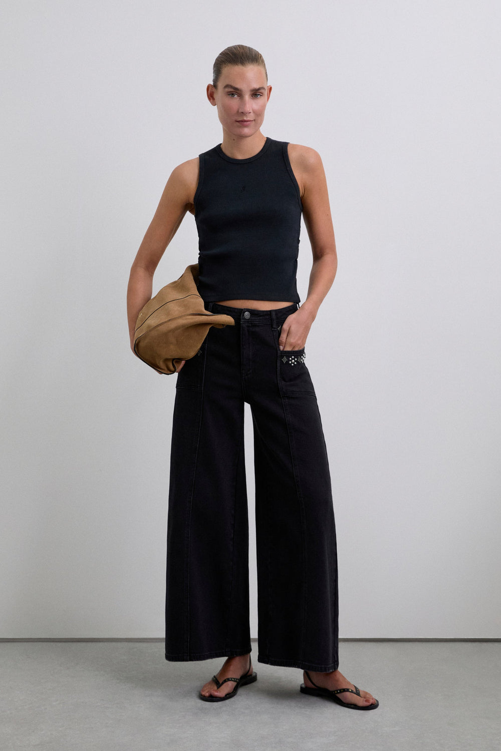 SC CULOTTE DENIM TROUSERS WITH STUDS