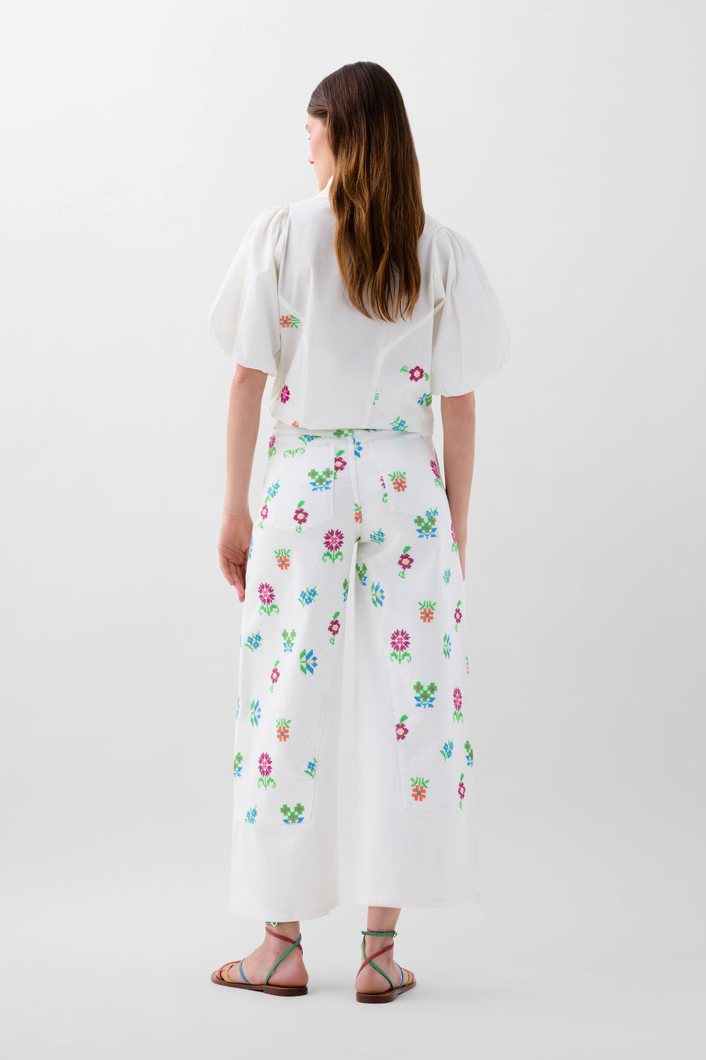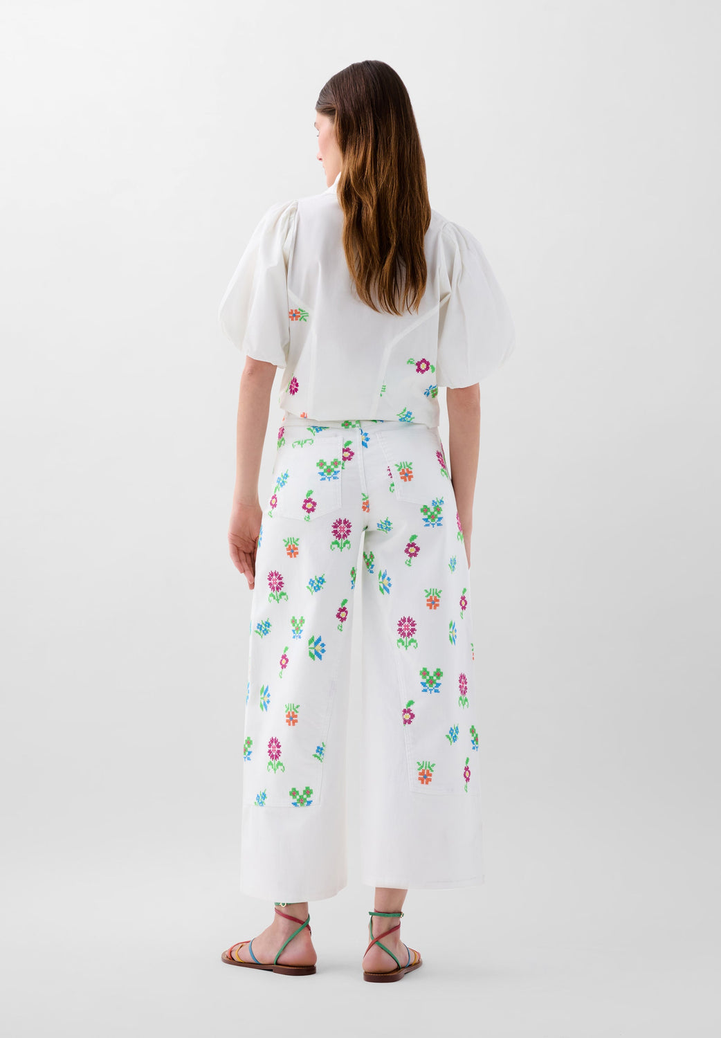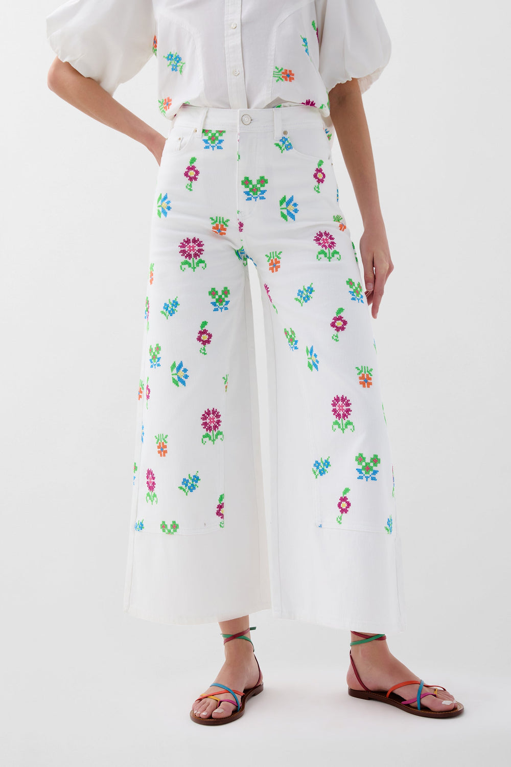 CULOTTE JEANS WITH EMBROIDERED FLOWERS