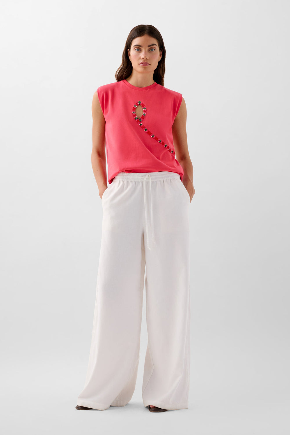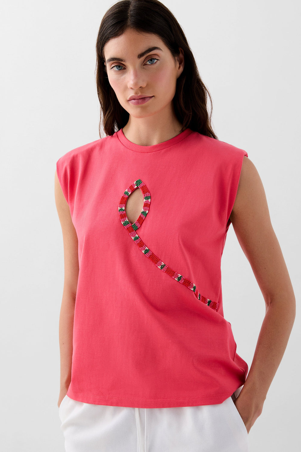 T-SHIRT WITH BEADED OPENING DETAIL