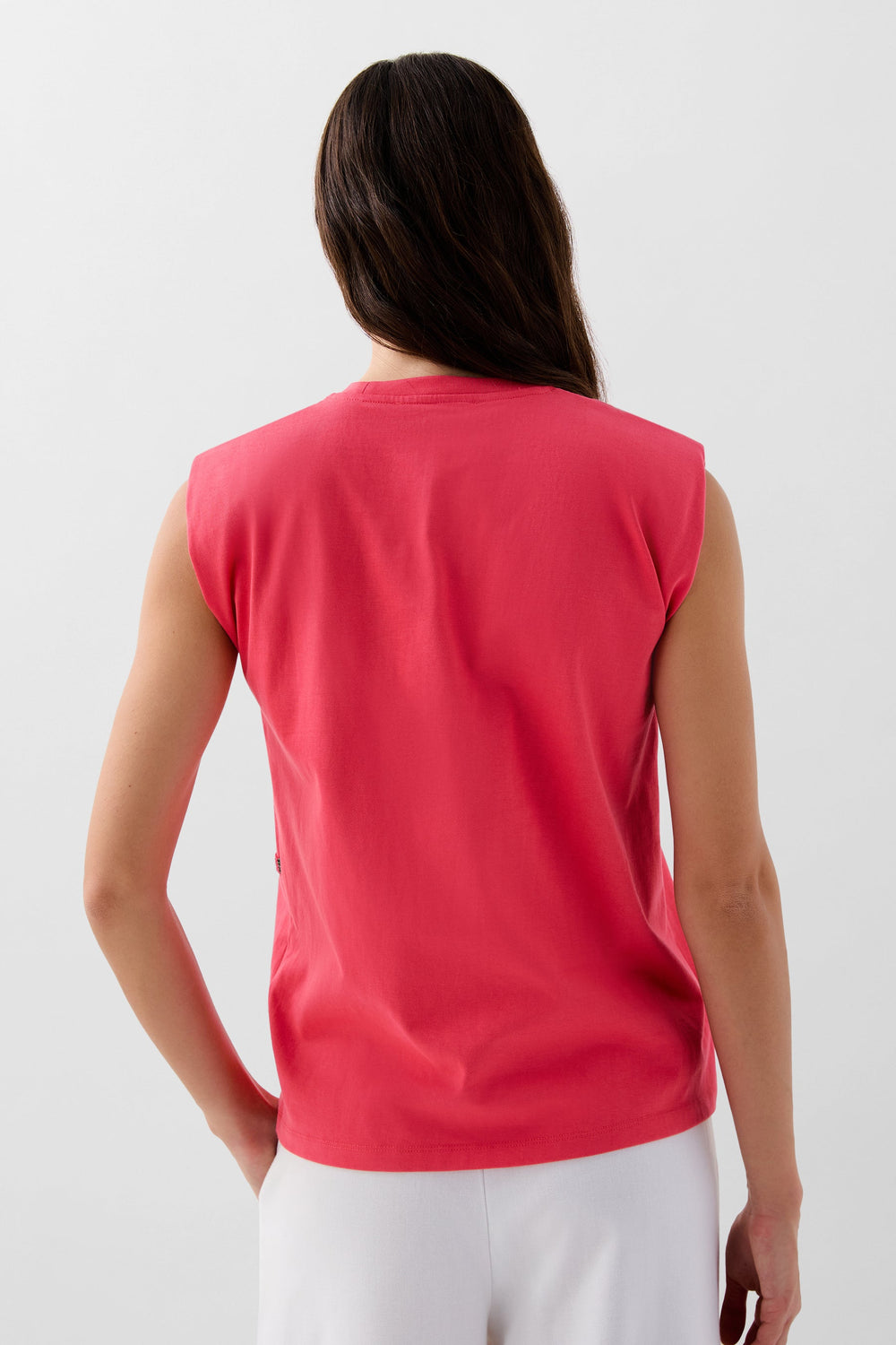 T-shirt made of 100% cotton with a slit detail on the chest. Regular fit, round neck and sleeveless.