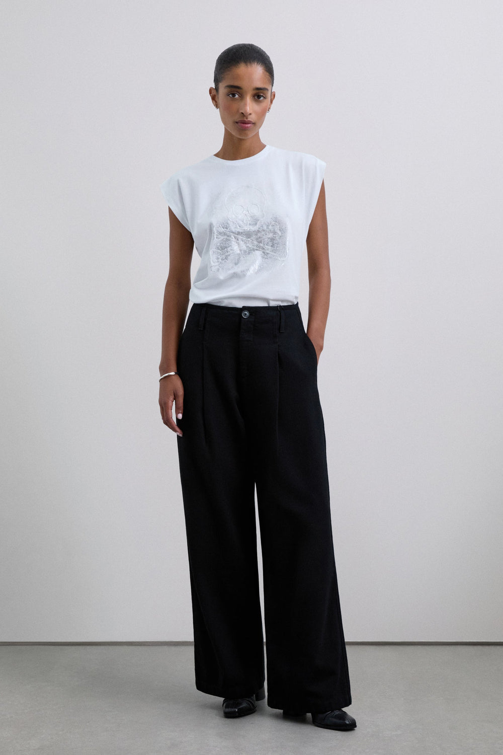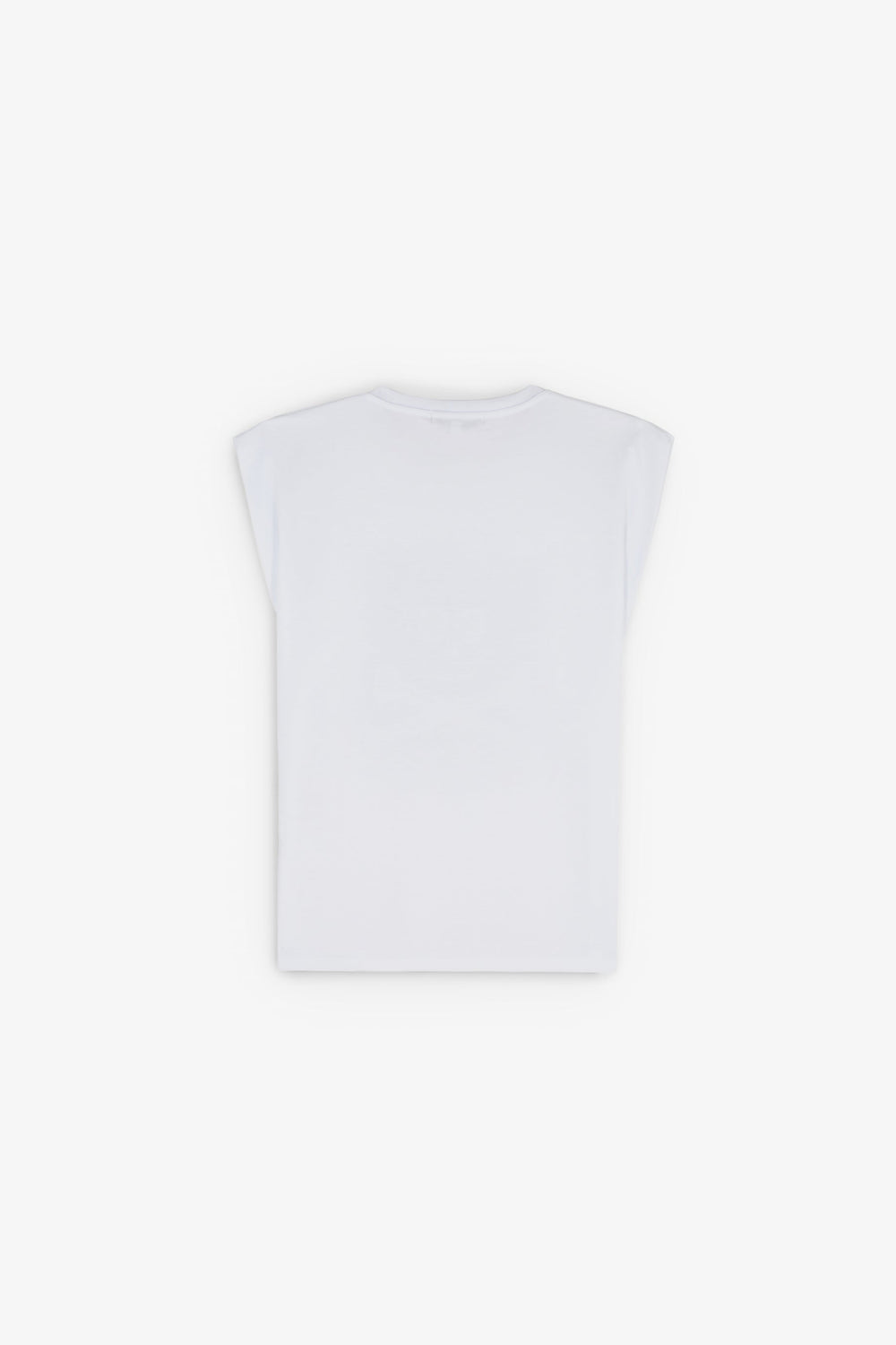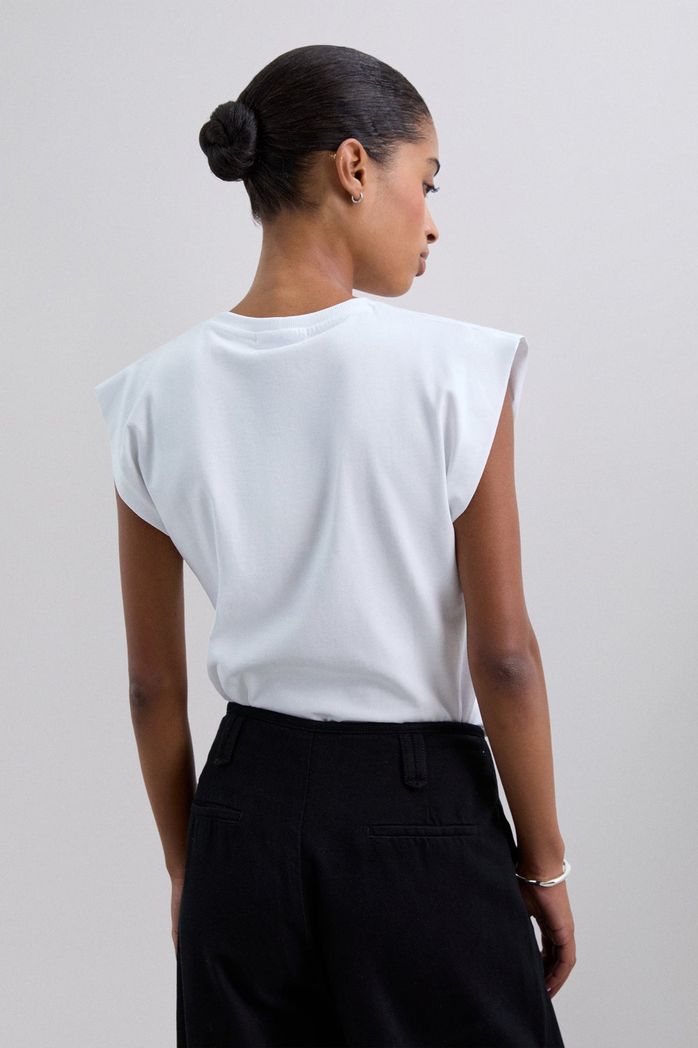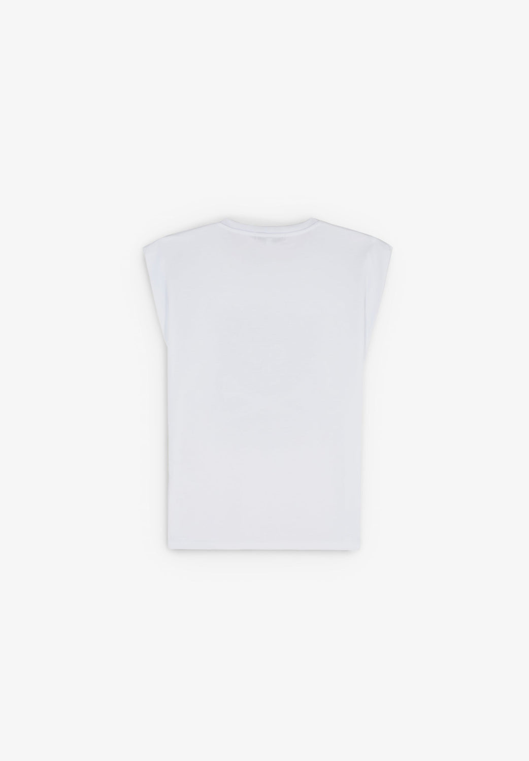T-shirt made of 100% cotton. Regular fit, round neck and sleeveless with pleats.