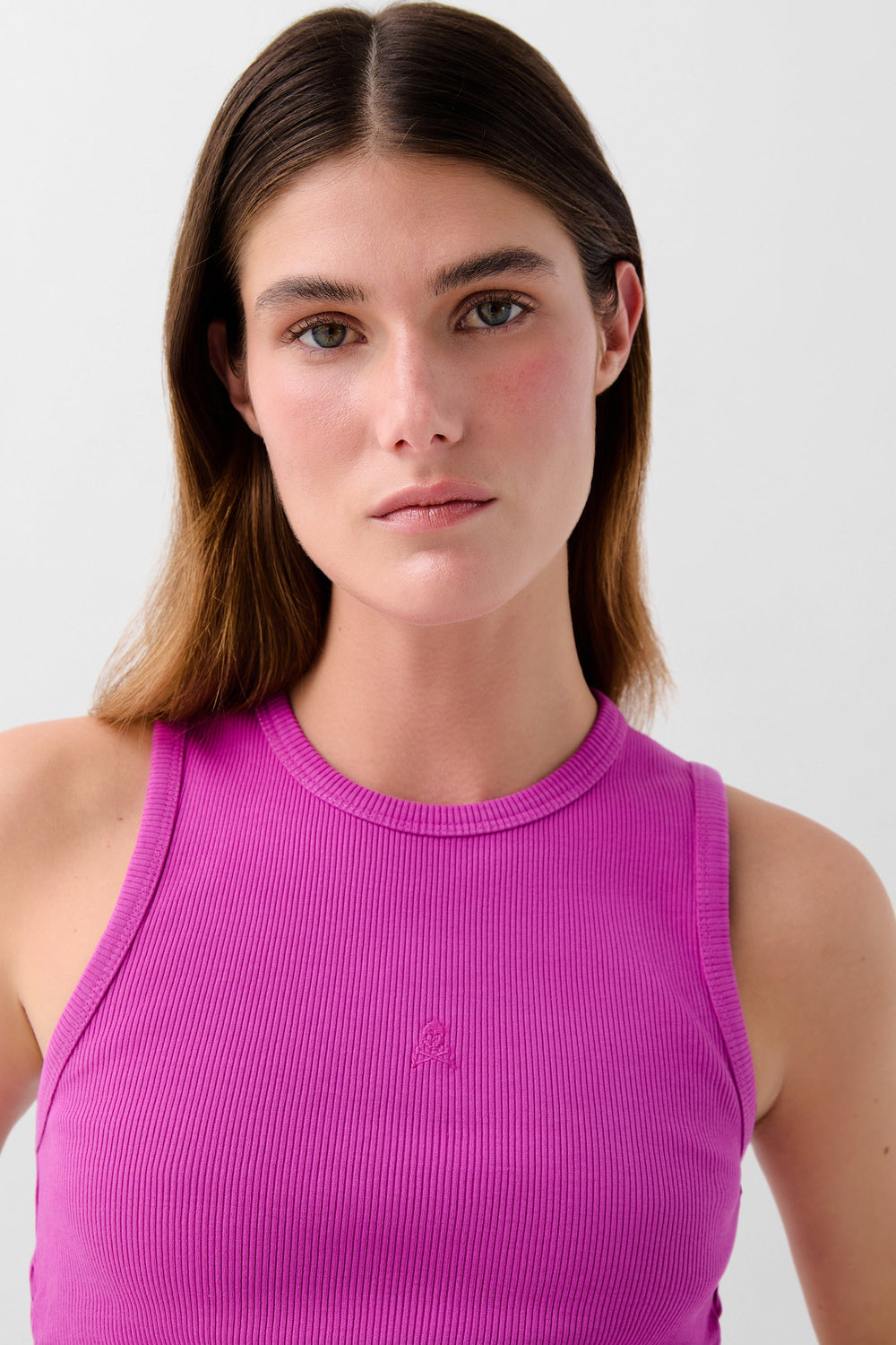 Tank top made of ribbed fabric in a 90% BCI cotton blend with elastane. Slim fit, round neck and sleeveless. Gathered side details.