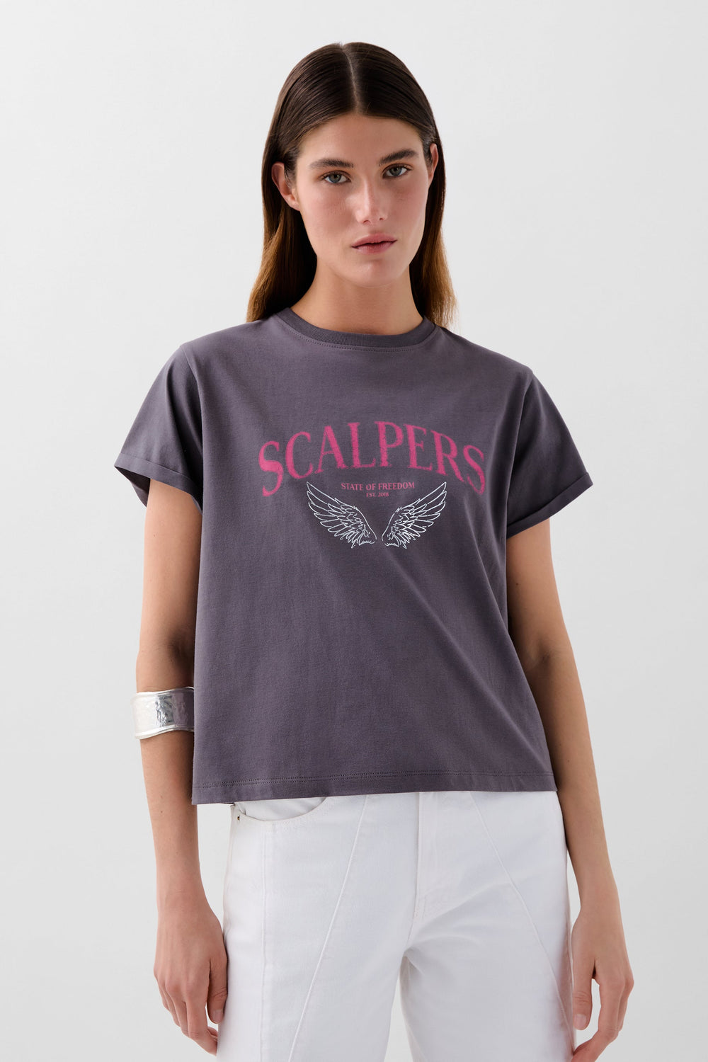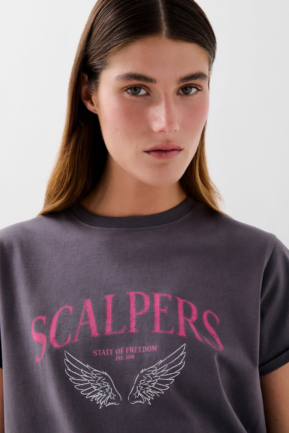 T-shirt made of 100% cotton. Regular fit, round neck and short sleeves. Front print on chest.