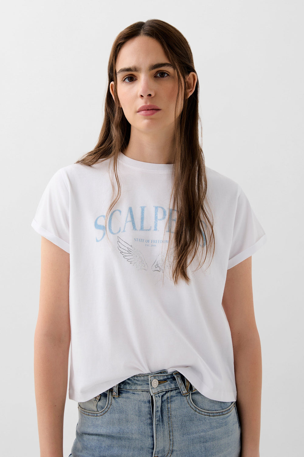 T-shirt made of 100% cotton. Regular fit, round neck and short sleeves. Front print on chest.