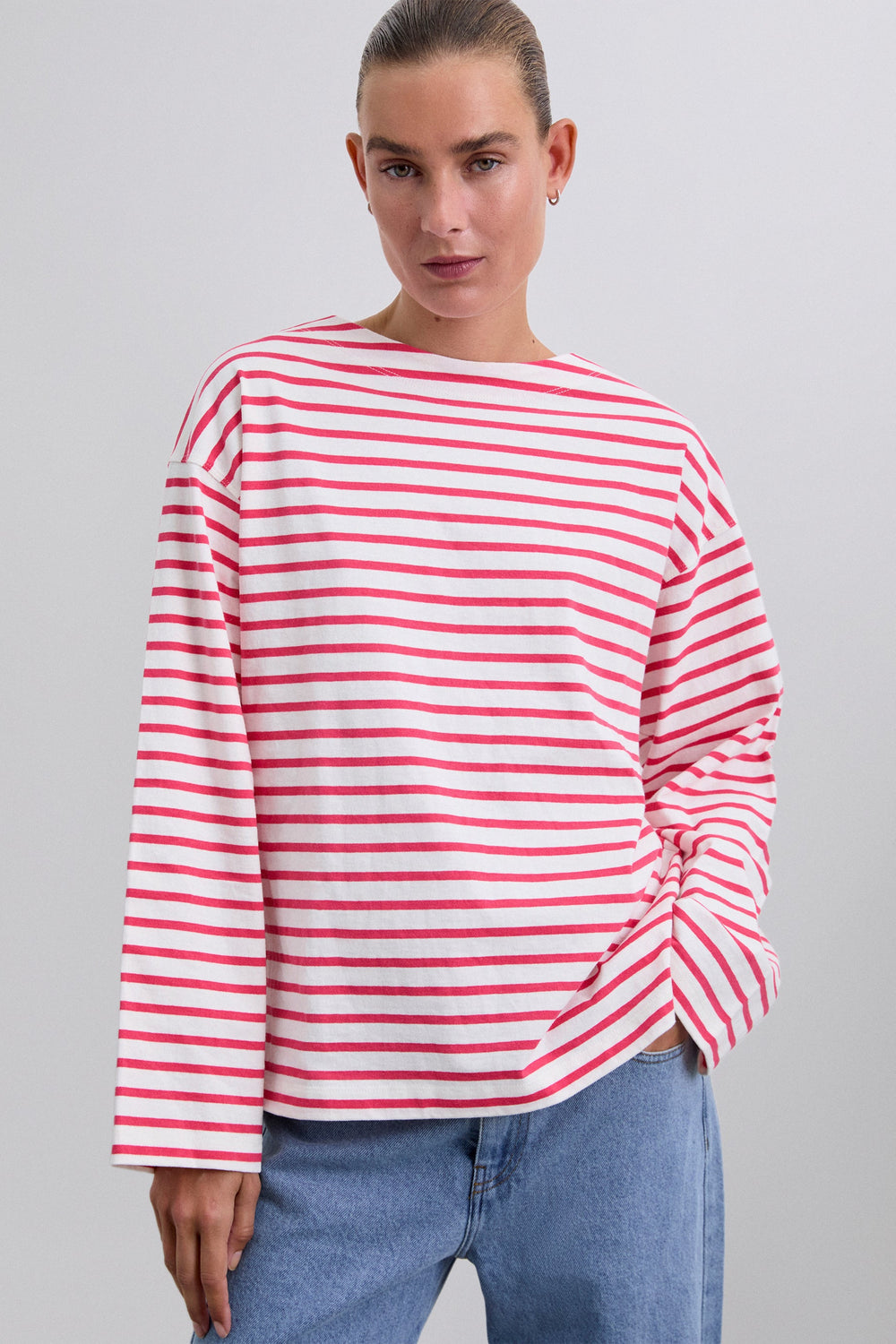 Stripe T-shirt made from 100% cotton. Relaxed fit, round neck and long sleeves. Logo label detail at the back.