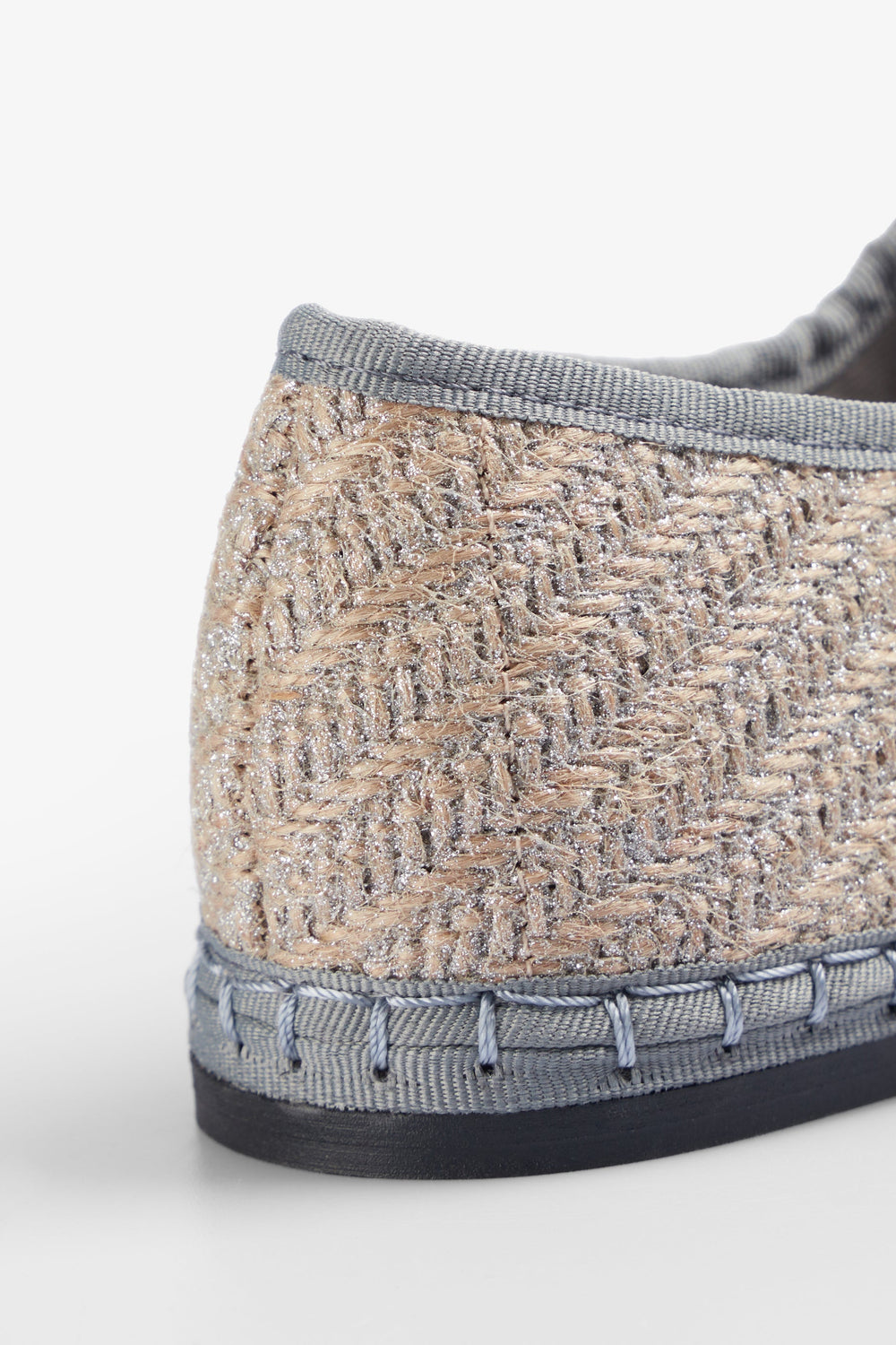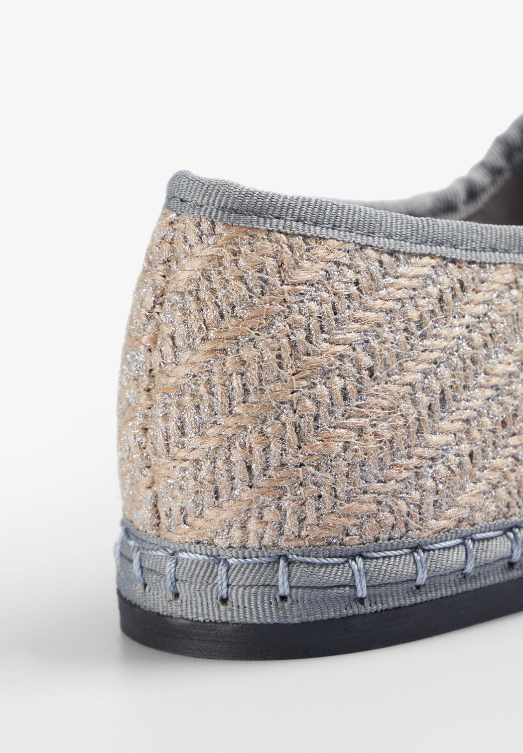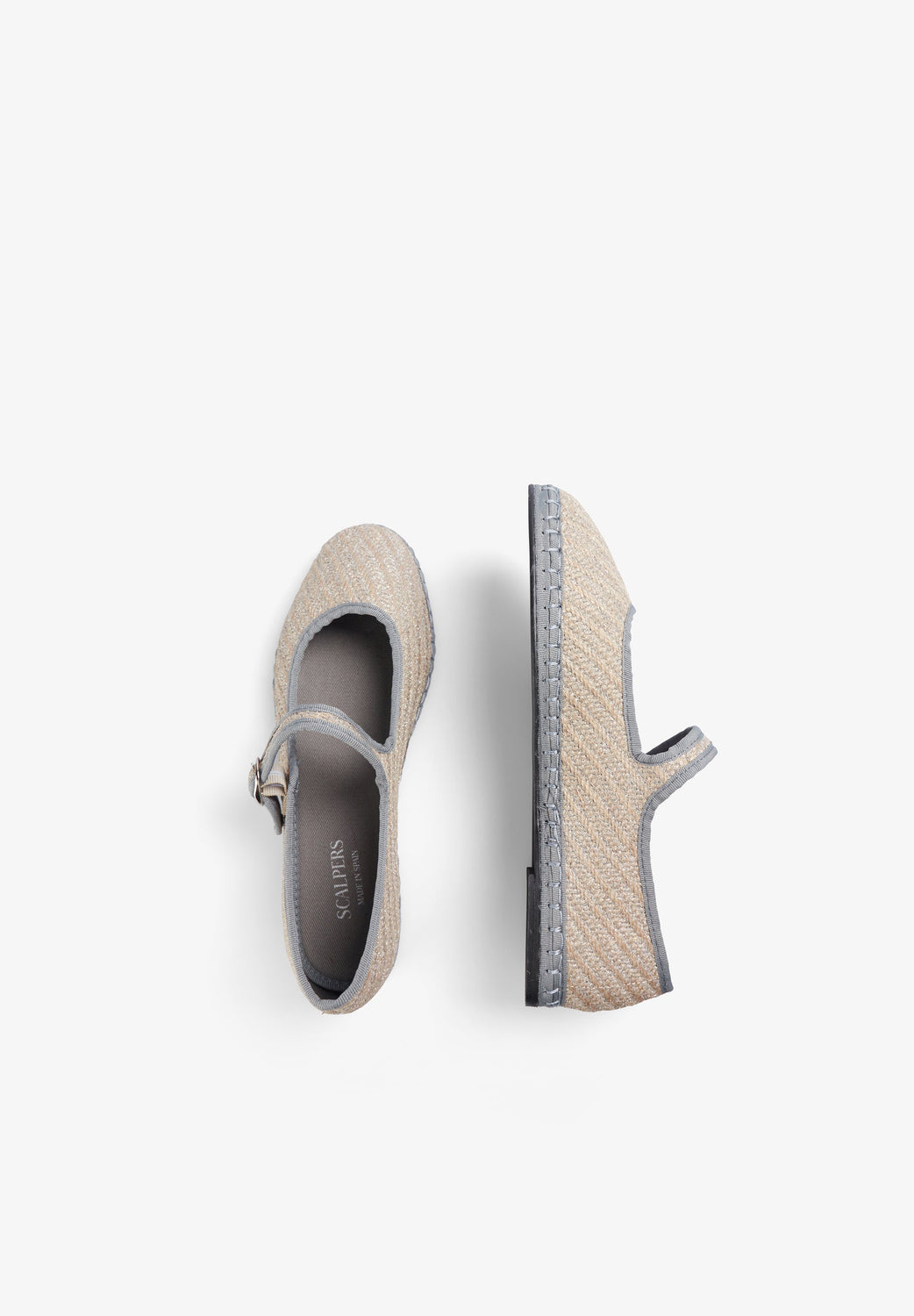 Slippers made in a rustic fabric with metal buckle fastening and contrast sole and trim.