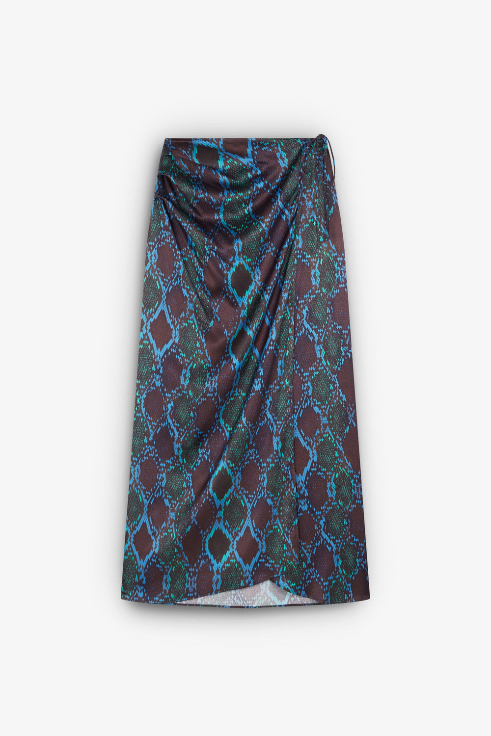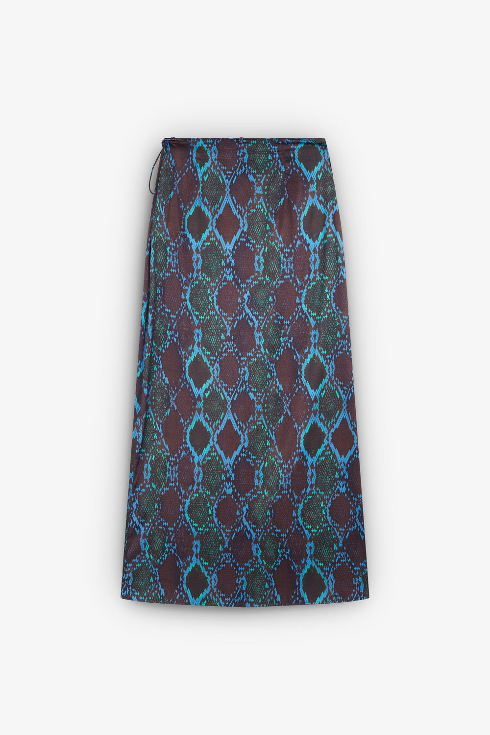 Midi sarong skirt with an animal print, made of slightly stretchy fabric. Regular fit, fastening with zip and side bow.