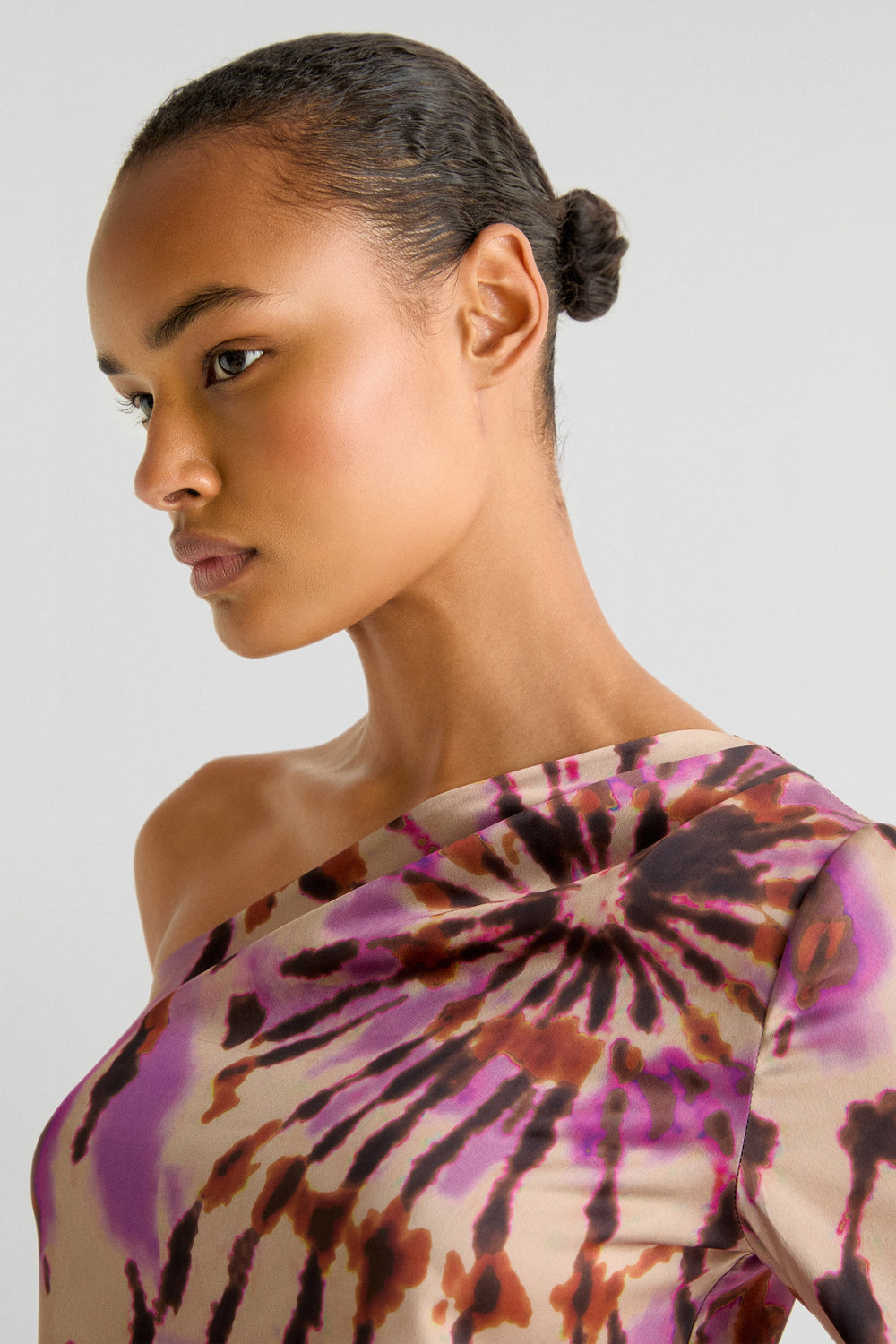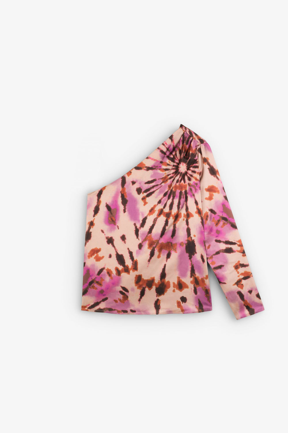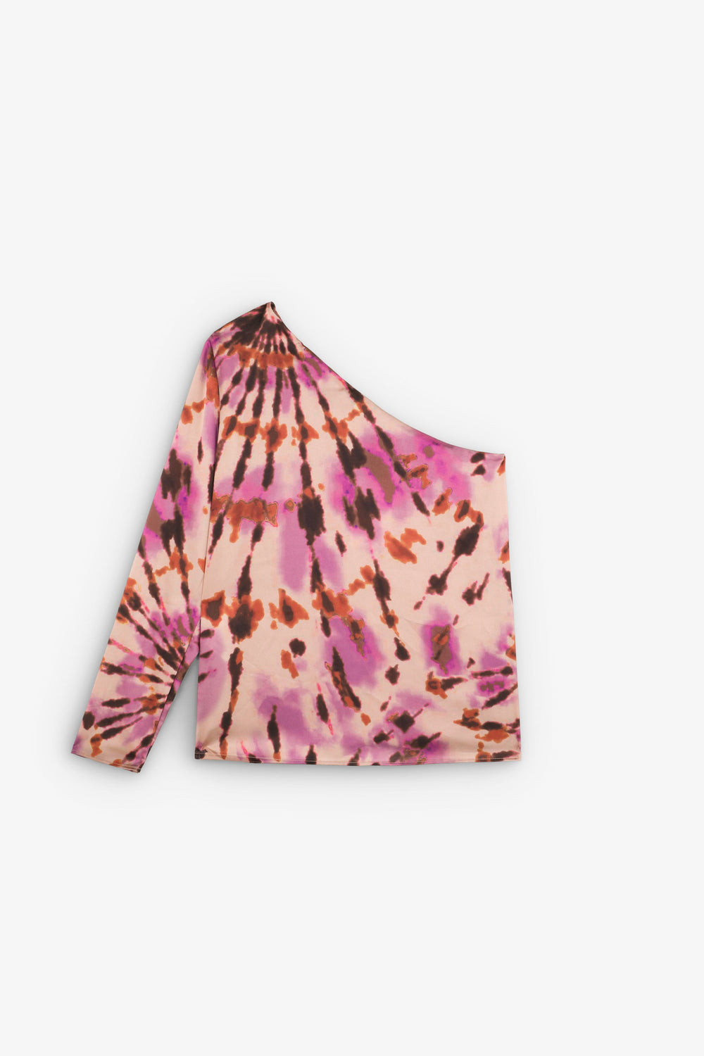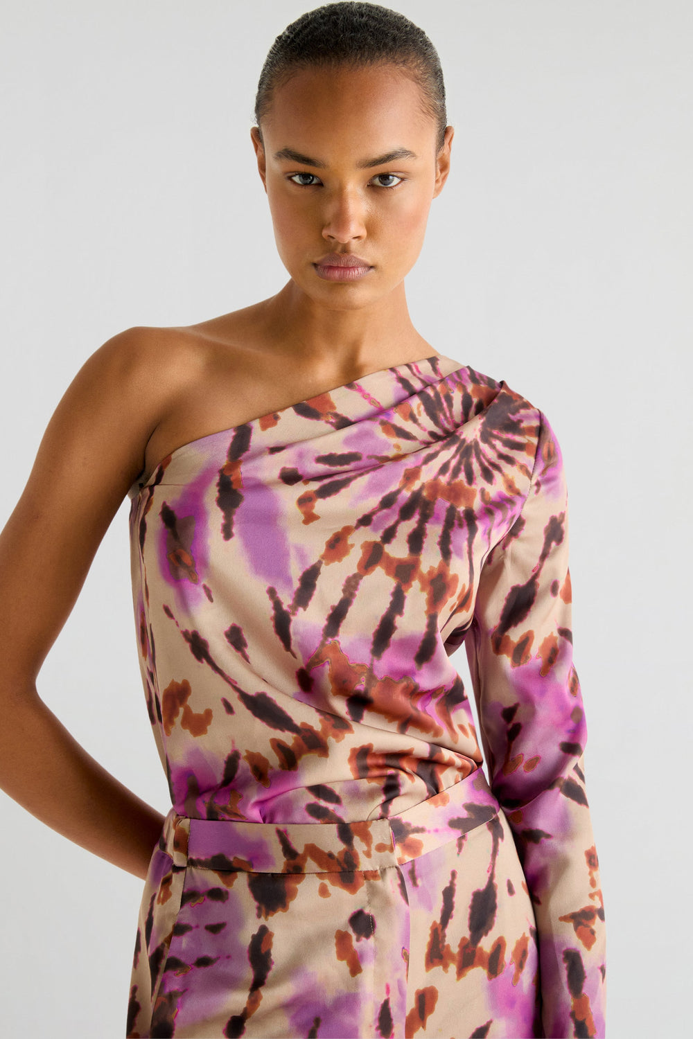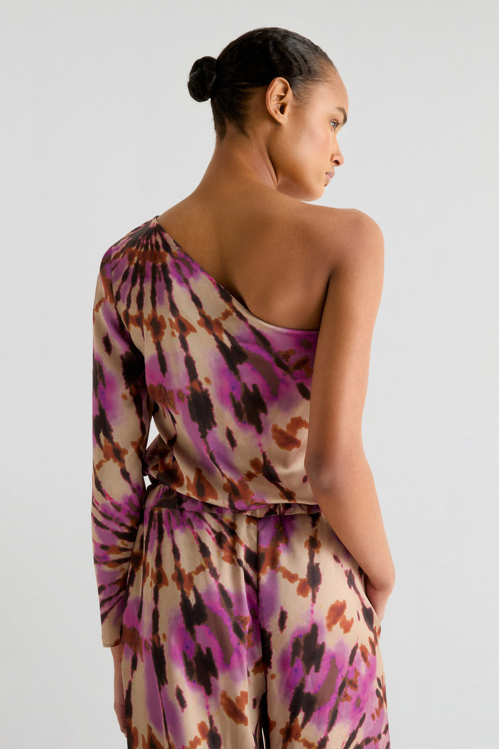 Top with a tie-dye print made of flowing fabric. Regular fit, asymmetric neckline and zip fastening. Long sleeves.