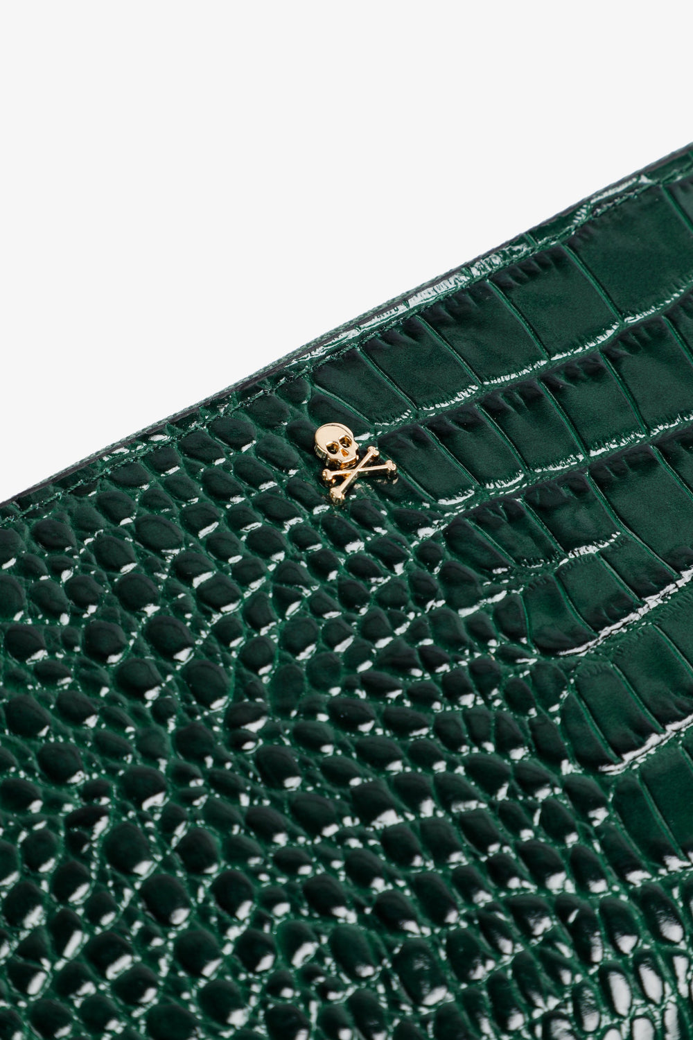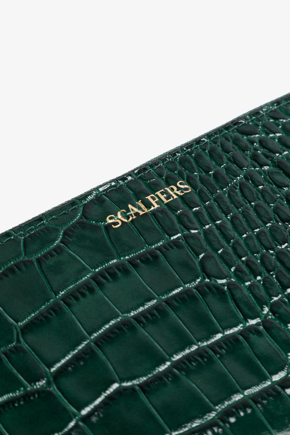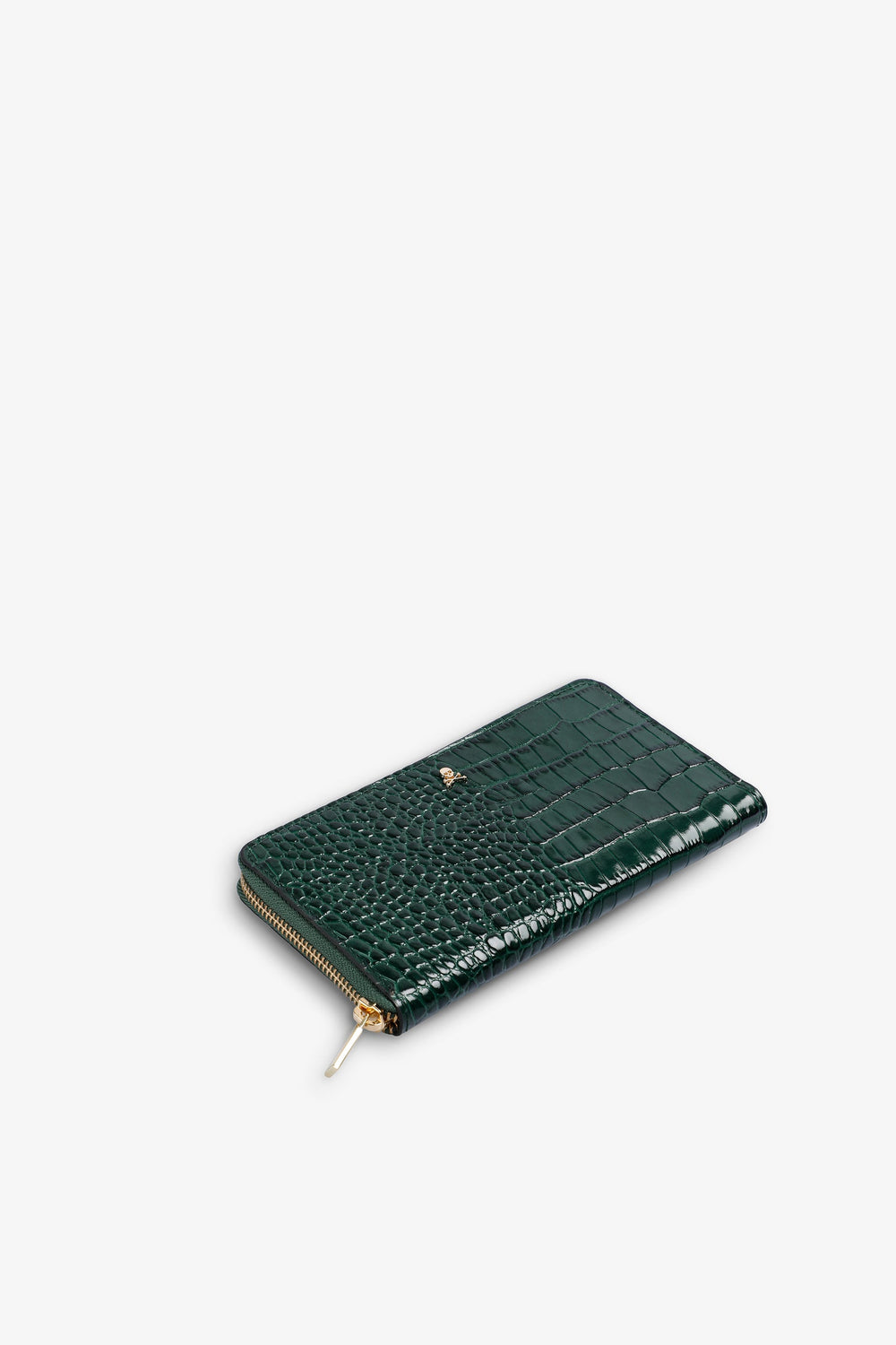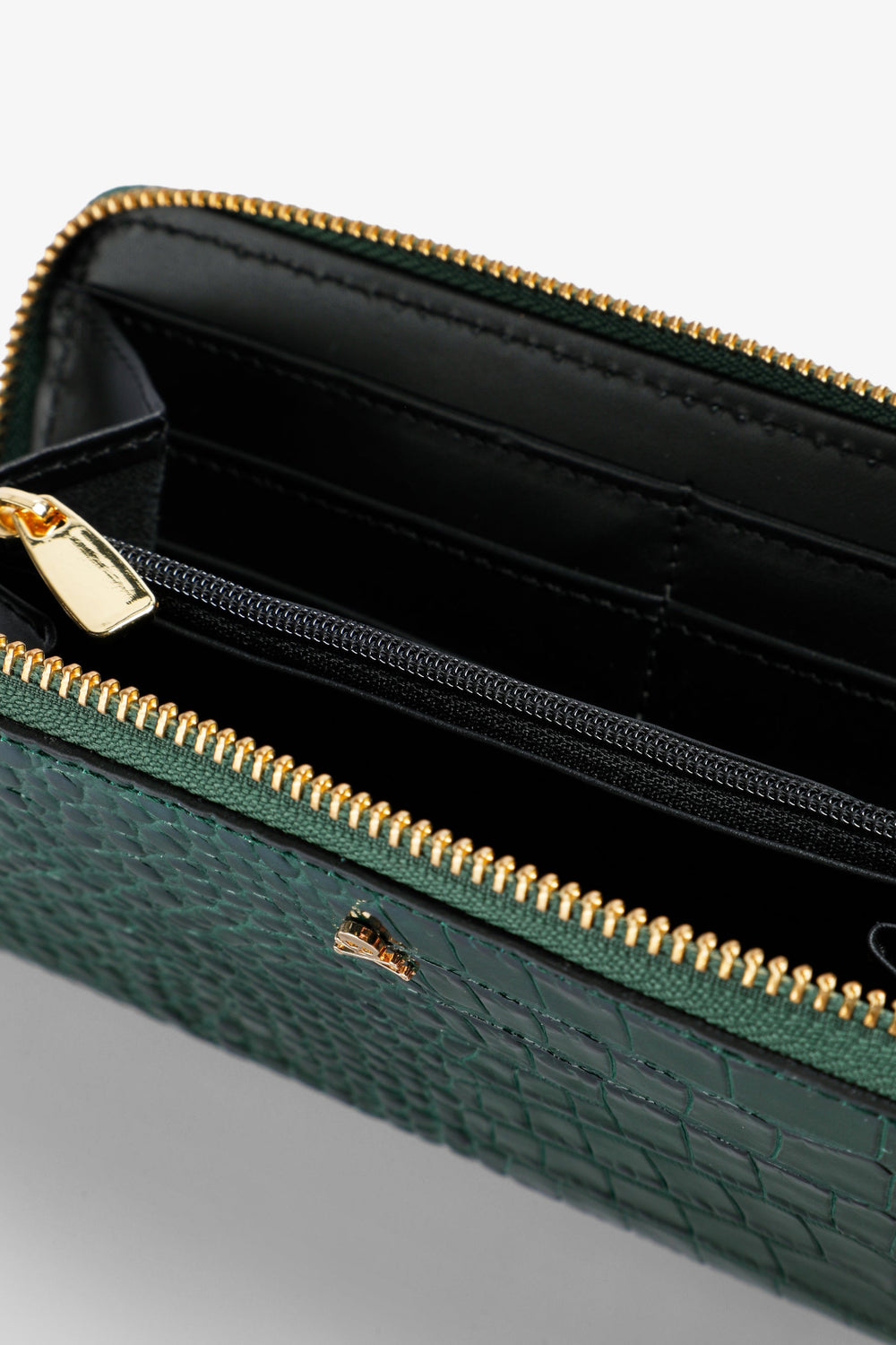Wallet made of 100% leather with an animal print texture. Interior with space for cards and a zipped pocket. Zip fastening and a metallic logo on the front.