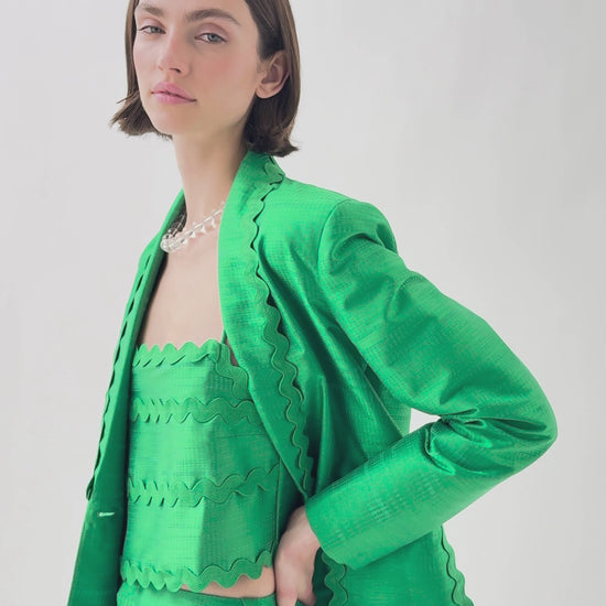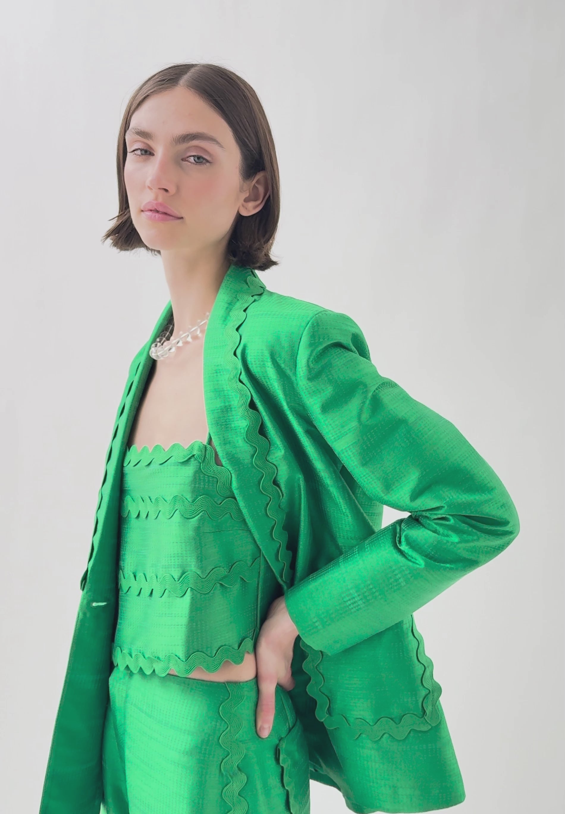 BLAZER WITH SHOULDER PADS AND SCALLOPED DETAIL
