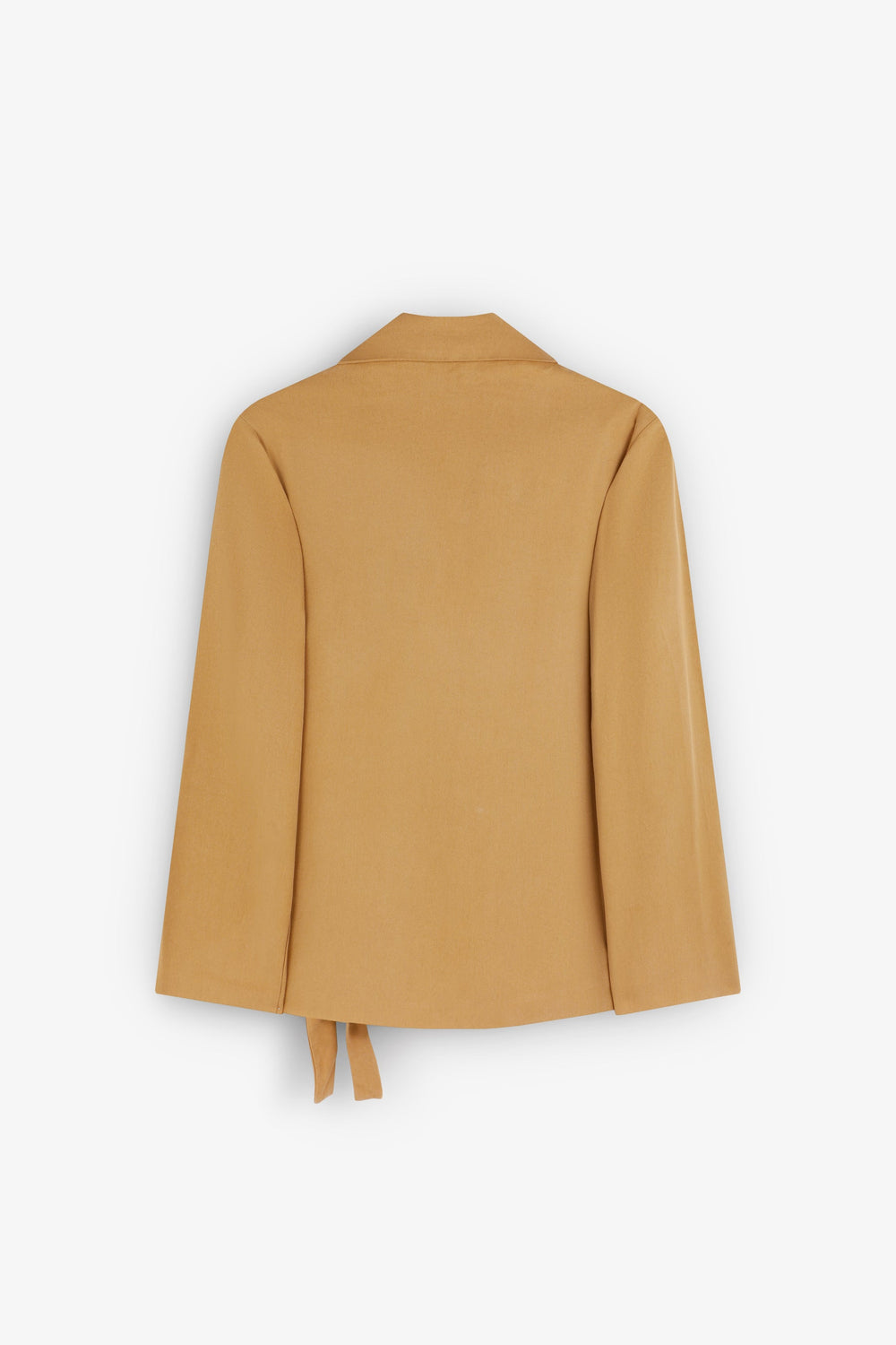 Blazer made of cotton. Crossover fastening. Knot detail in the shape of a bow. Lapel collar. Lined. Fitted. This garment is part of a set.