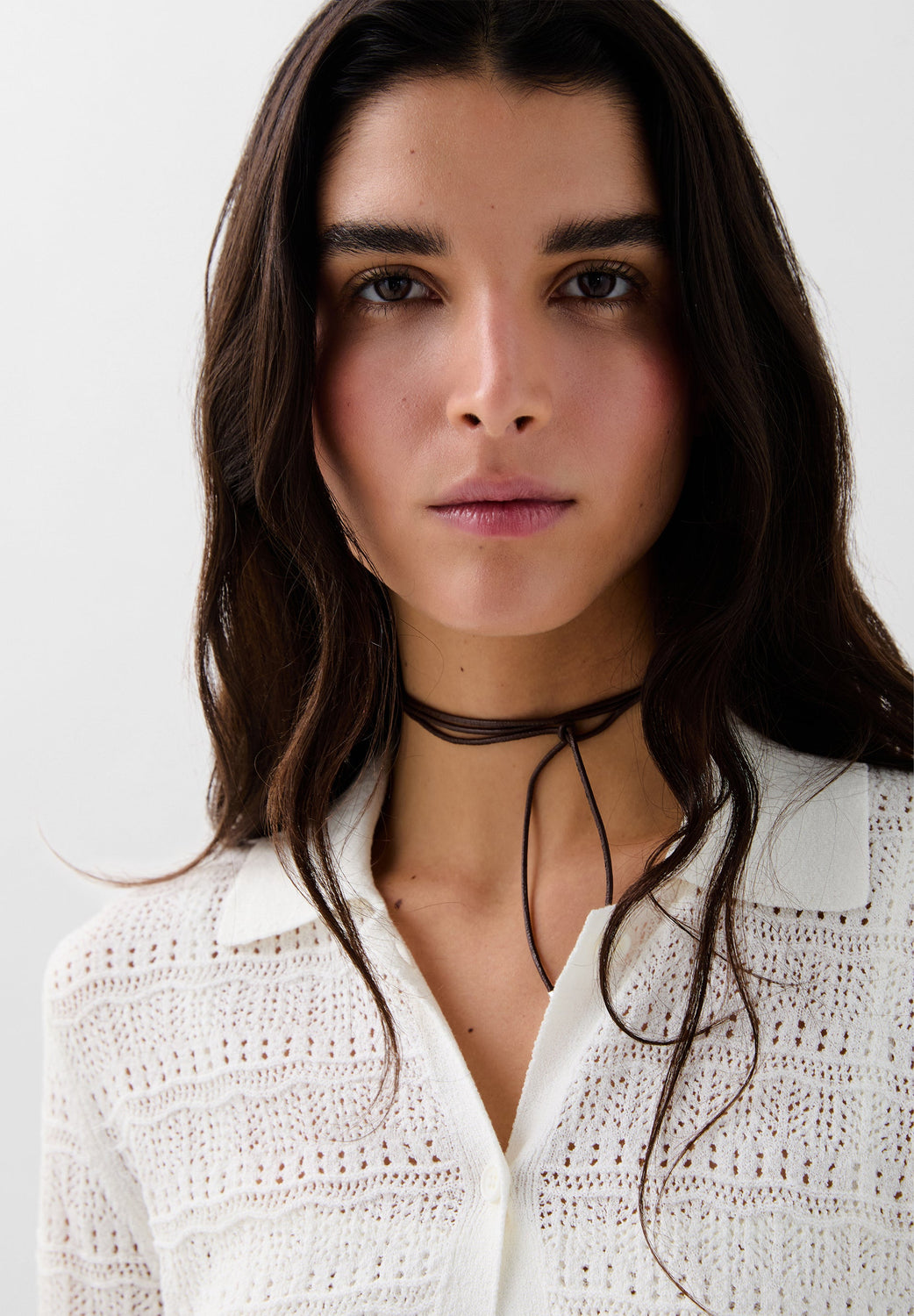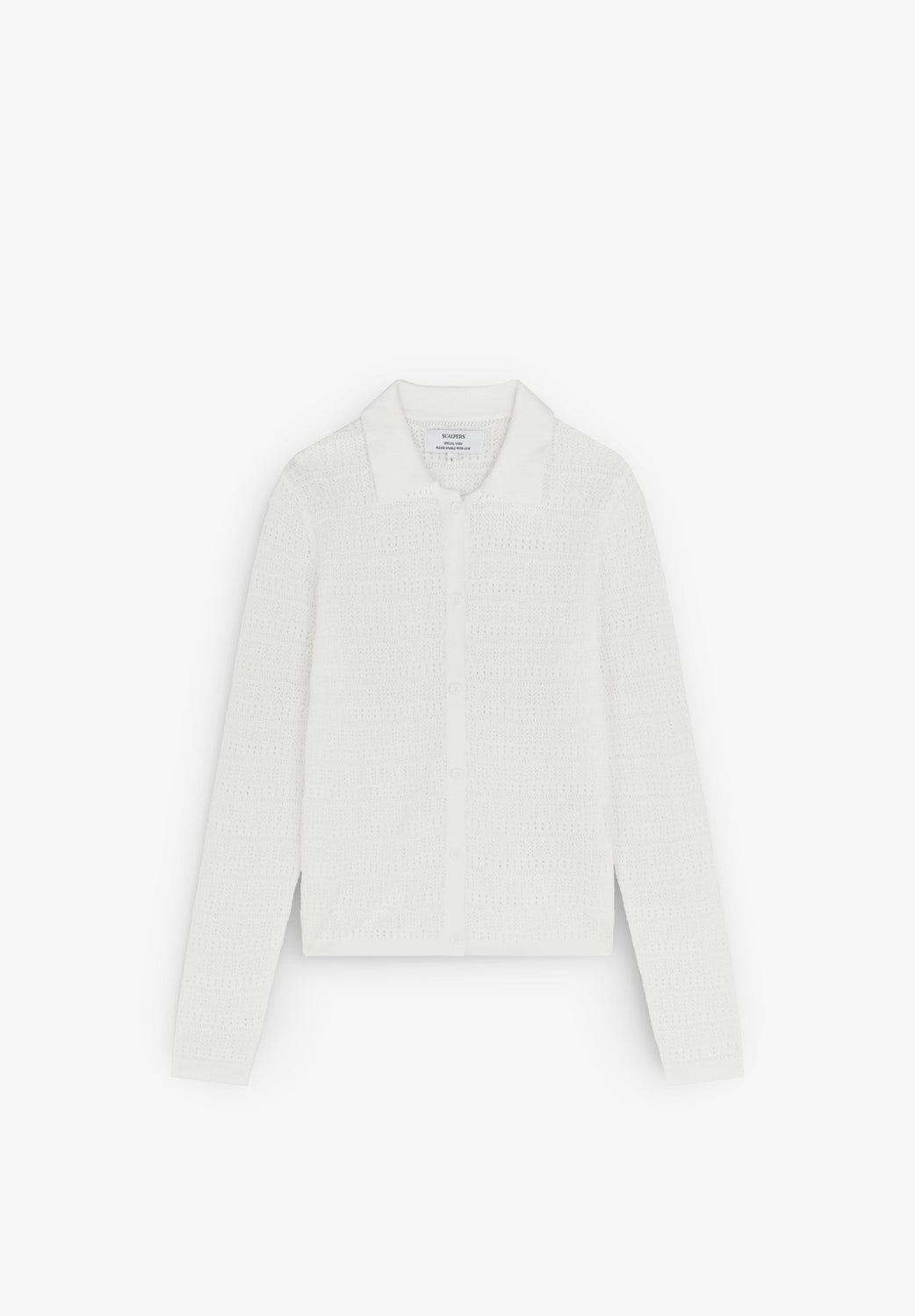 Linen cardigan. Front button fastening. Shirt collar. Long sleeves.