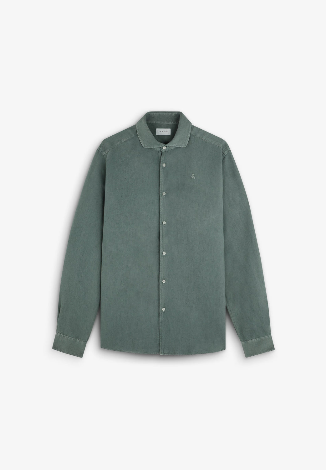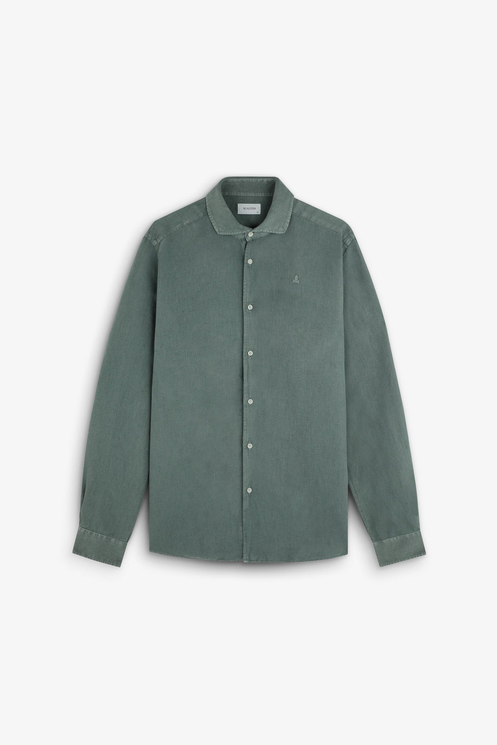 Linen shirt with a matching embroidered skull. Made of a linen and cotton blend. Regular fit. Cutaway collar. Button fastening. Long sleeves with buttoned cuffs.
