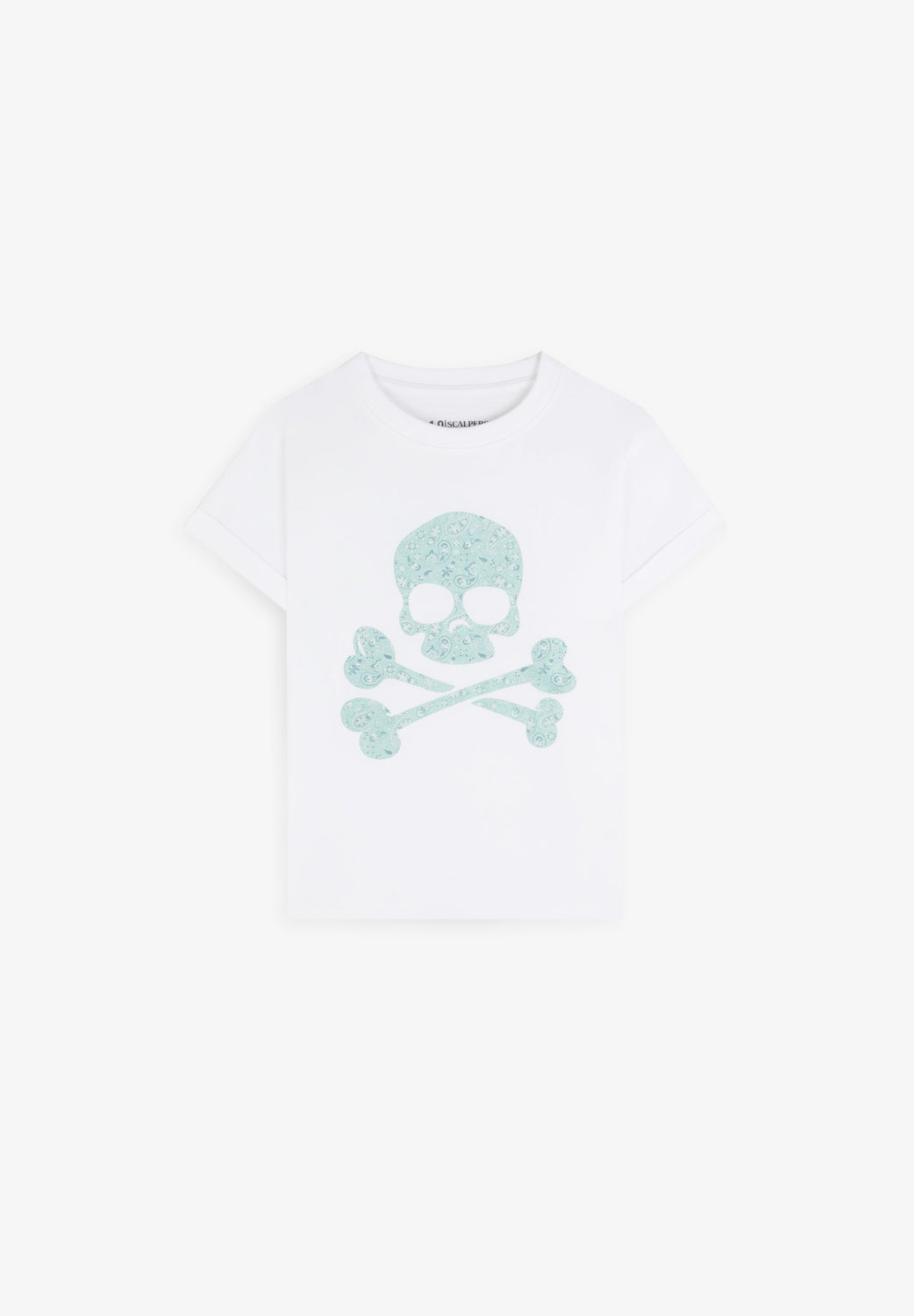 T-shirt featuring a skull with a front print, made of 100% BCI cotton. Regular fit, round neck and short sleeves.