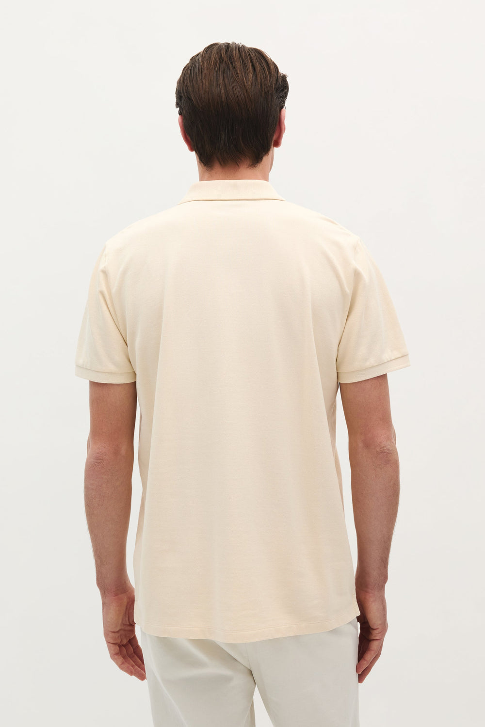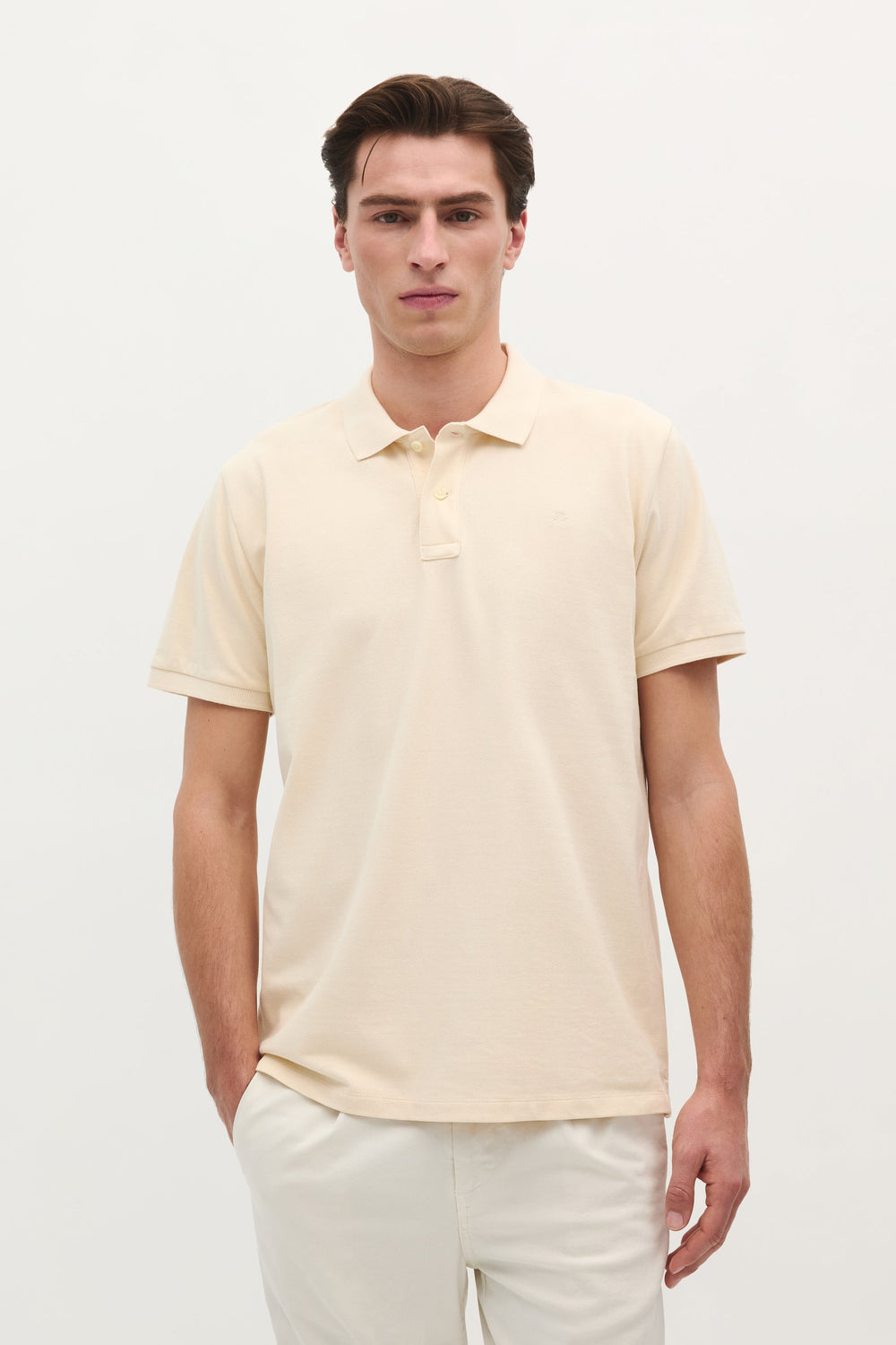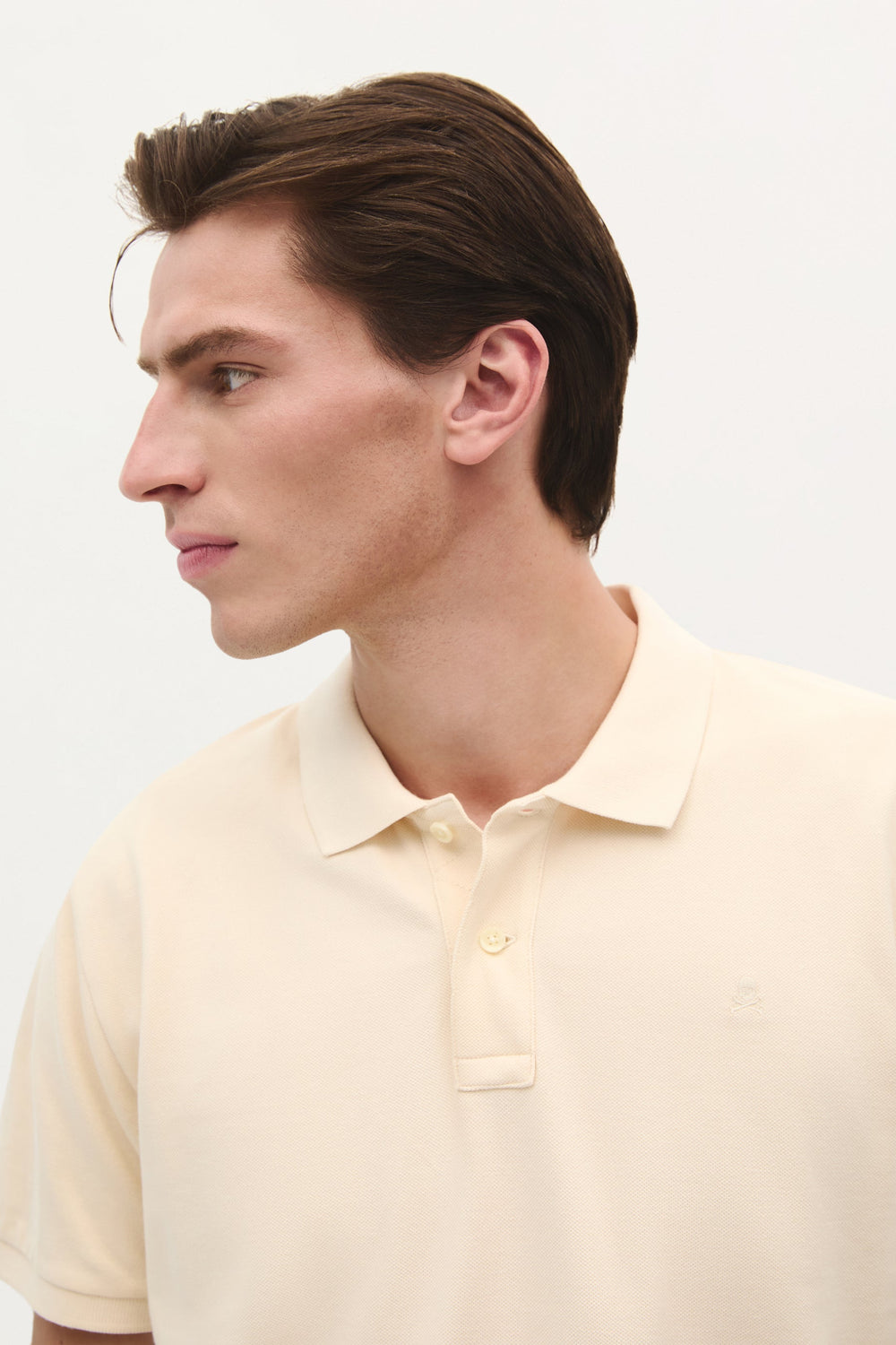 100% Organic Cotton piqué polo shirt. Regular fit.  Button placket Ribbed stitch finish. Logo detail on the chest