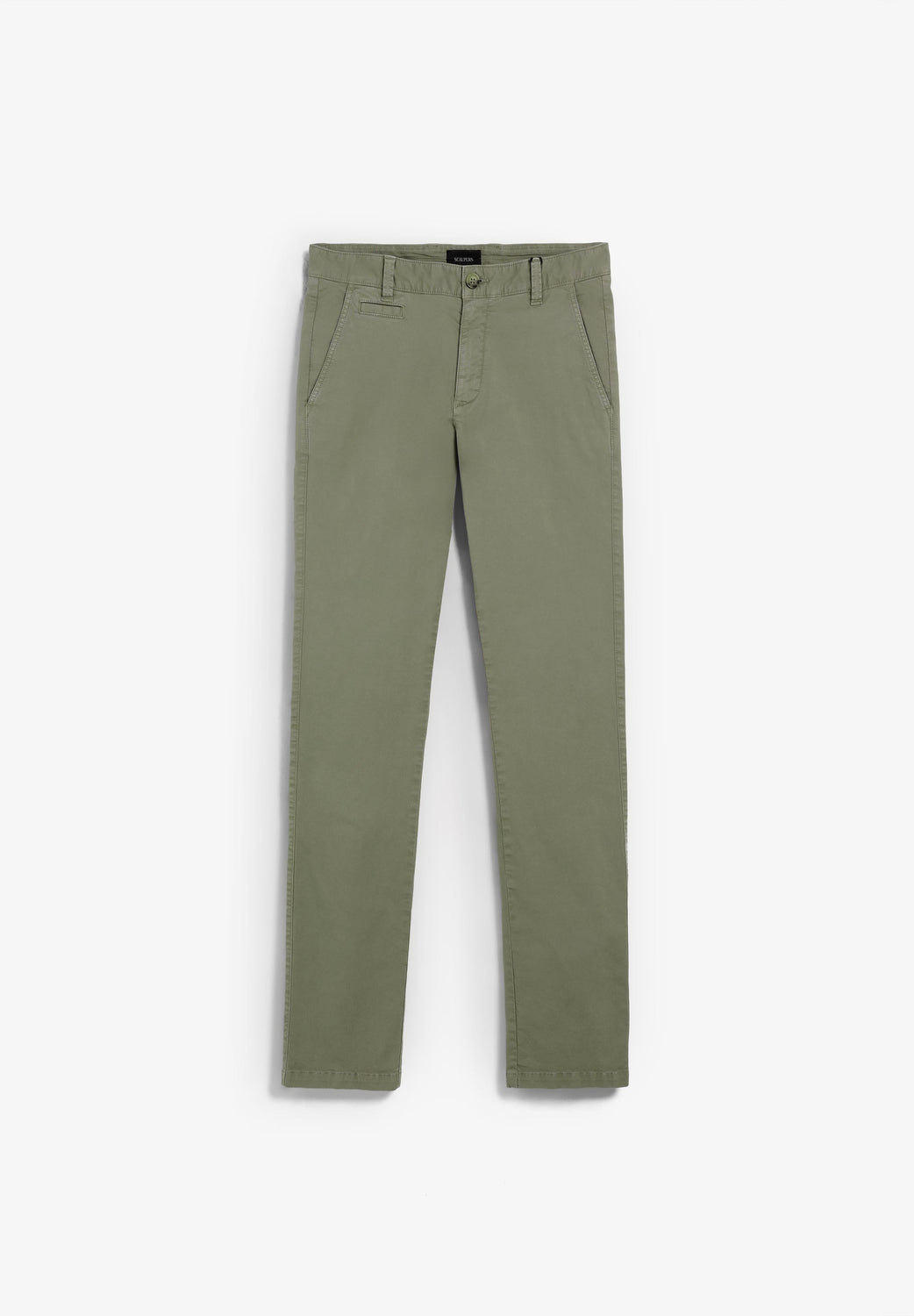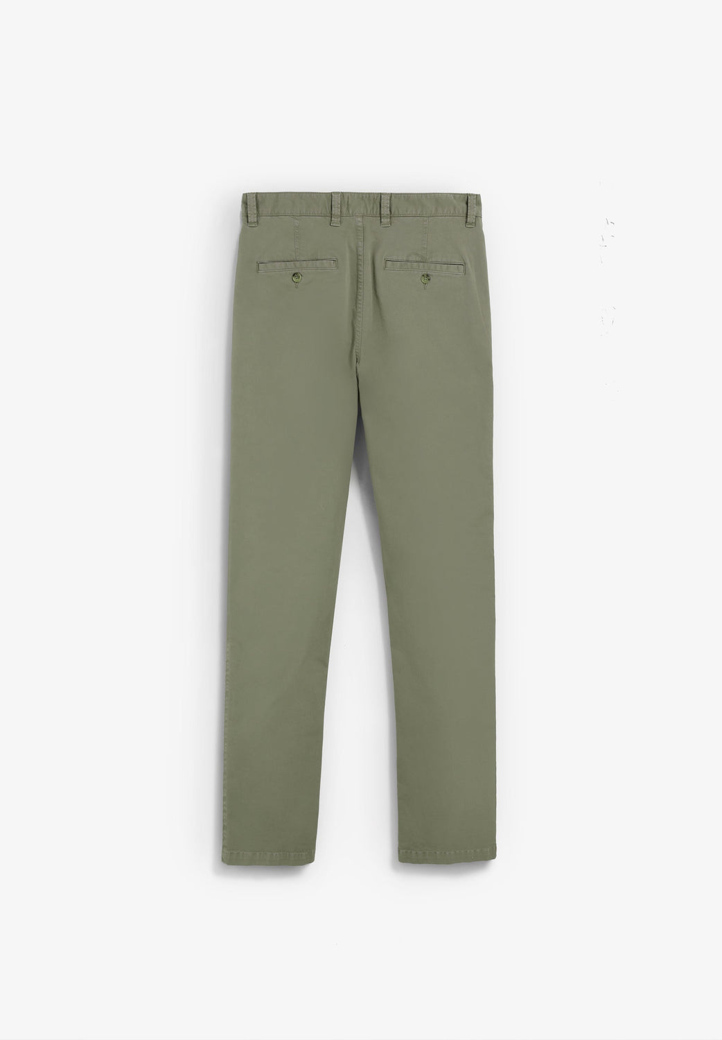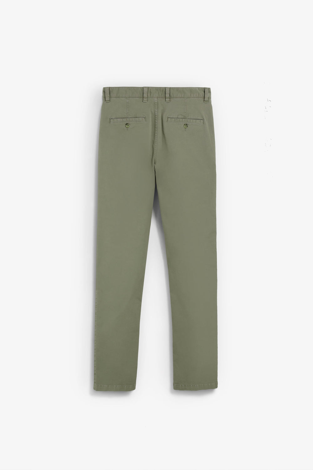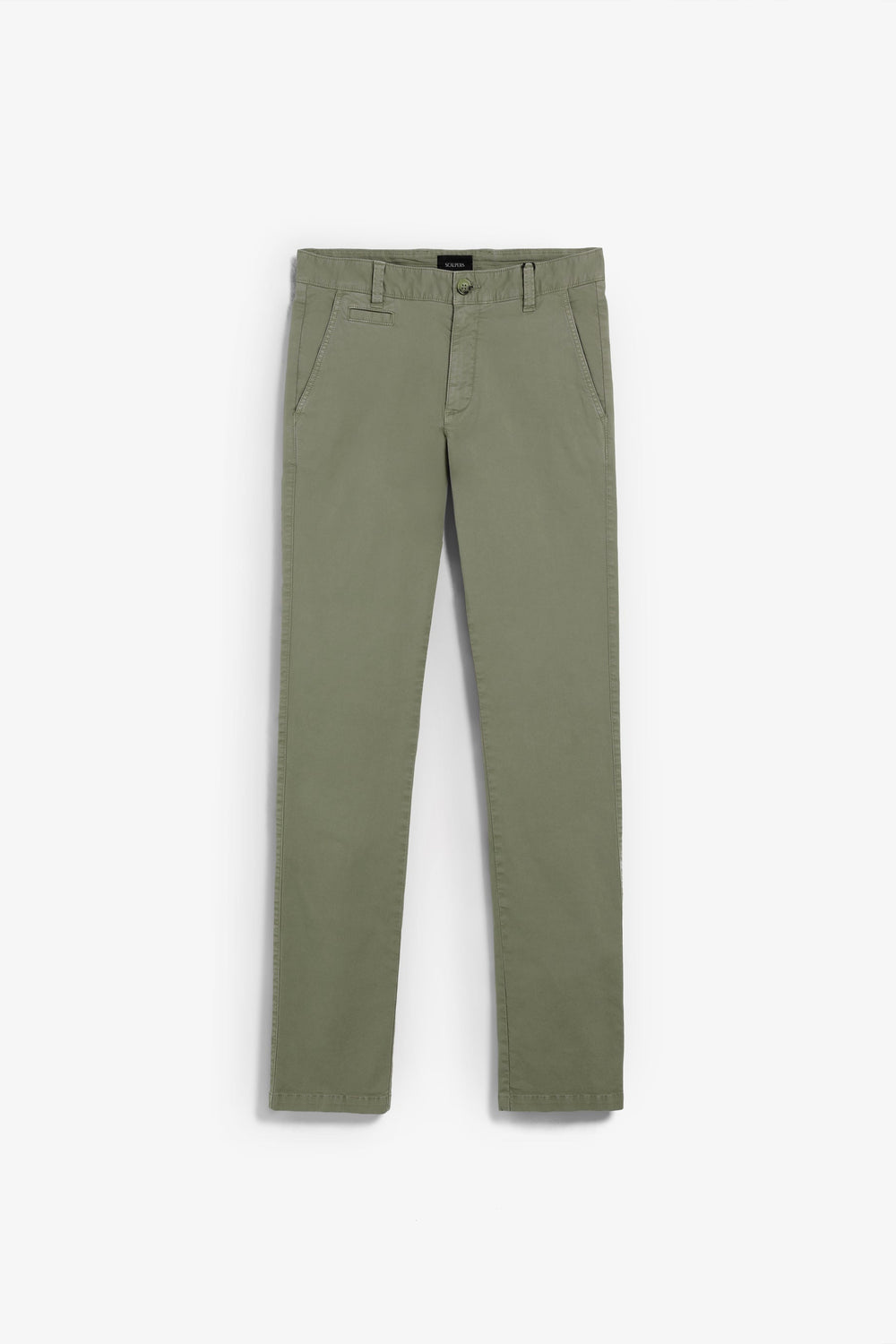 Casual chino trousers made of slightly stretch cotton blend fabric. Button and zip fastening. Side and back pockets. Belt loops at the waist. Inner logo label detail on the belt.