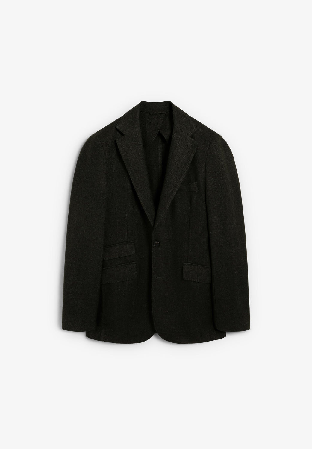 Blazer made of wool. Herringbone design. Three flap pockets. Two button fastening. Chest pocket with piping. Long sleeves.