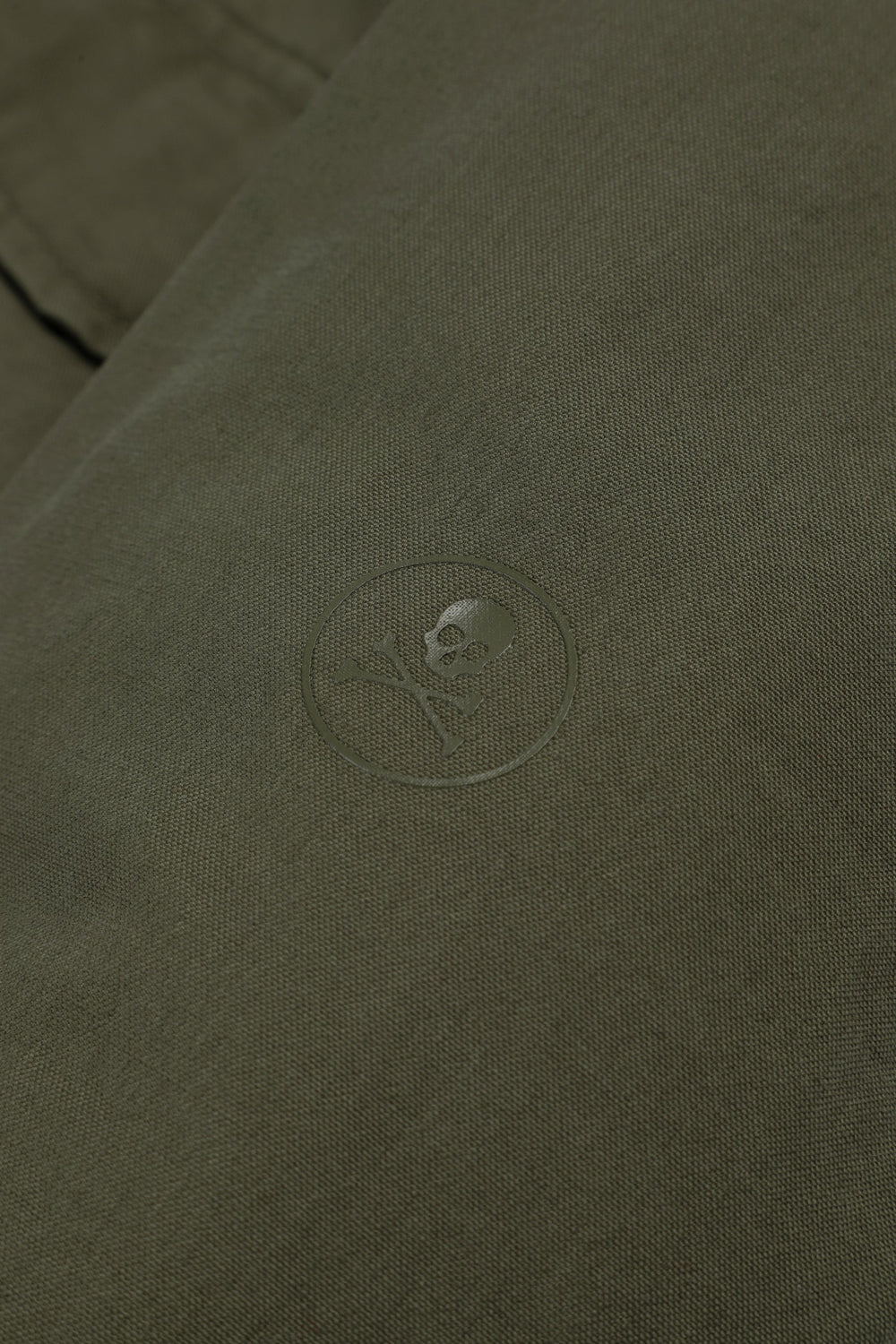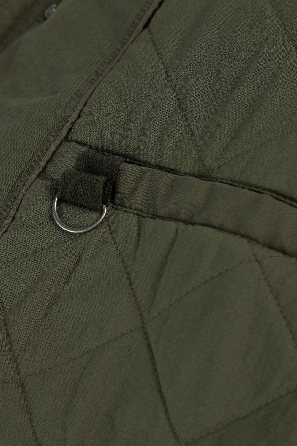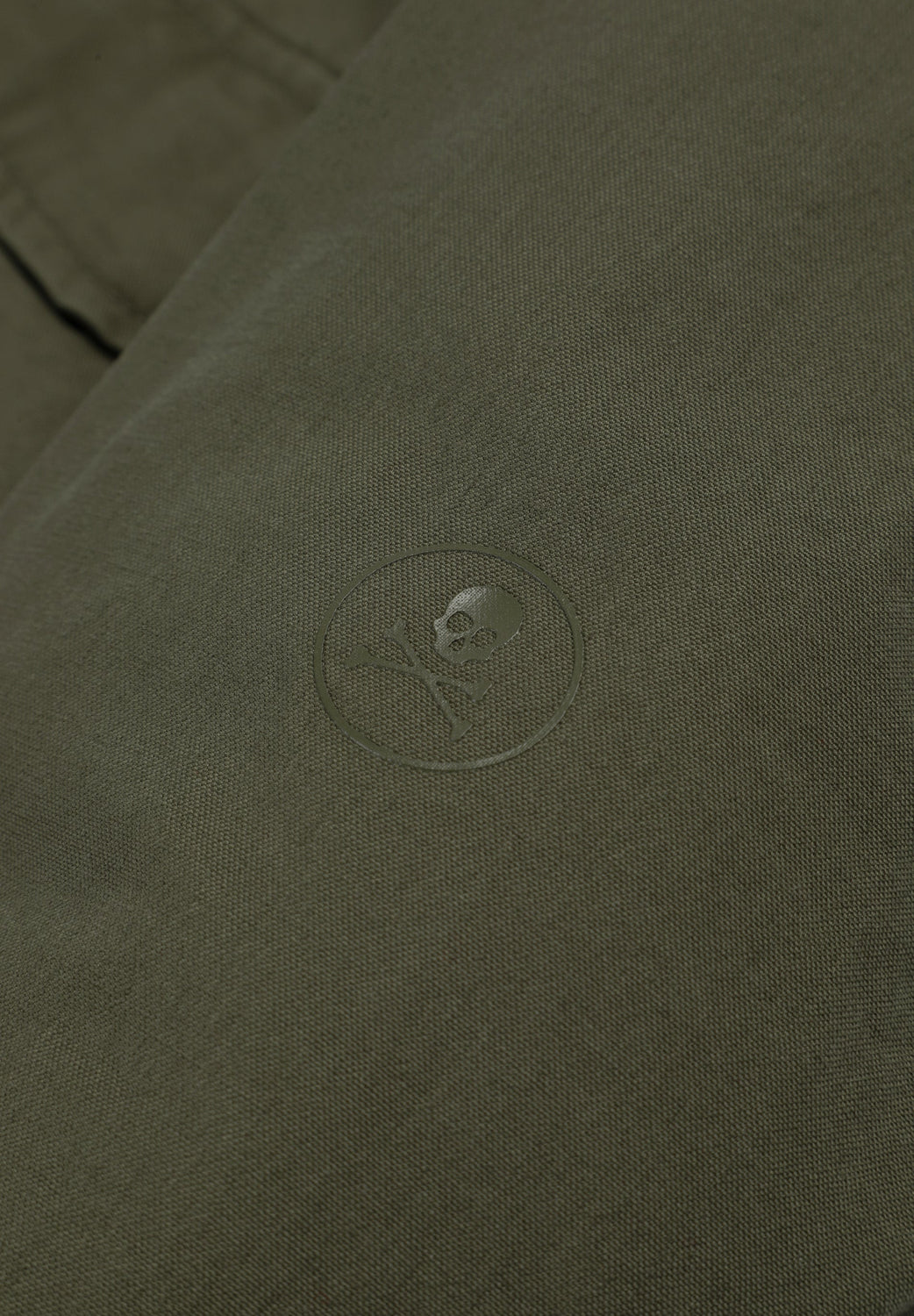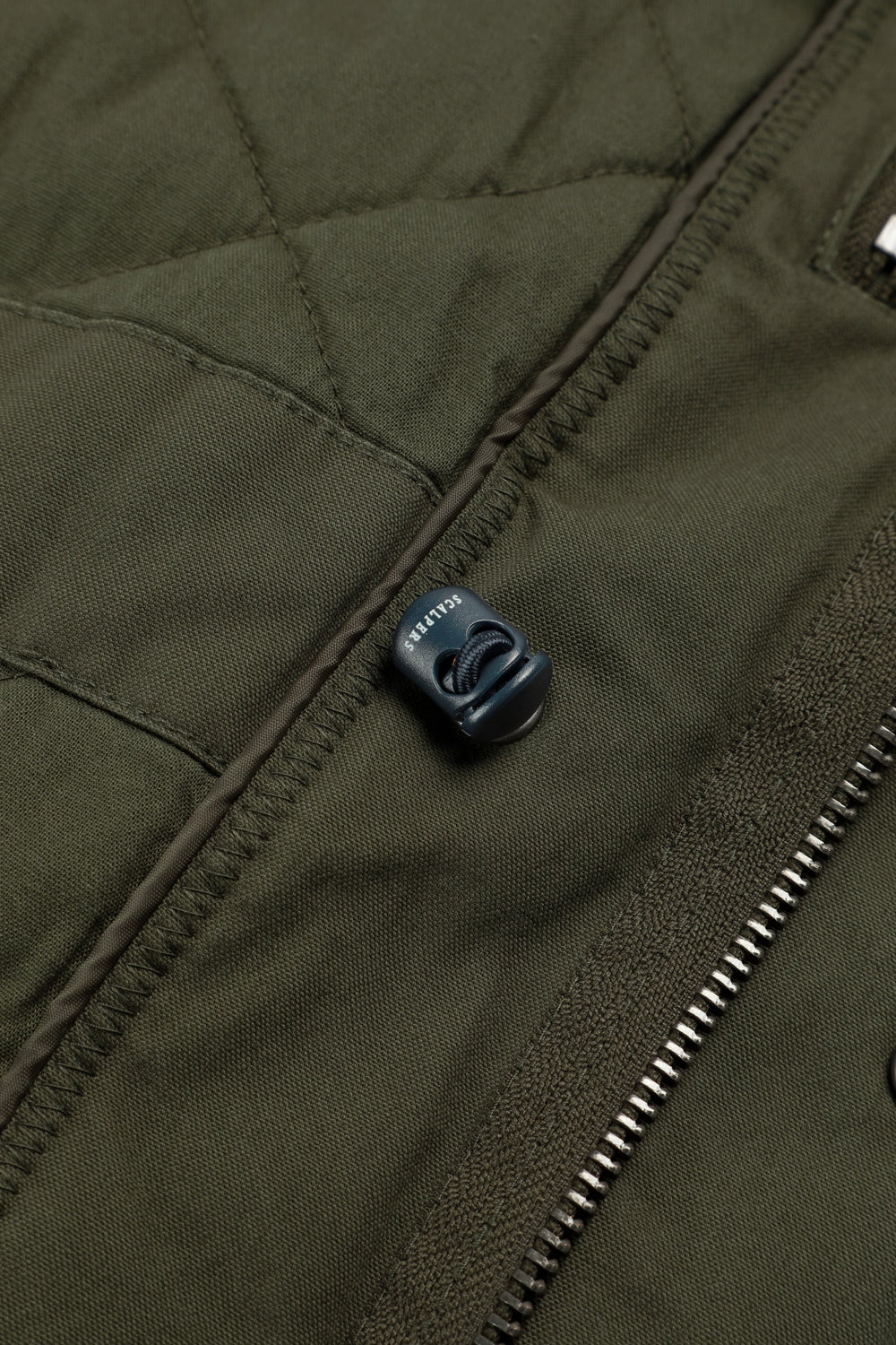 Jacket made of organic cotton. Military style. Four front pockets. Fastening at the neck. Adjustable inner drawstring. Front zip fastening and contrast hood concealed in the collar. Lined with diamond print. Adjustable cuffs. High-density logo detail on the sleeve.