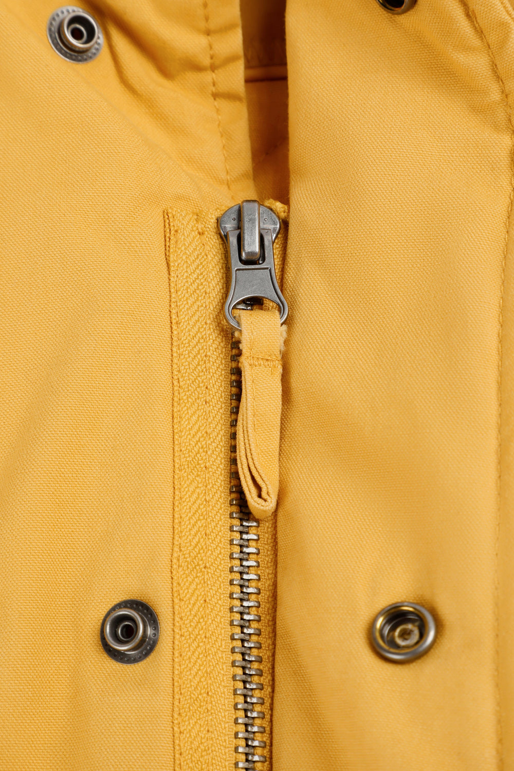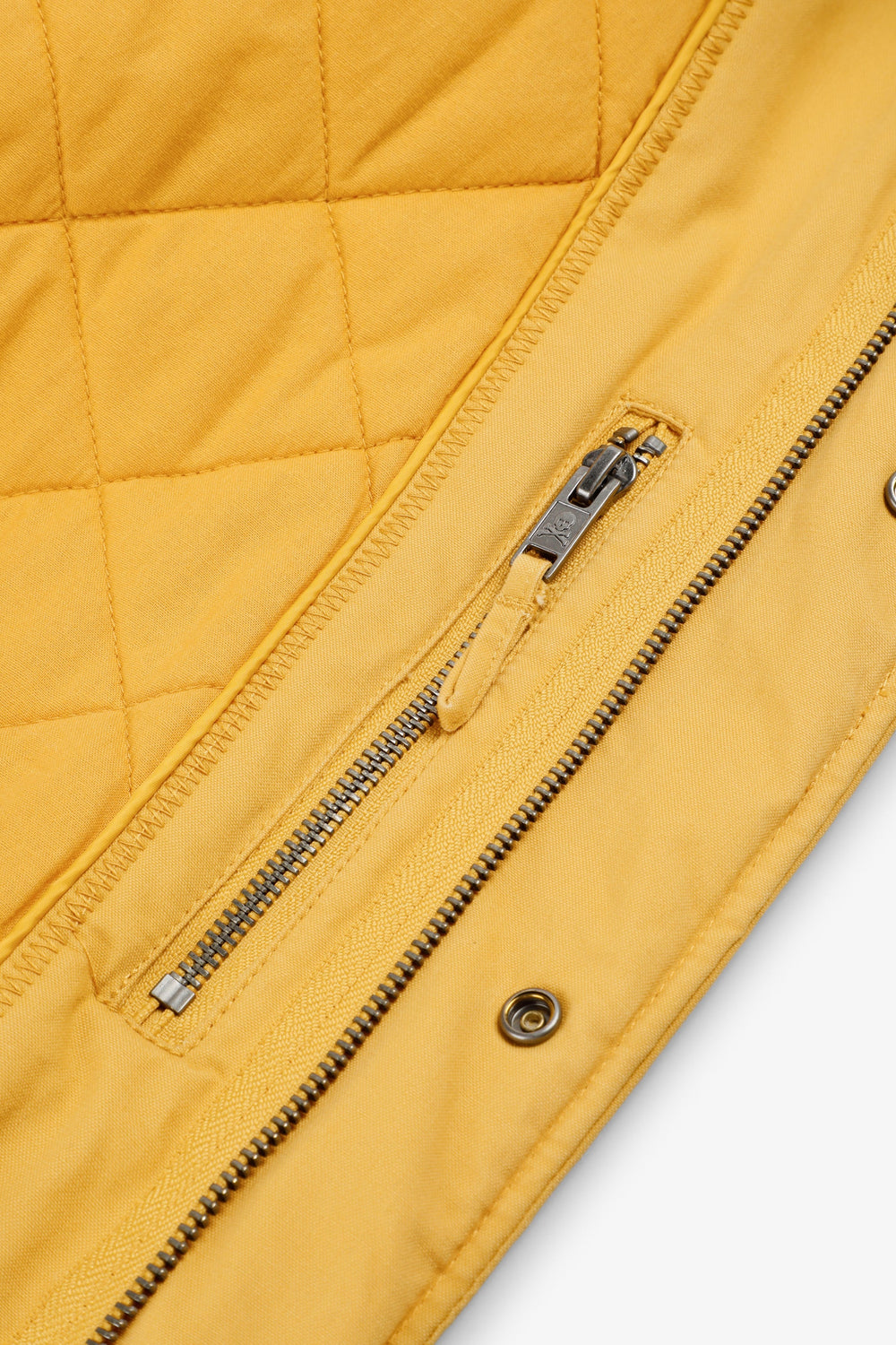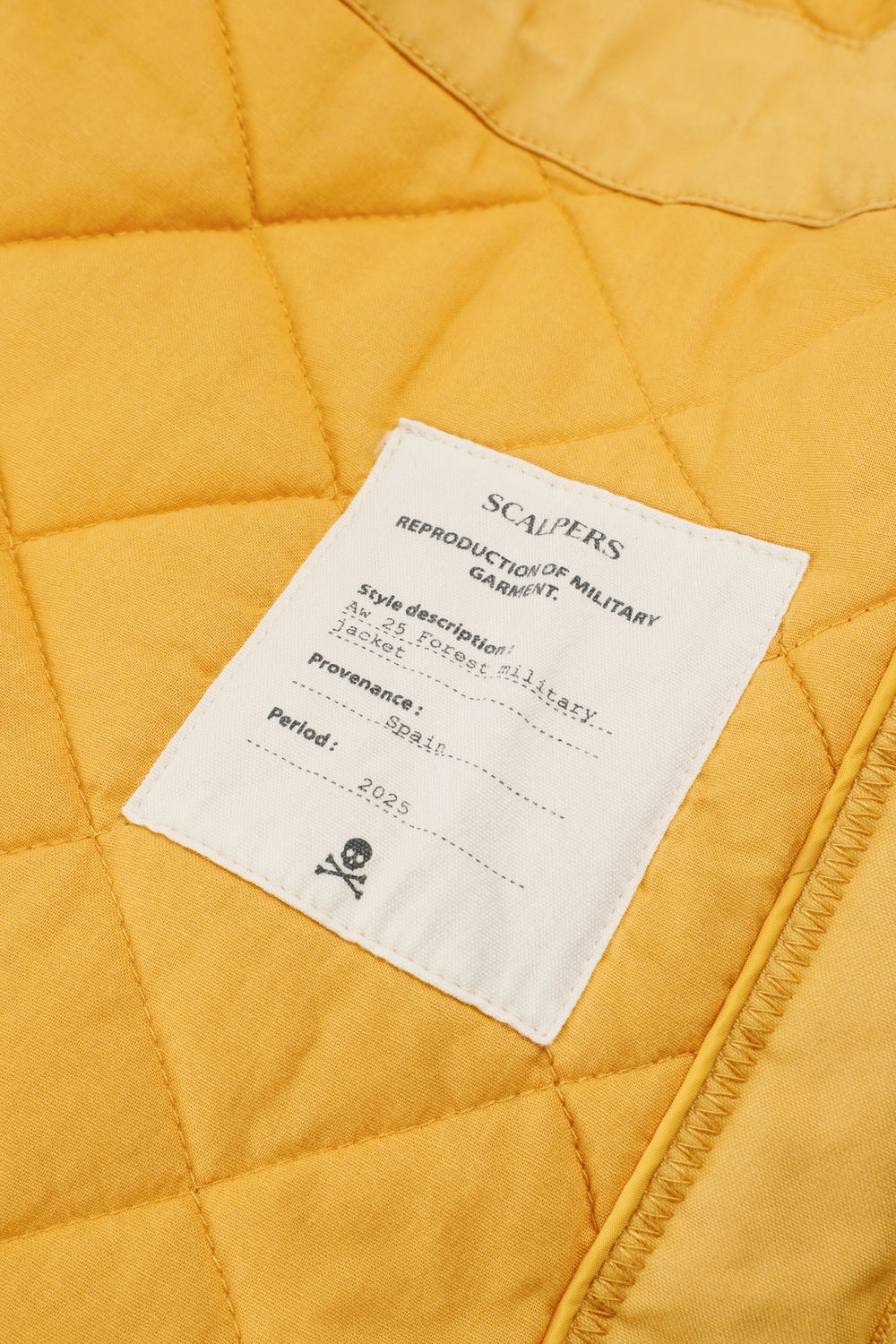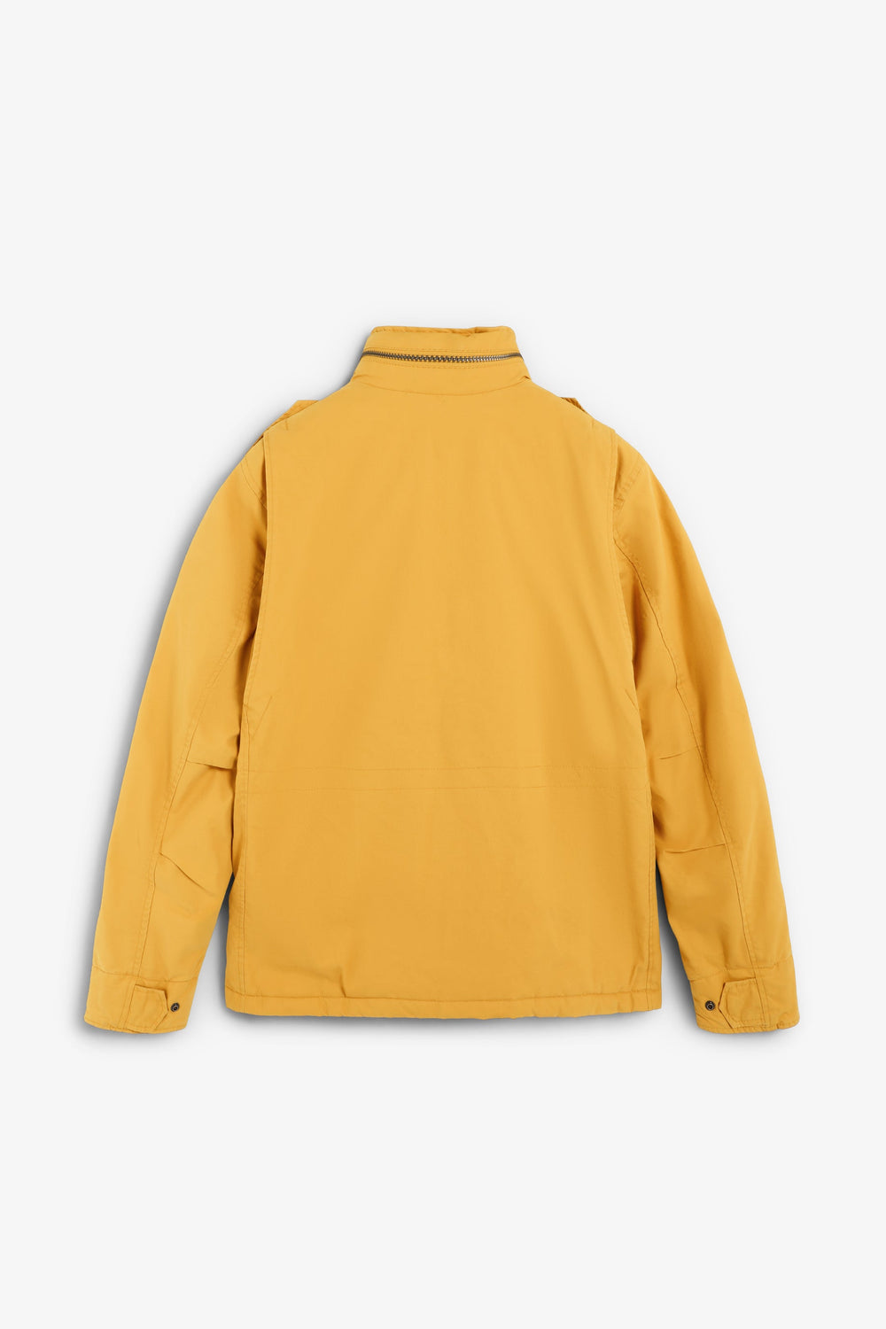 Jacket made of organic cotton. Military style. Four front pockets. Fastening at the neck. Adjustable inner drawstring. Front zip fastening and contrast hood concealed in the collar. Lined with diamond print. Adjustable cuffs. High-density logo detail on the sleeve.