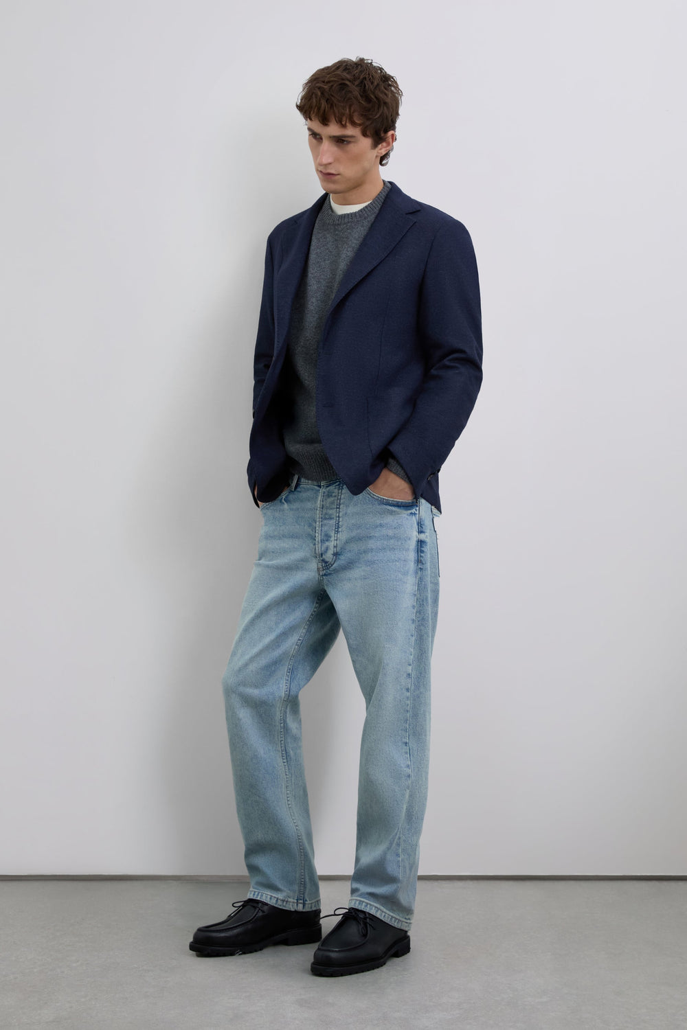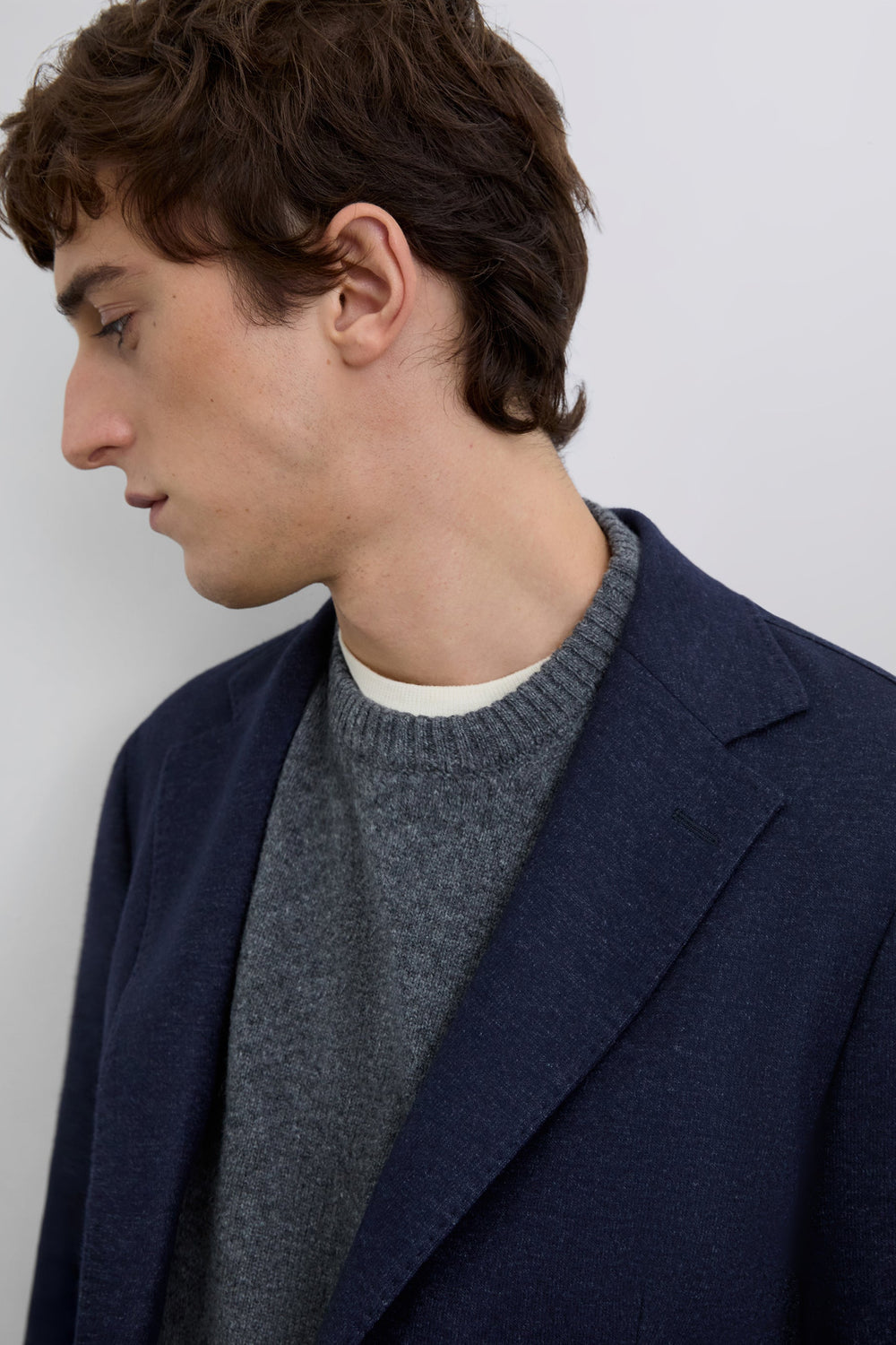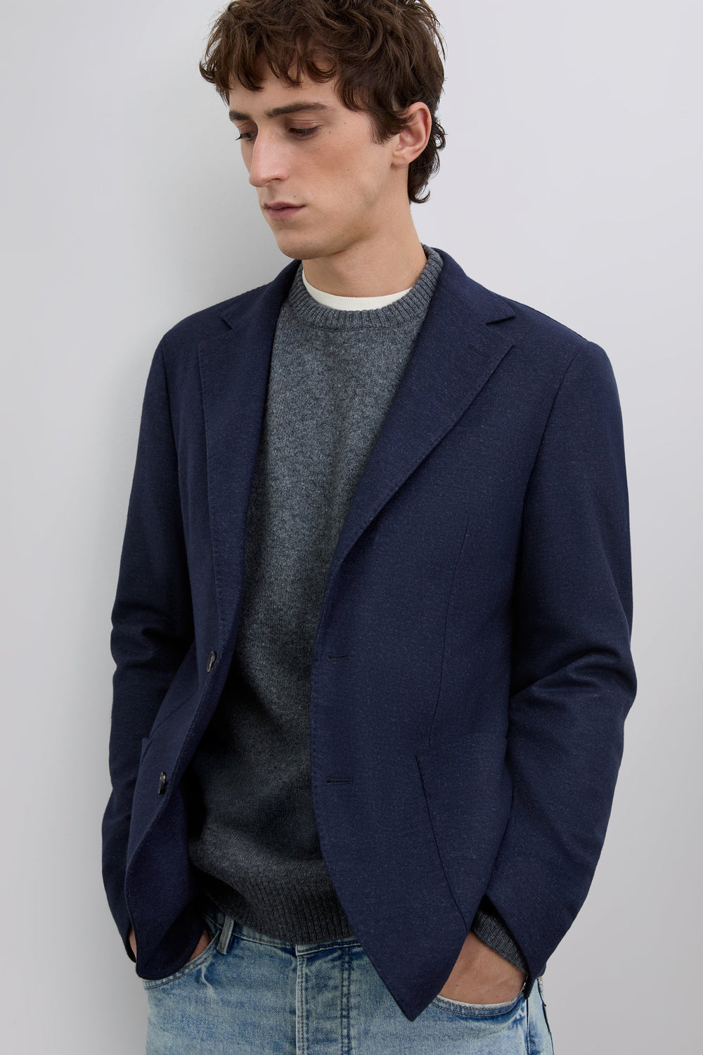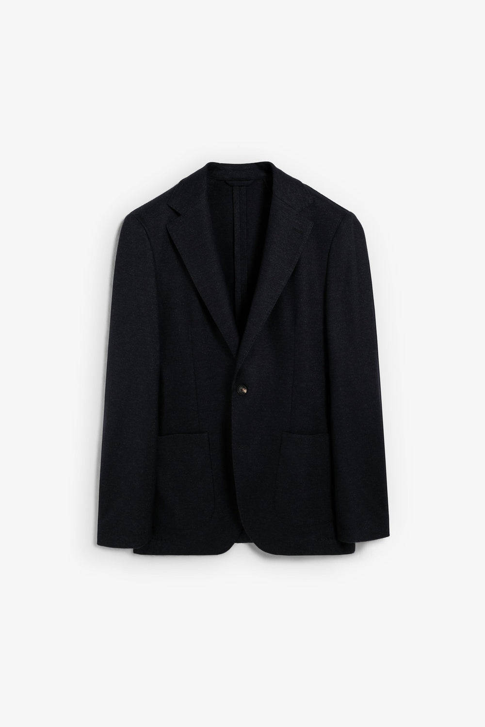Technical blazer made of wool. Regular lapels. Three patch pockets. Two button fastening at the front. Long sleeves.