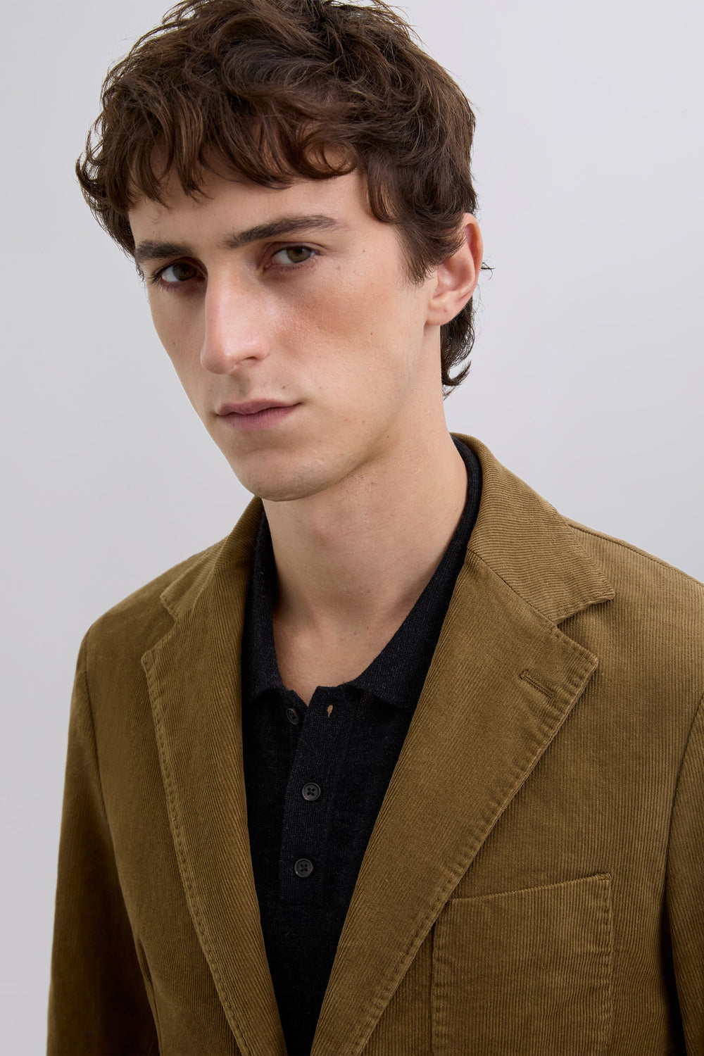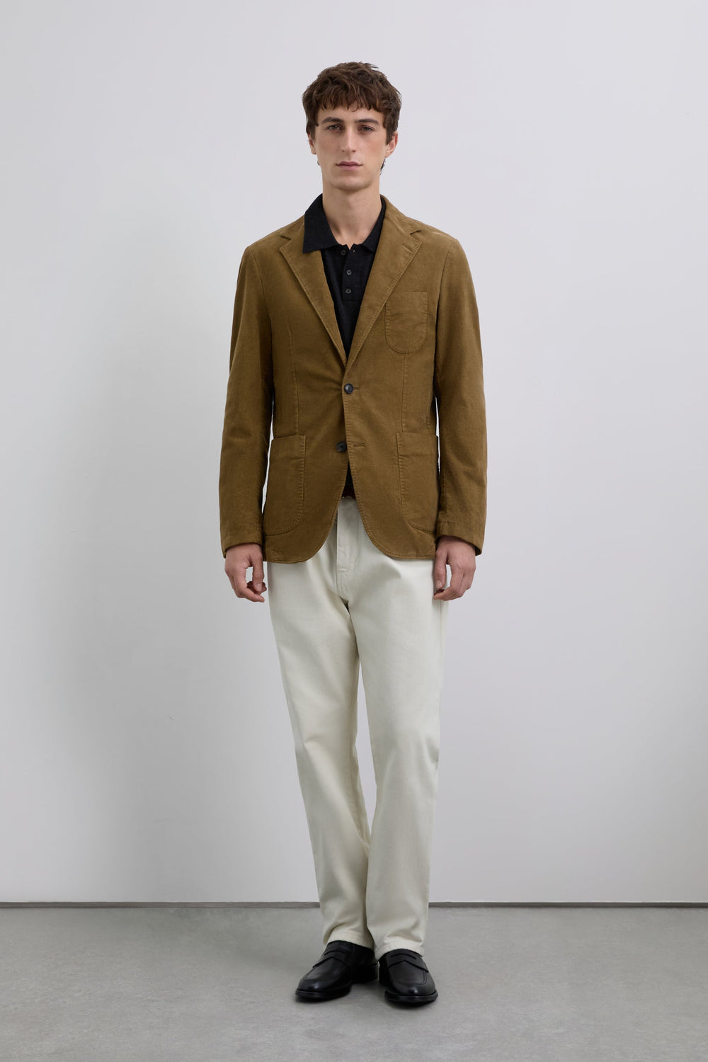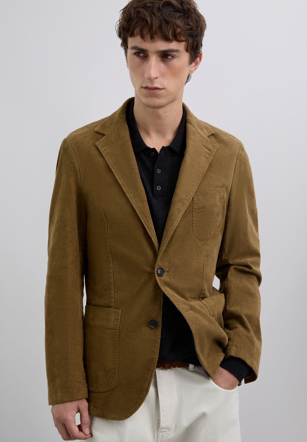 Corduroy blazer made of cotton. Regular Fit. Notched lapel collar. Front button fastening. Long sleeves with buttoned cuffs. Patch pockets.