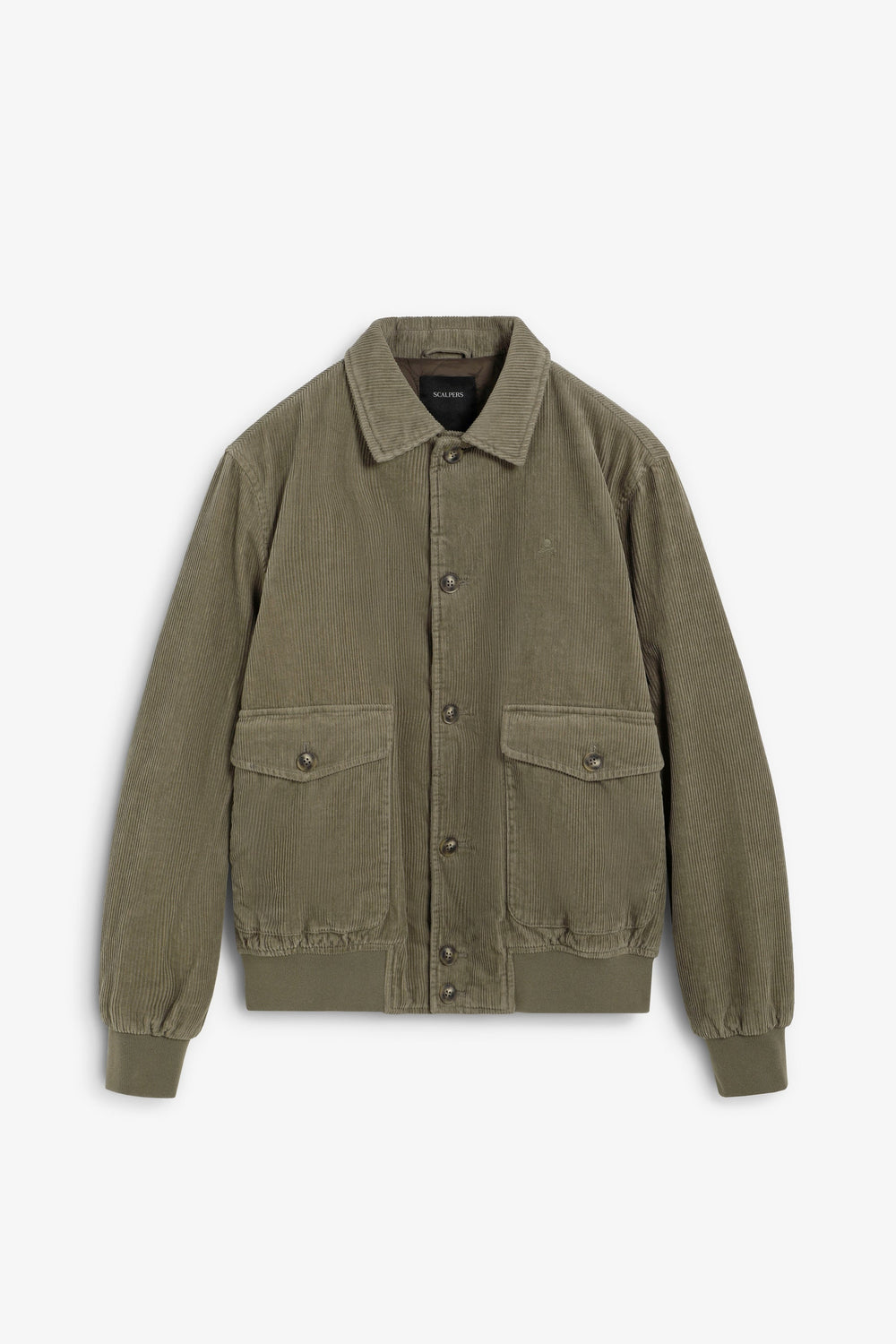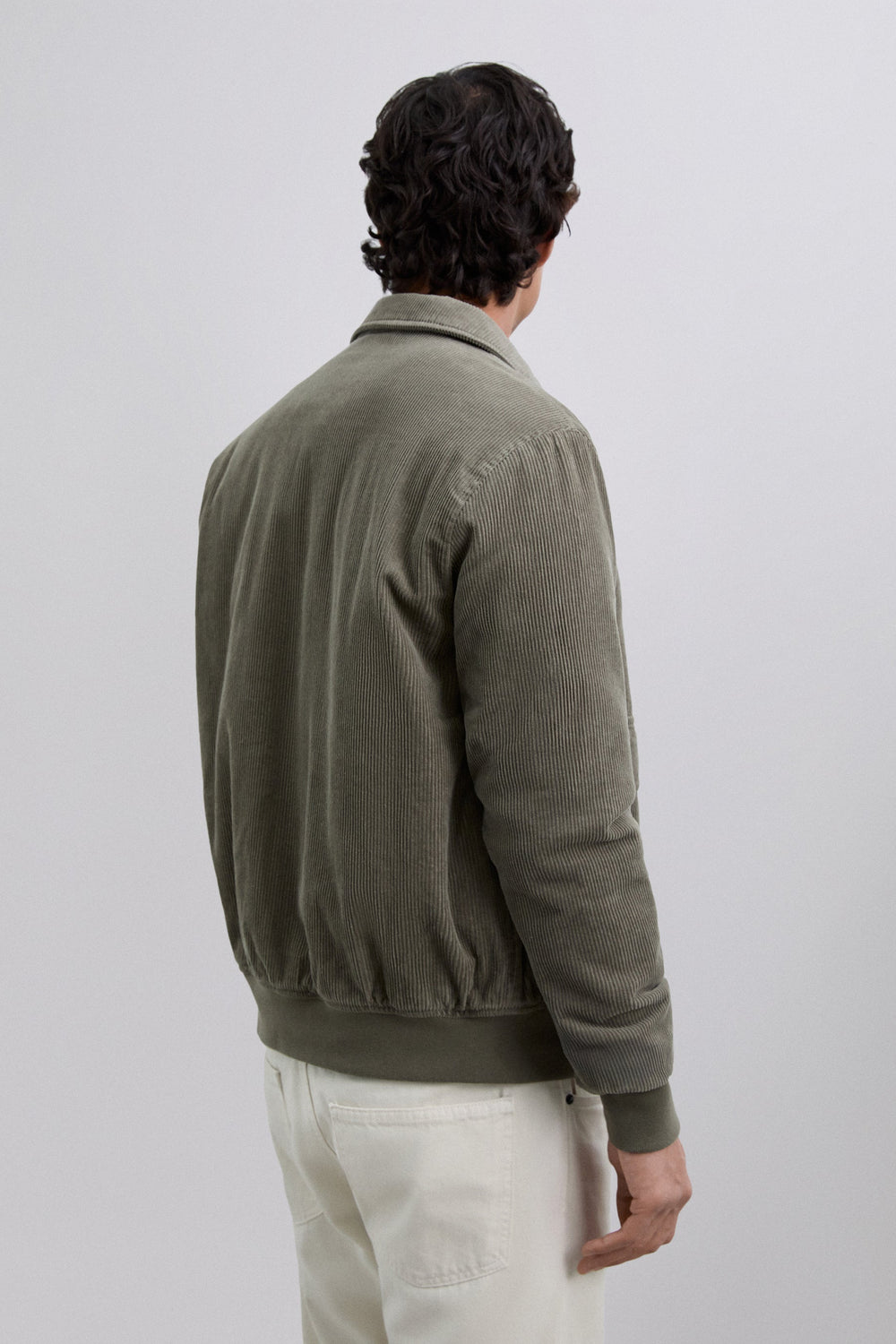 Corduroy bomber jacket made of 100% BCI cotton. Front button fastening. Double front pockets with button fastening. Ribbed cuffs and waistband. Matching embroidered logo detail on the chest.