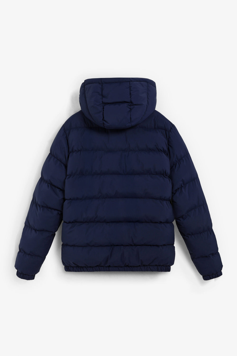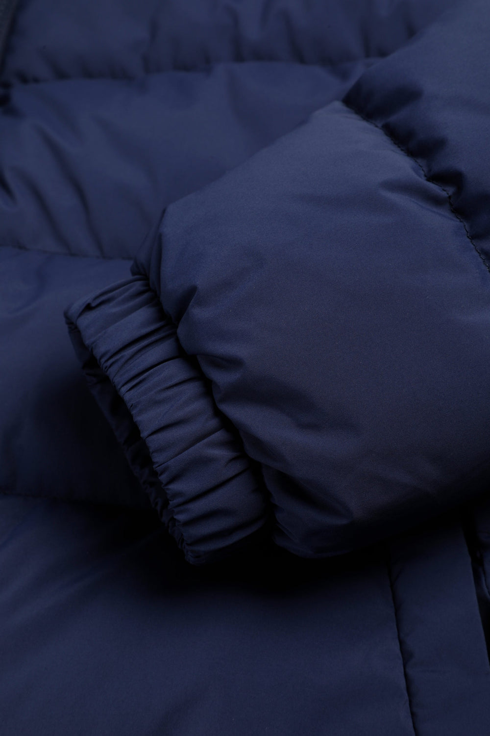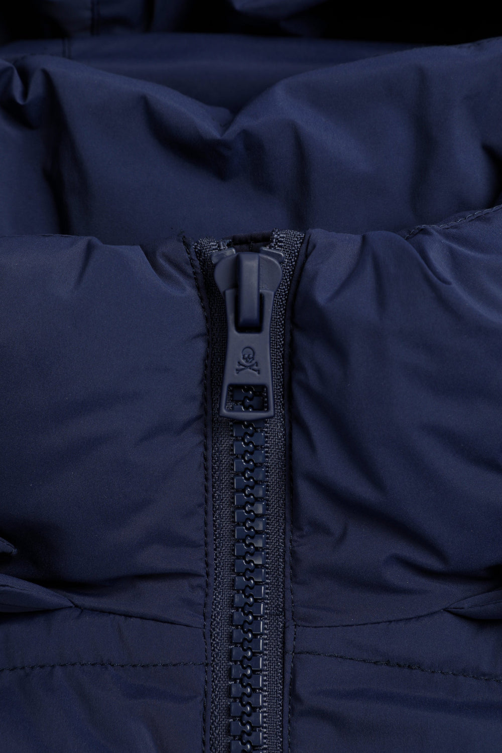 Padded jacket with skull detail on the arm. Two front pockets. Front zip fastening with customised pull. Customised aglets on the hood. Adjustable cuffs and hem. Thermolite filling. Detachable hood. Lining with diamond quilted detail.