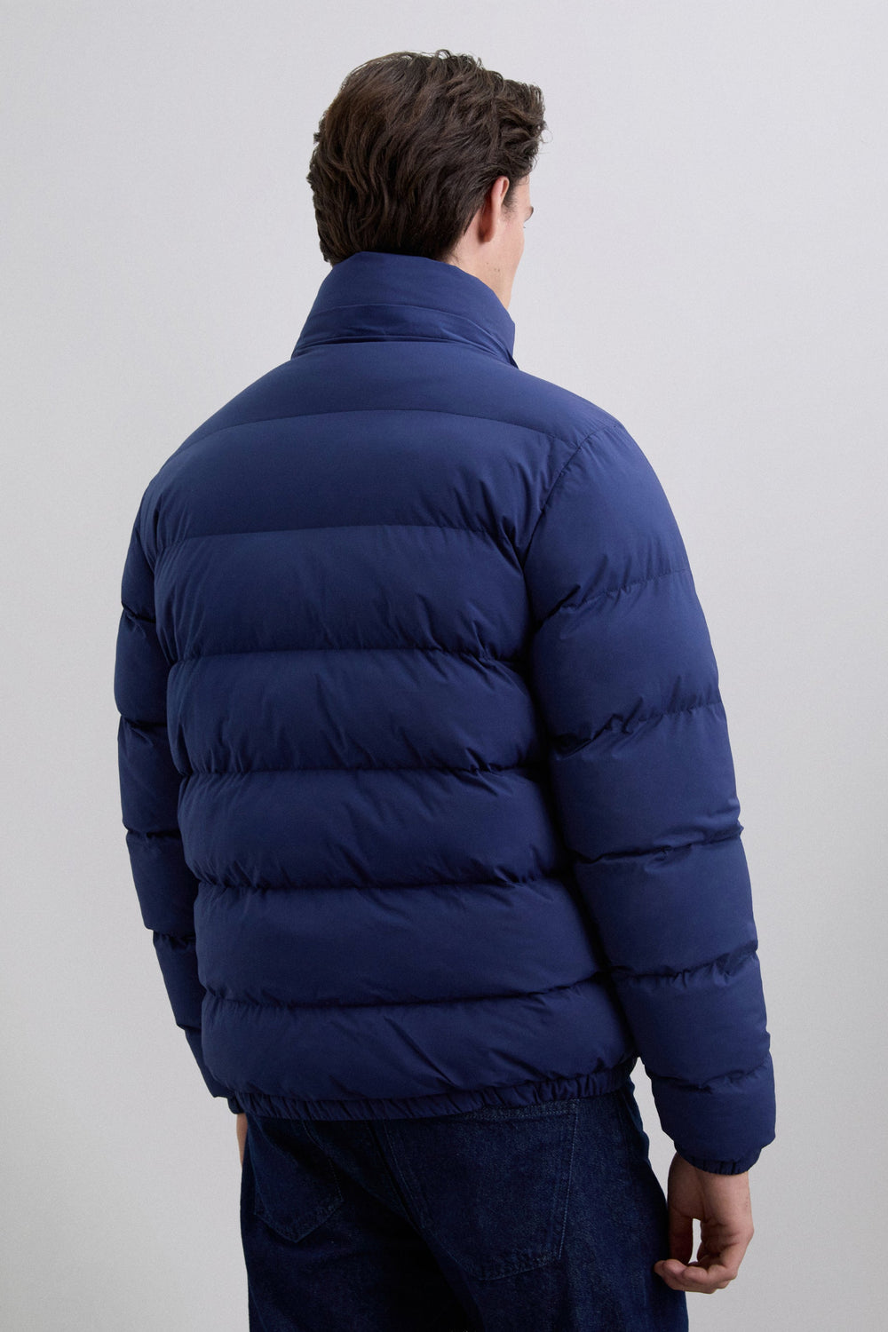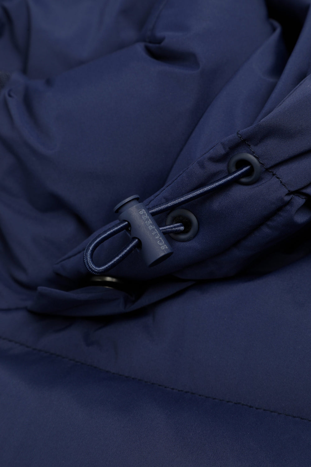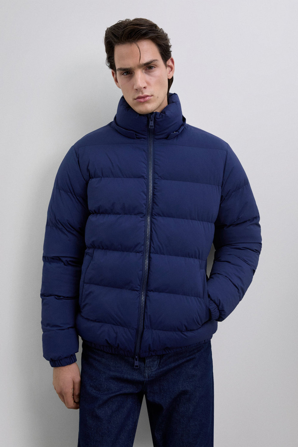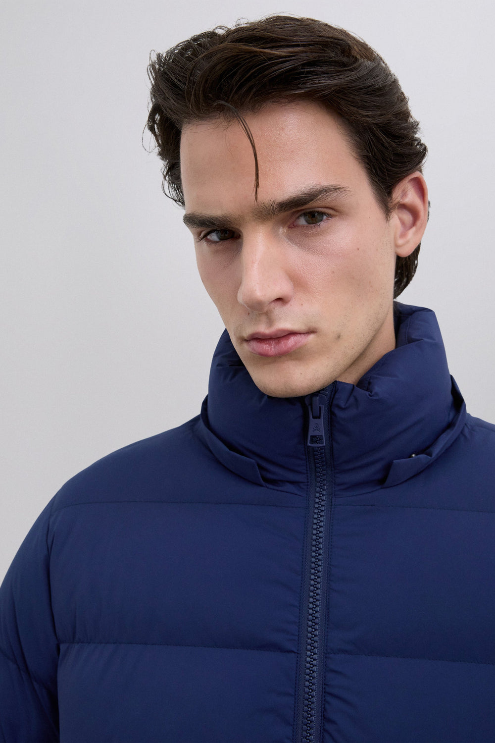 Padded jacket with skull detail on the arm. Two front pockets. Front zip fastening with customised pull. Customised aglets on the hood. Adjustable cuffs and hem. Thermolite filling. Detachable hood. Lining with diamond quilted detail.