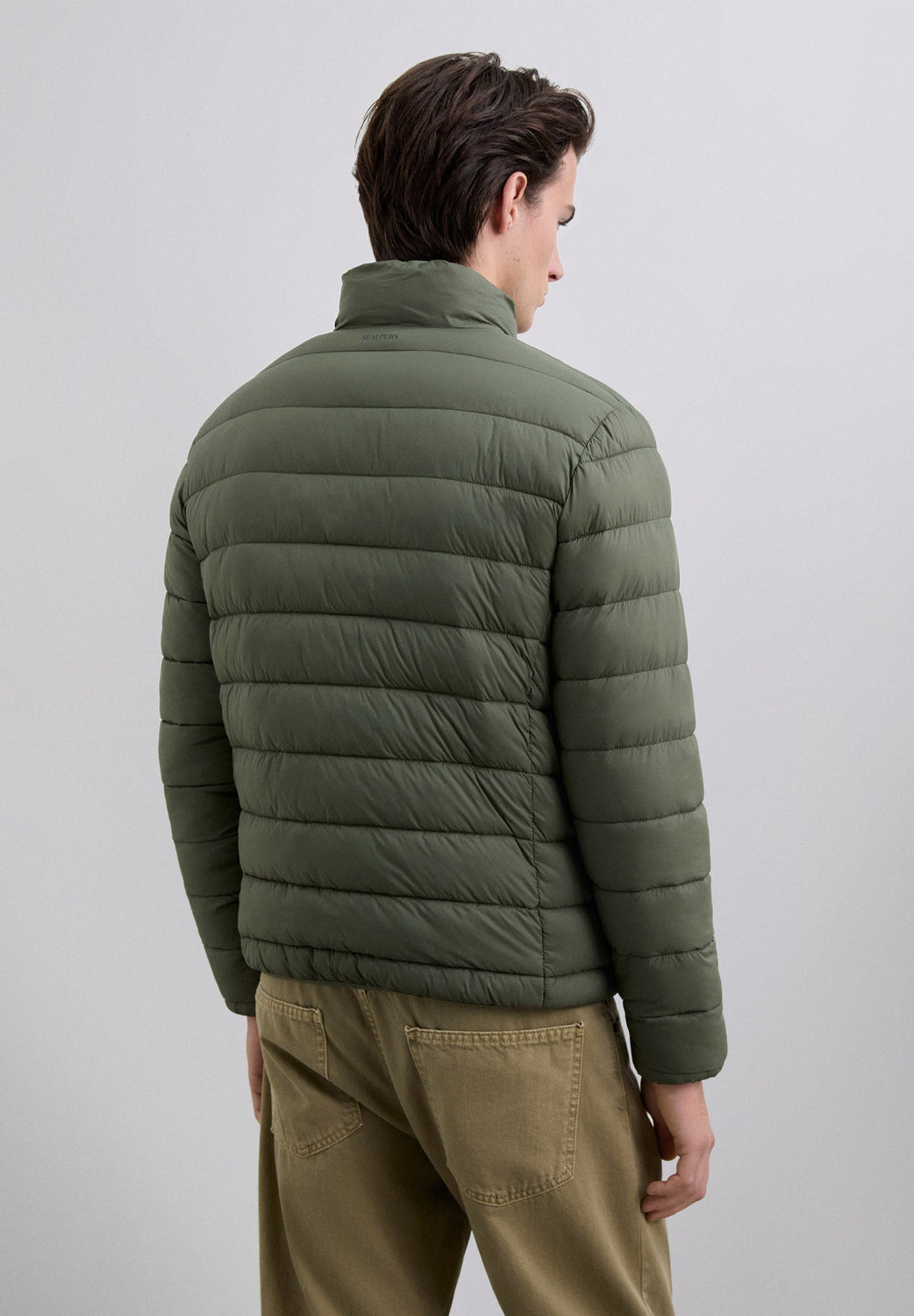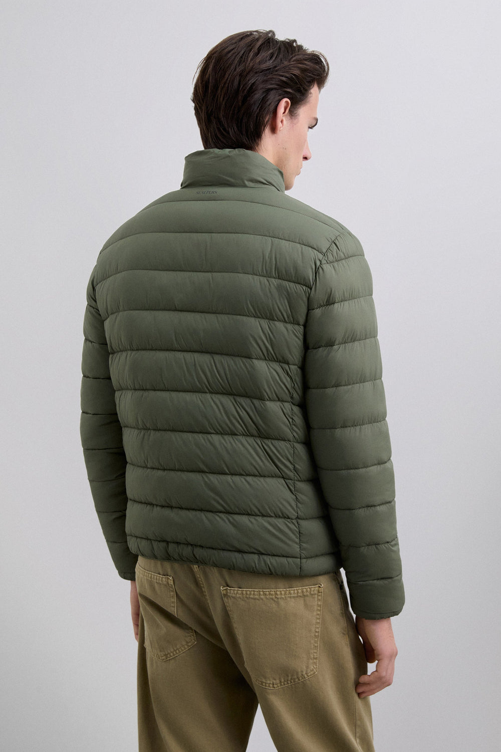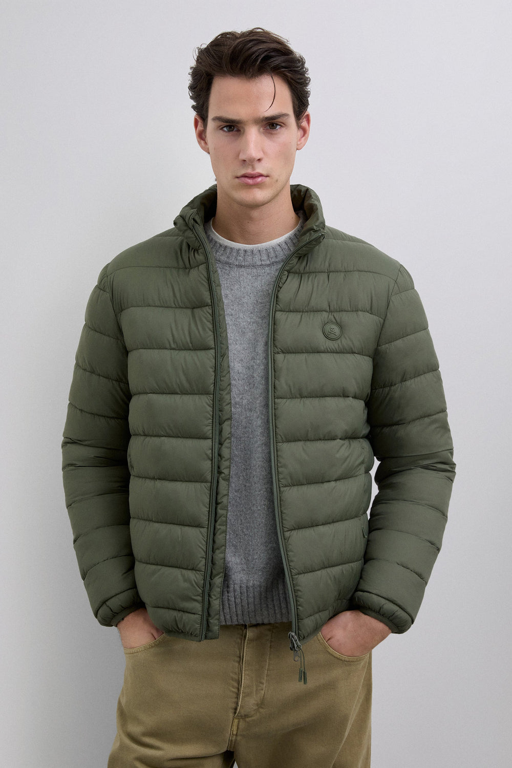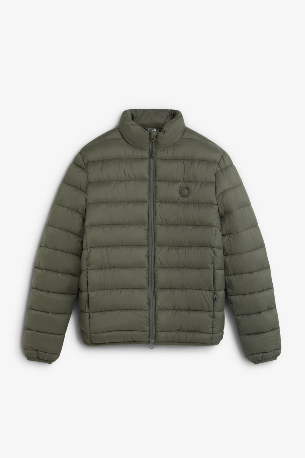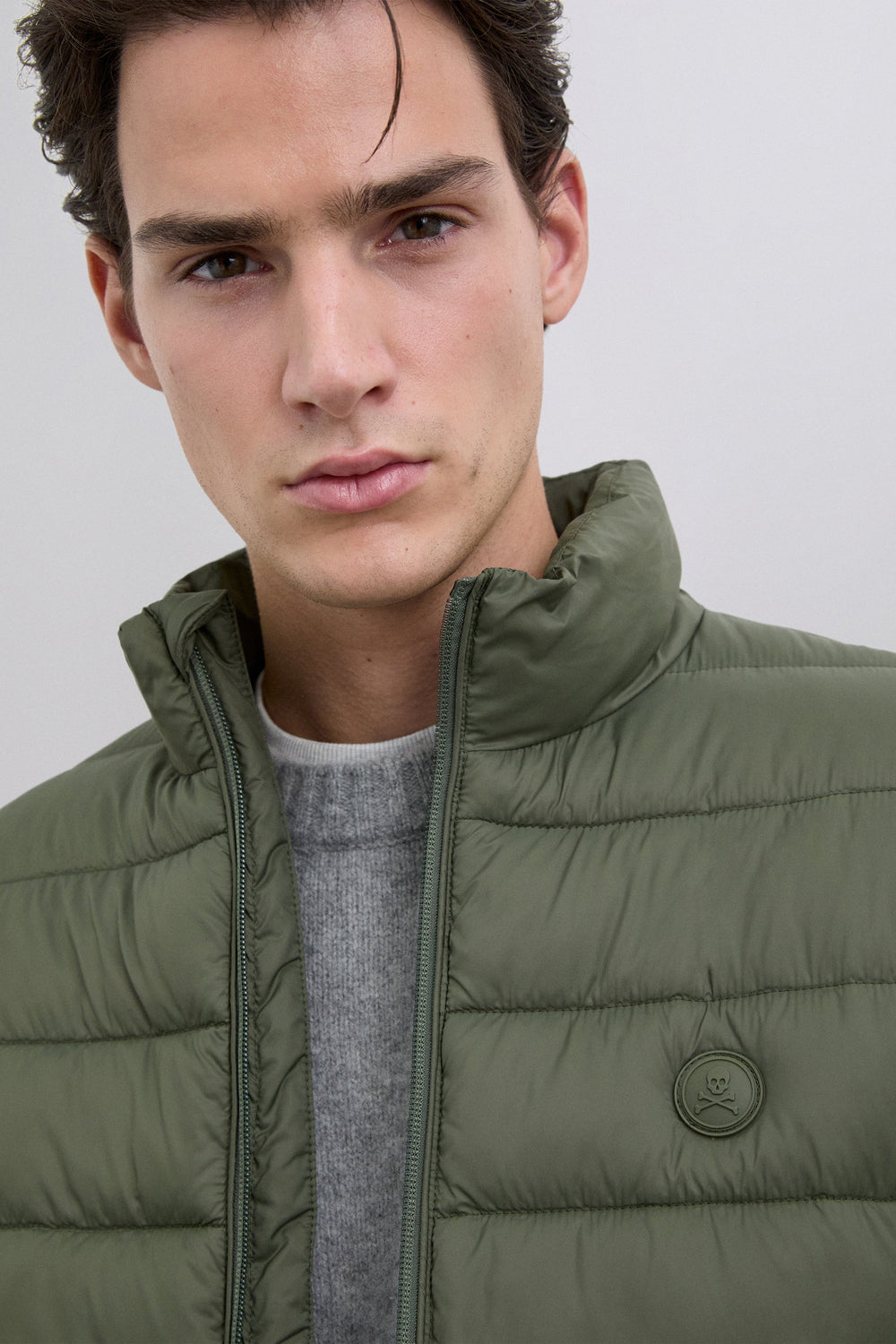 Puffer cardigan. Water repellent. Inner lining made of technical fabric. Concealed side pockets with fleece lining. Engraved double slider zip fastening. Rubberised patch with matching logo on chest.