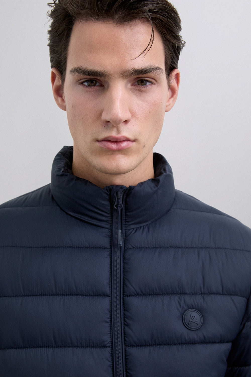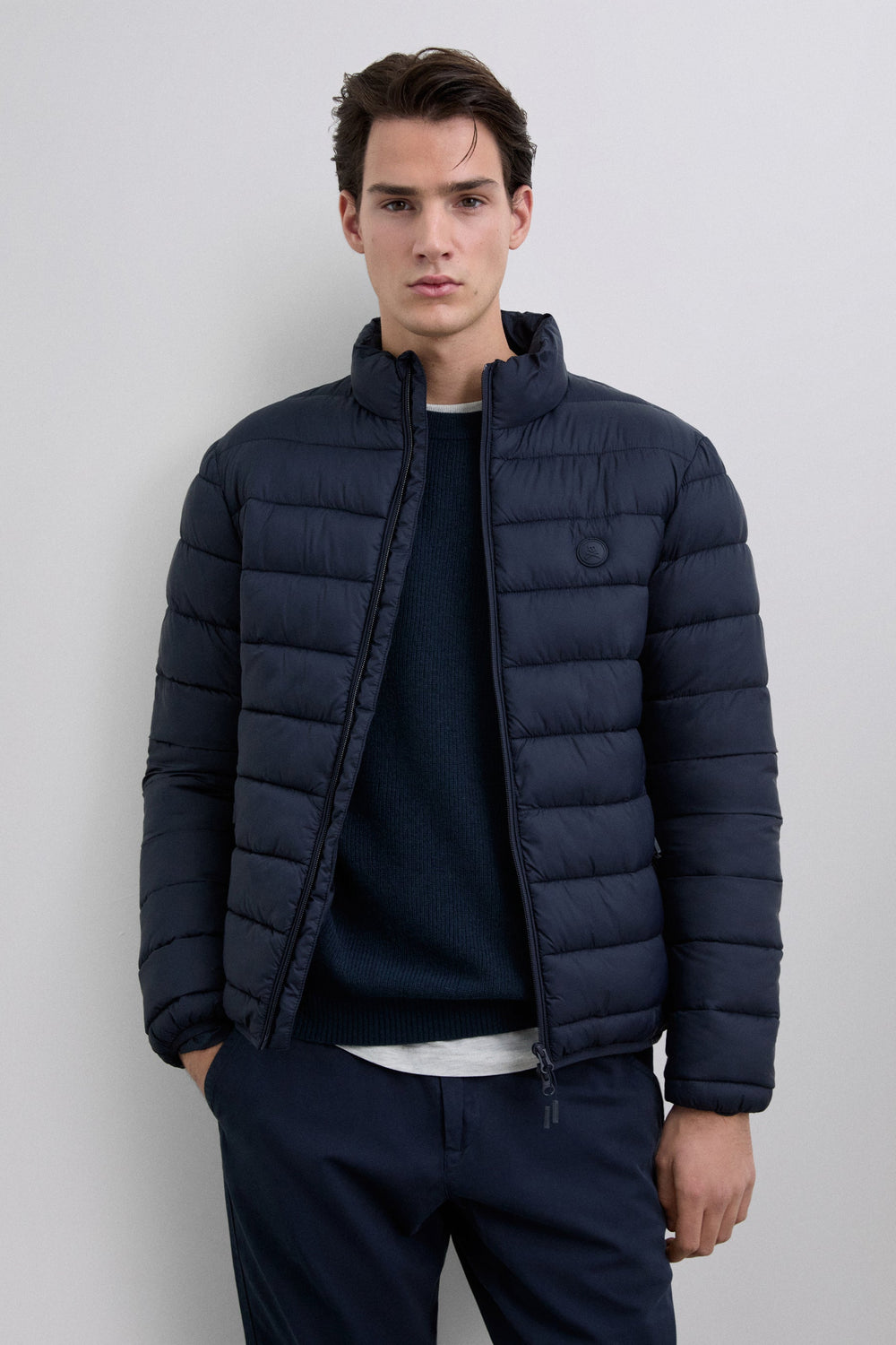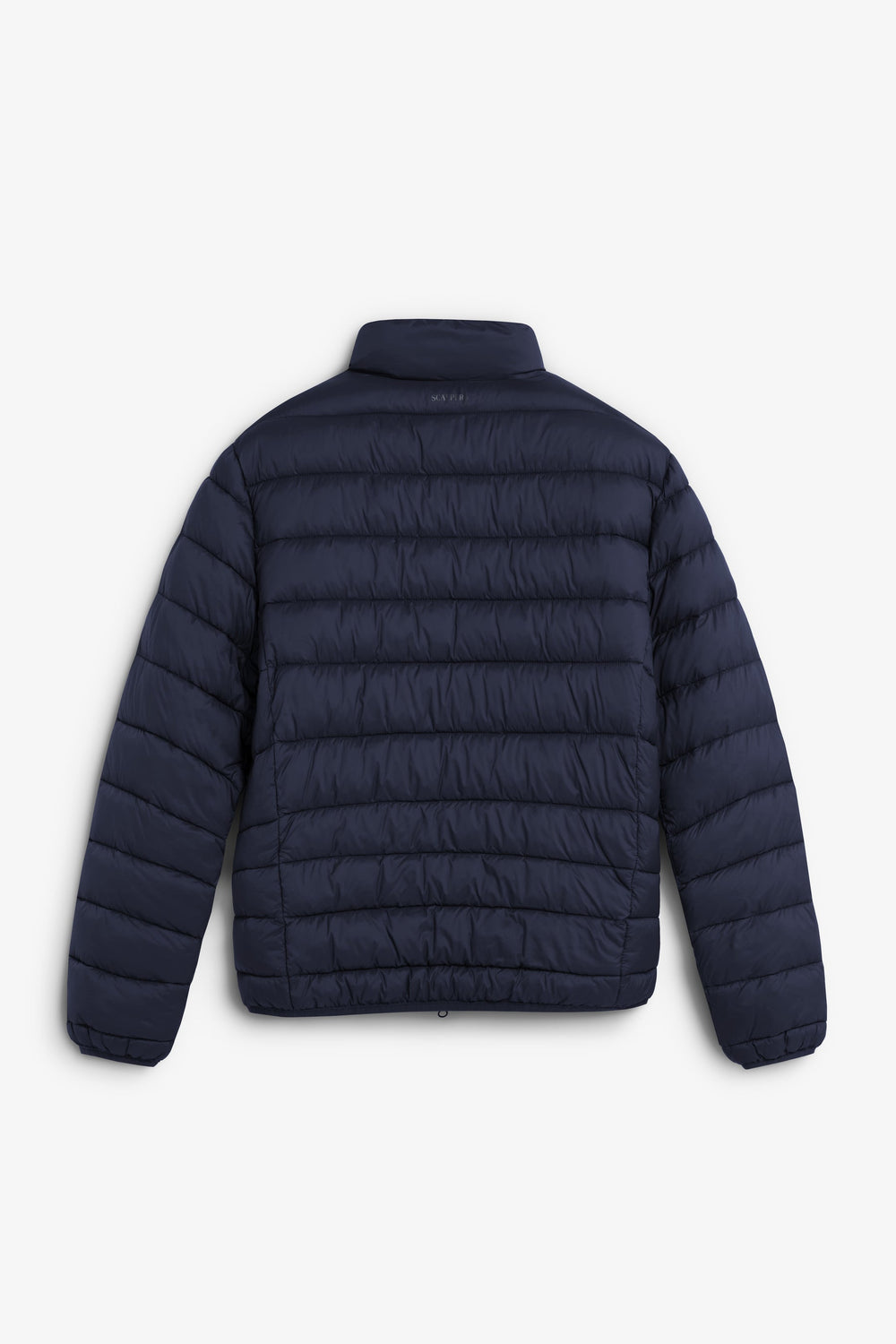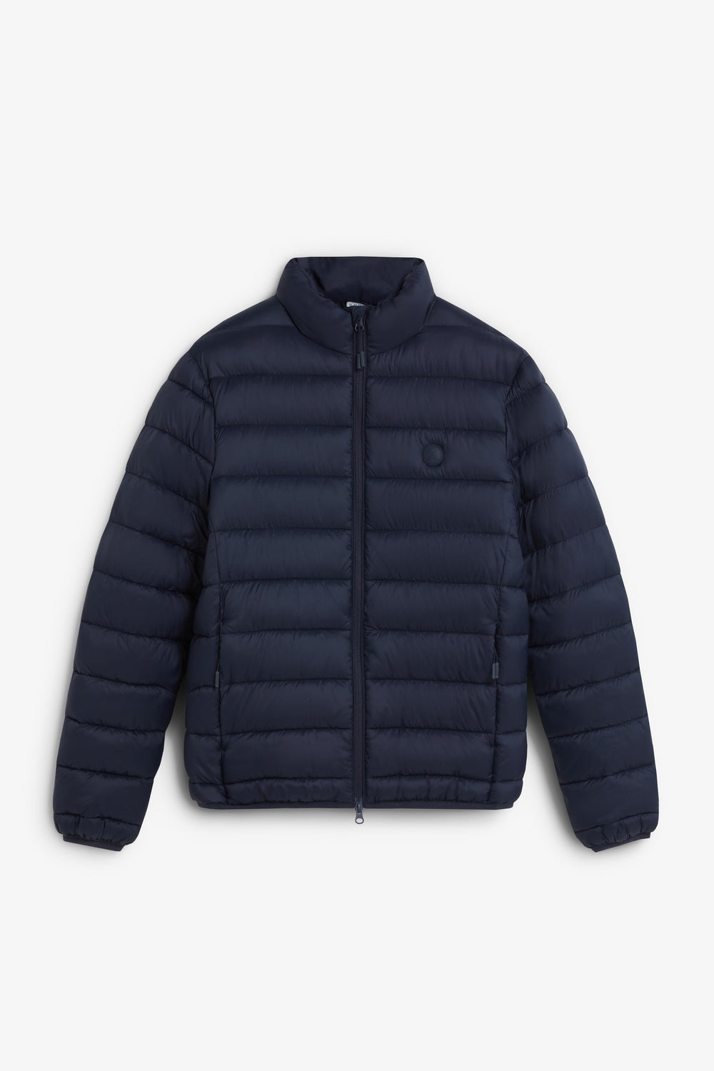 Puffer cardigan. Water repellent. Inner lining made of technical fabric. Concealed side pockets with fleece lining. Engraved double slider zip fastening. Rubberised patch with matching logo on chest.