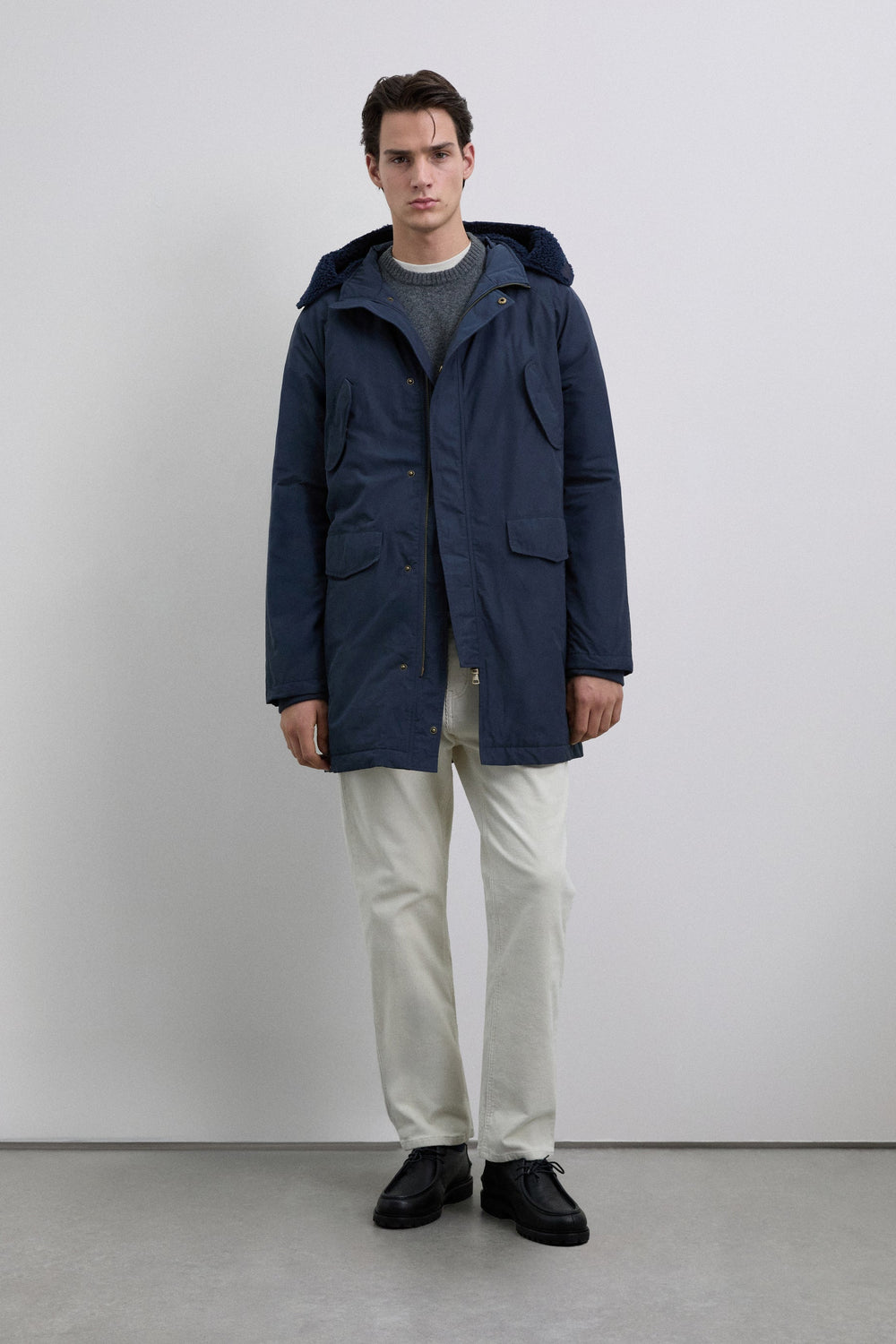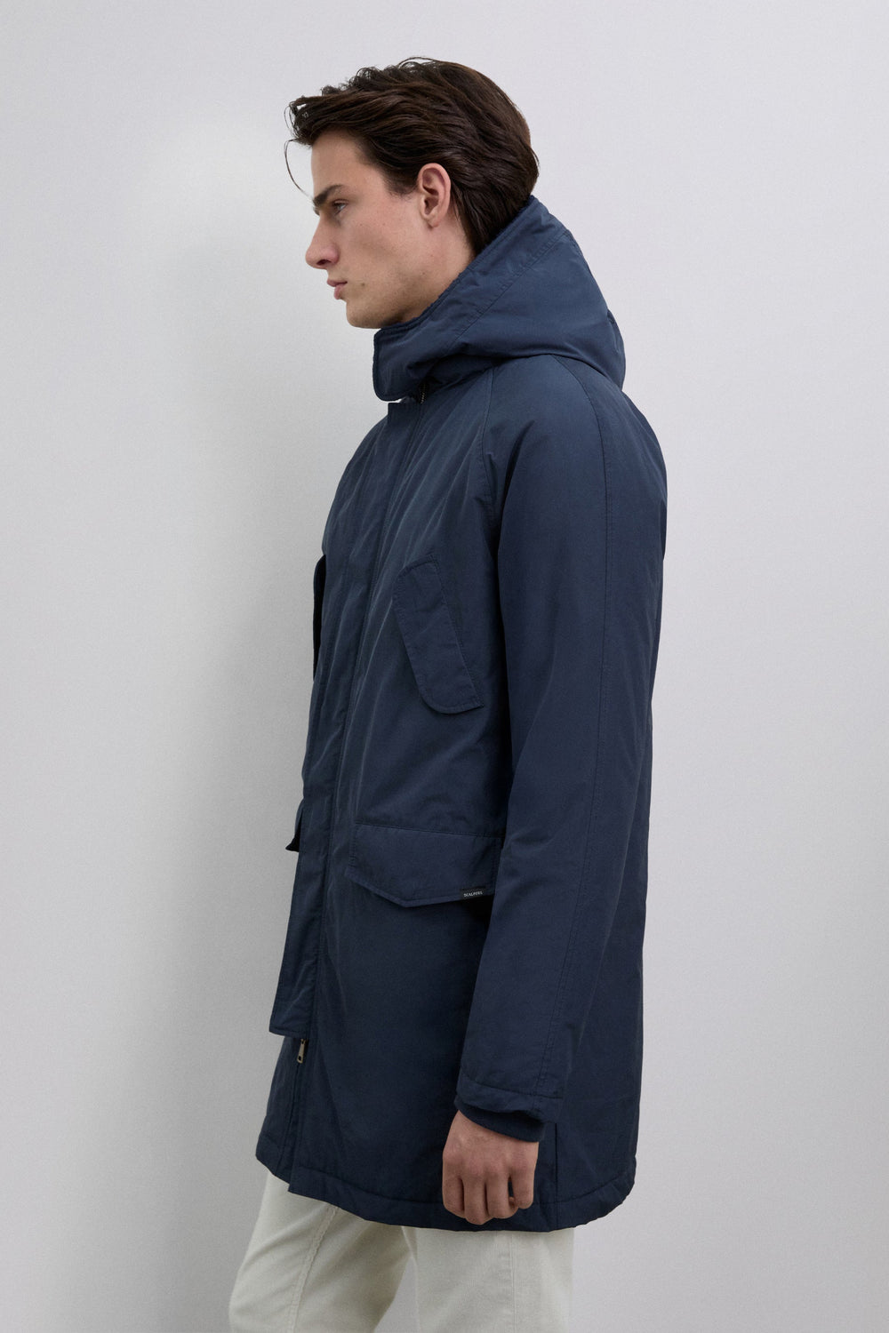 Waterproof parka with hood. Front zip fastening. Long sleeves. Padded garment with quilting. Four front pockets, two slanted flap pockets and two straight lower pockets. Thermolite filling. Fleece detail on the hood. Velcro neck fastening. Rubber logo patch detail on the pocket and skull print on the sleeve.