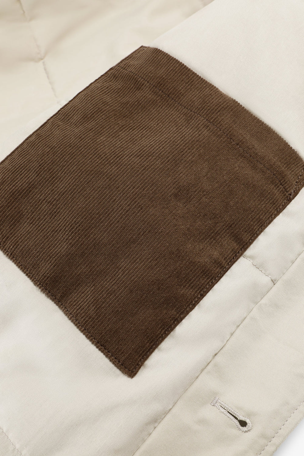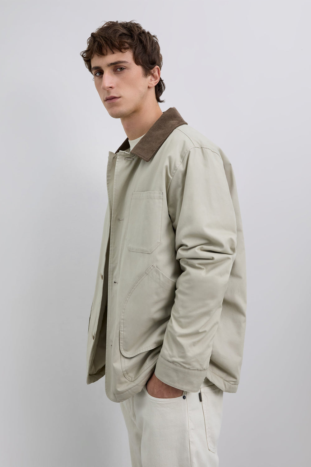 Jacket made of 100% cotton. Contrast corduroy collar. Front button fastening. Three front pockets, one patch chest pocket and two lower slanted pockets. Long sleeves. Cuffs with button fastening.
