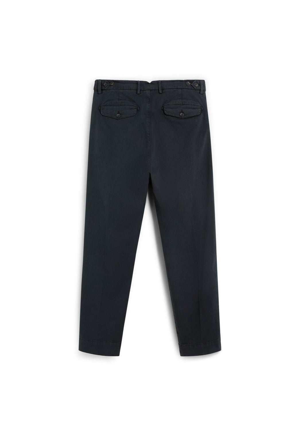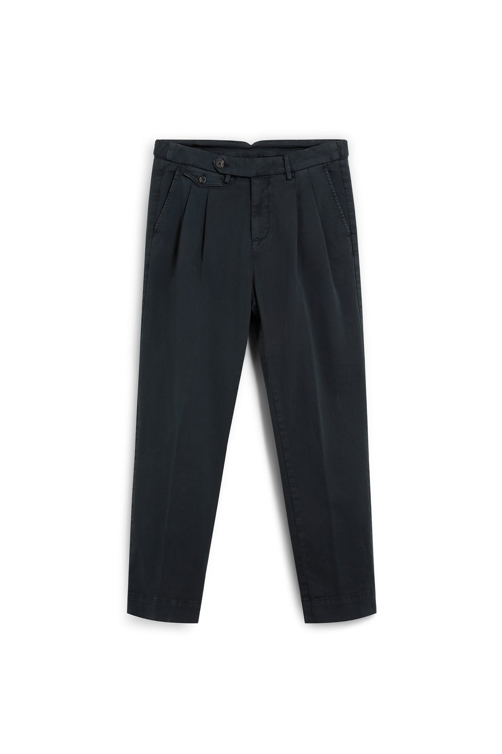 Cotton trousers with darts. Regular fit. Waistband with front pleat detail. Side pockets and back pockets with piped seam detail. Front zip and button fastening.