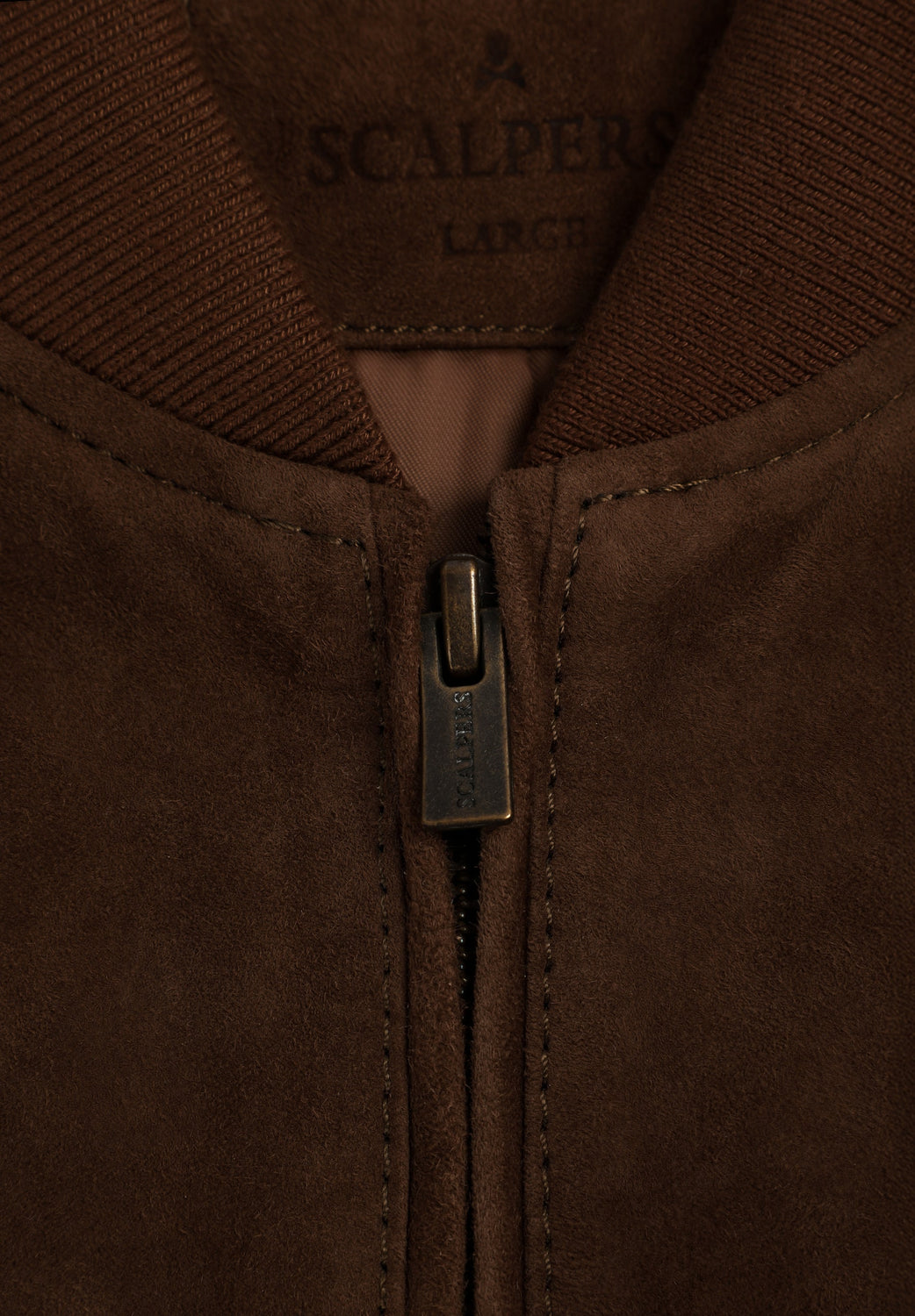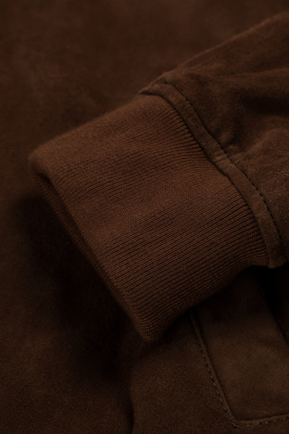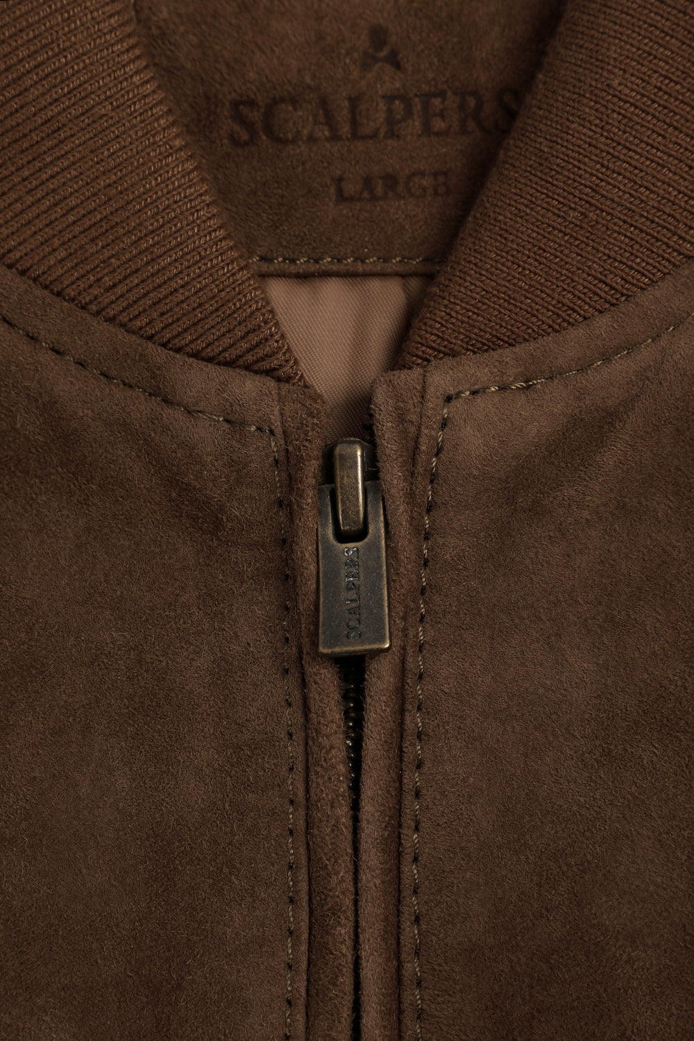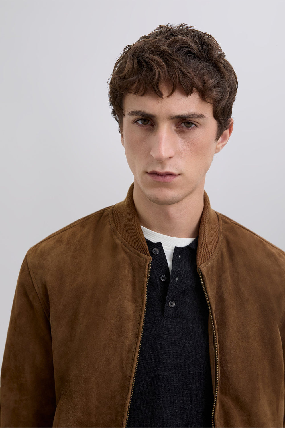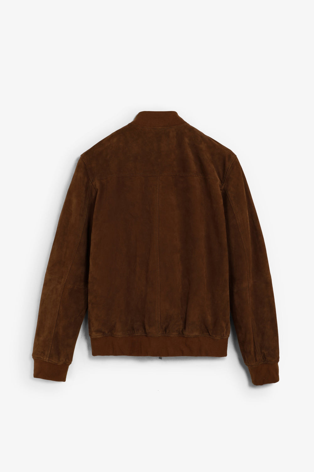 Bomber jacket made of 100% leather. Long sleeves. Ribbed trim on collar, cuffs and waistband. Front double slider zip fastening. Two front slant pockets. Embroidered details on logo label and skull on the inside.