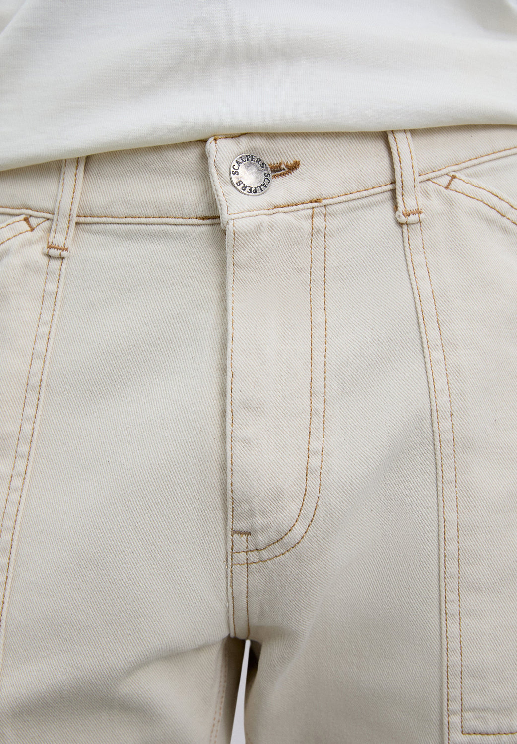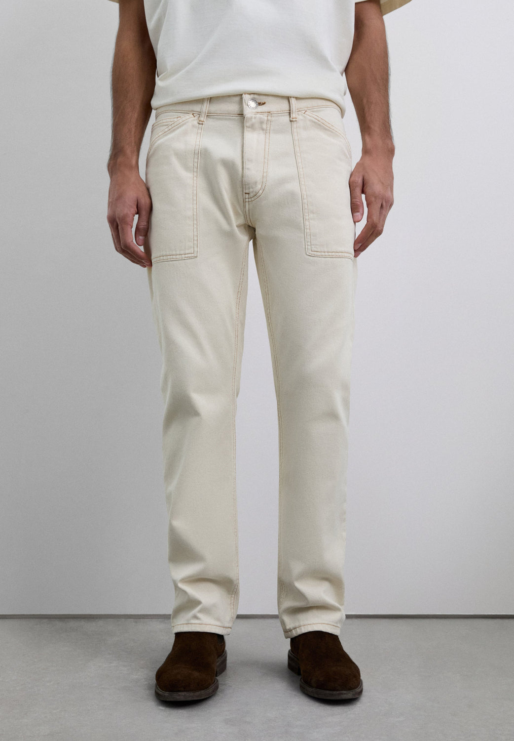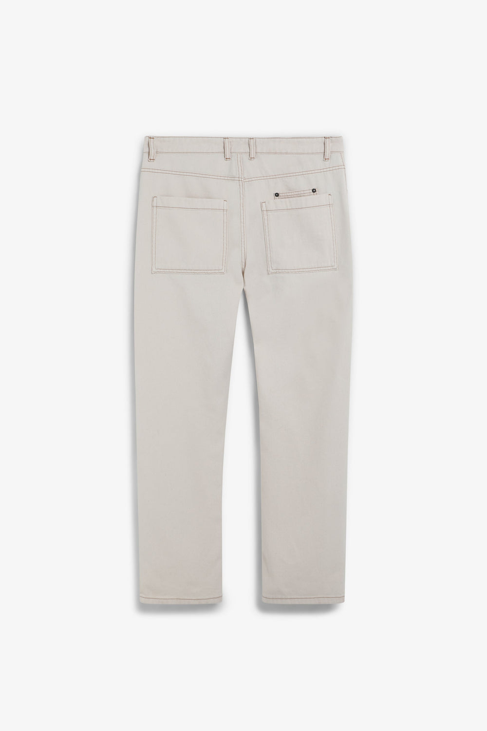 Carpenter-style jeans made of 100% cotton. Cropped Button and zip fastening. Side and back pockets. Belt loops at the waist.