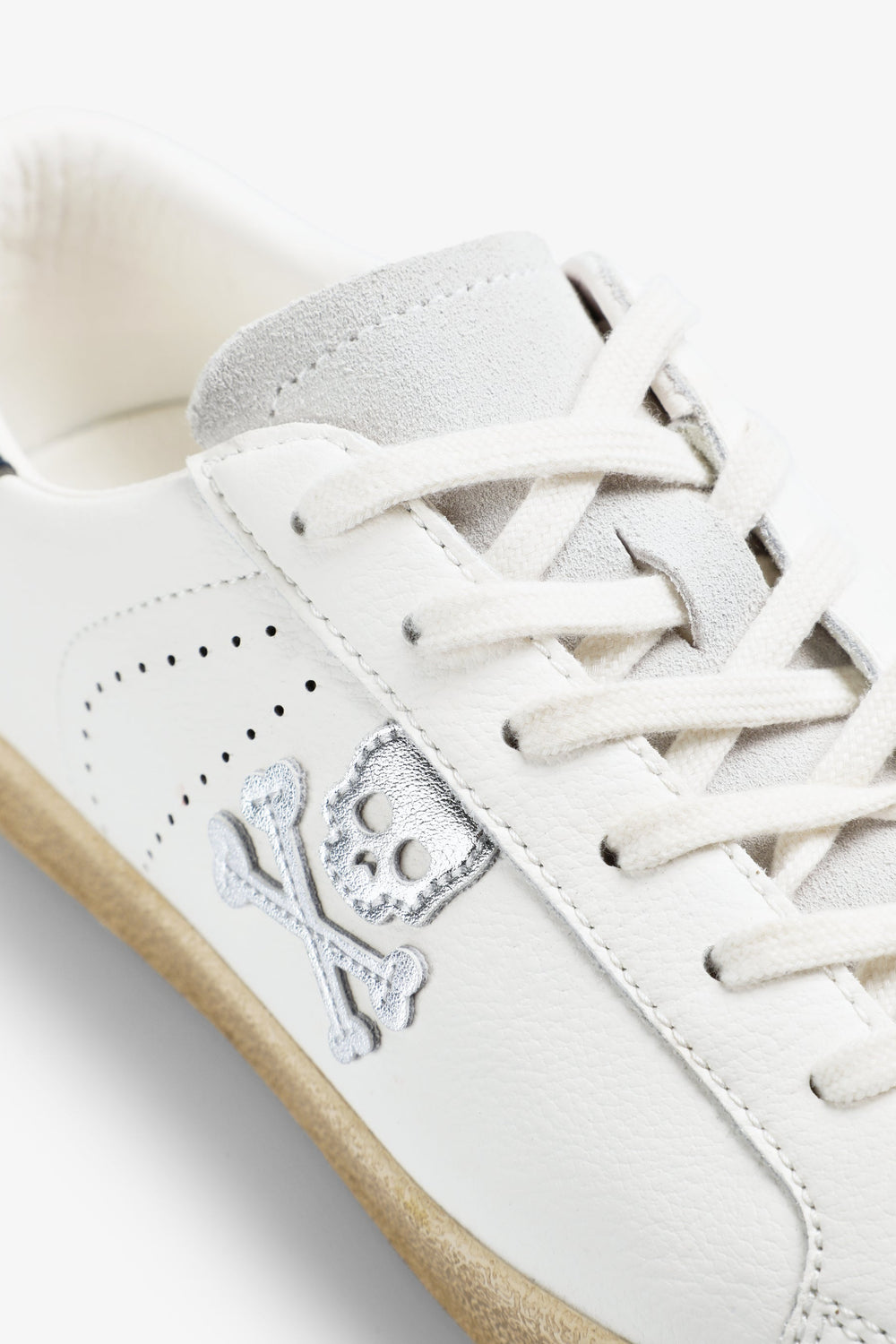 Low-top glitter sneakers with suede skull on the side. Contrasting lace-up fastening. Rubber sole Contrast suede details.