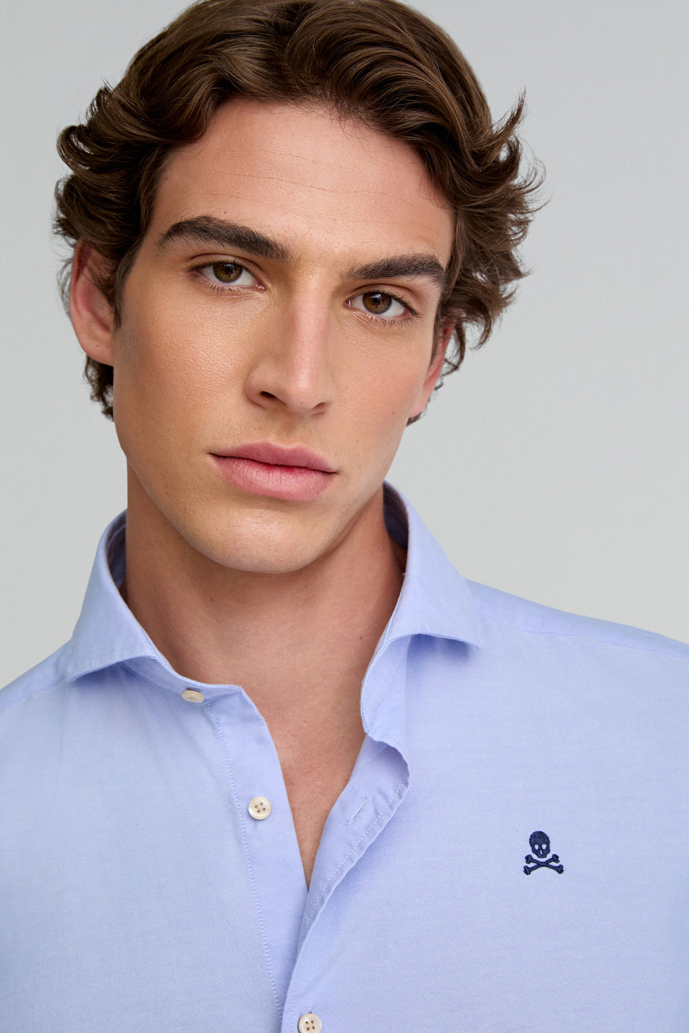 Plain formal shirt. Made of 100% cotton. Regular fit. Cutaway collar. Button fastening. Long sleeves with barrel cuffs. Embroidered skull detail on the chest.