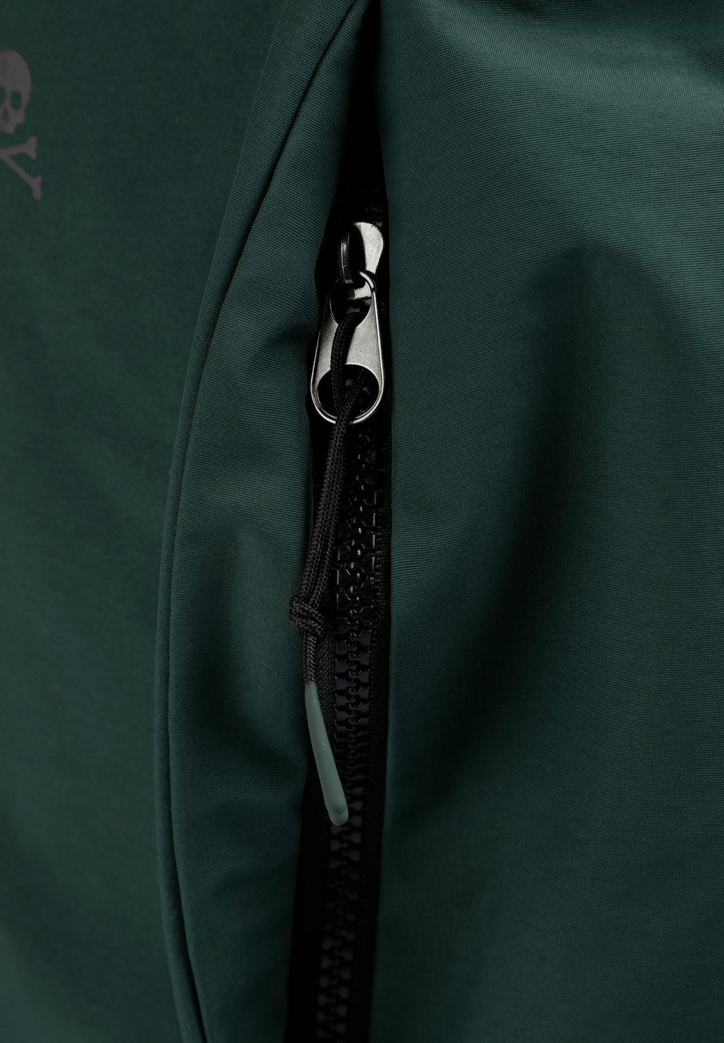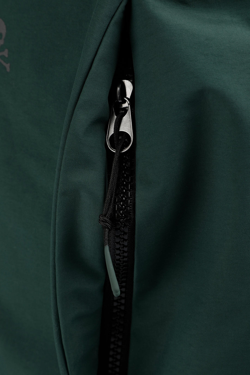 Backpack made of a technical fabric. Top handle. Additional pockets on top and front. Matching logo on the front. Inner compartment for laptop.