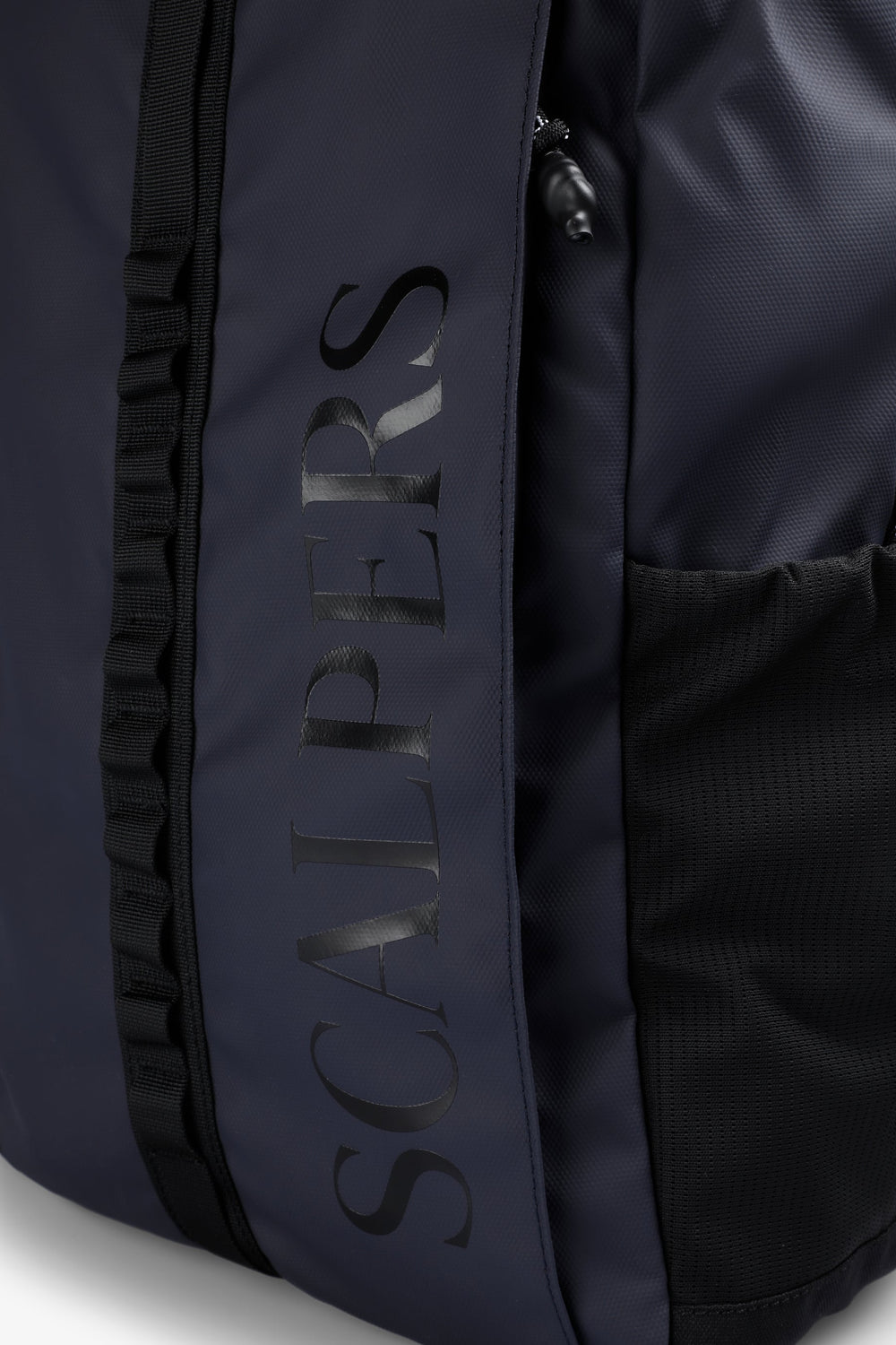 Technical backpack with zipped outer pocket, adjustable side pockets, padded mesh handles and back. Inner zipped pocket. Matching logo on the front.