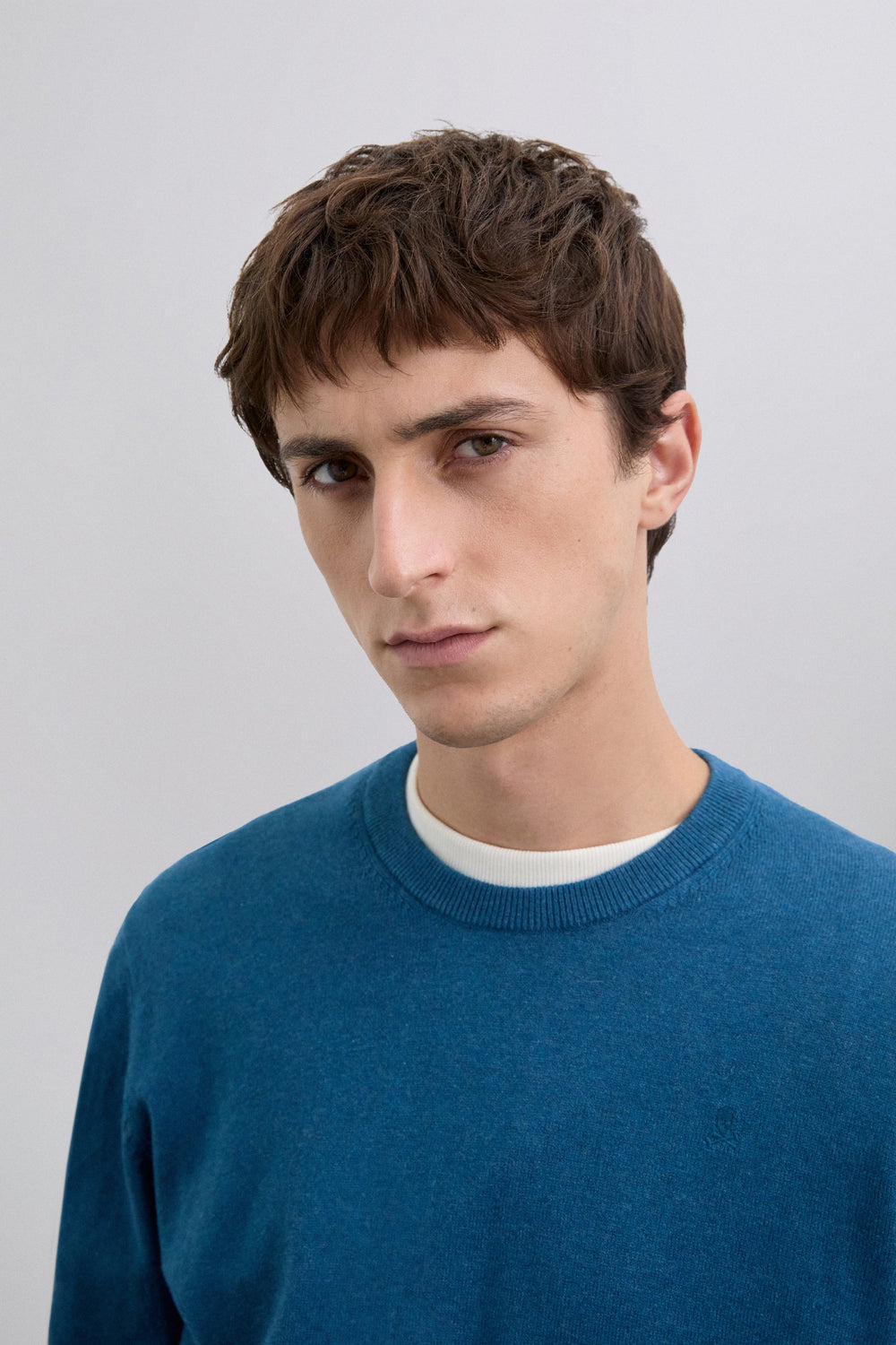 Sweater made of cotton. Long sleeves. Round neck. Matching embroidered skull detail on the chest. Ribbed trim.