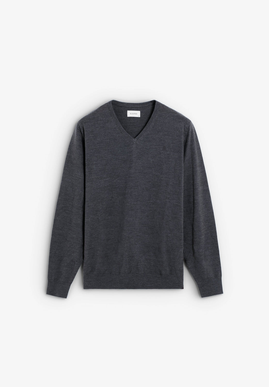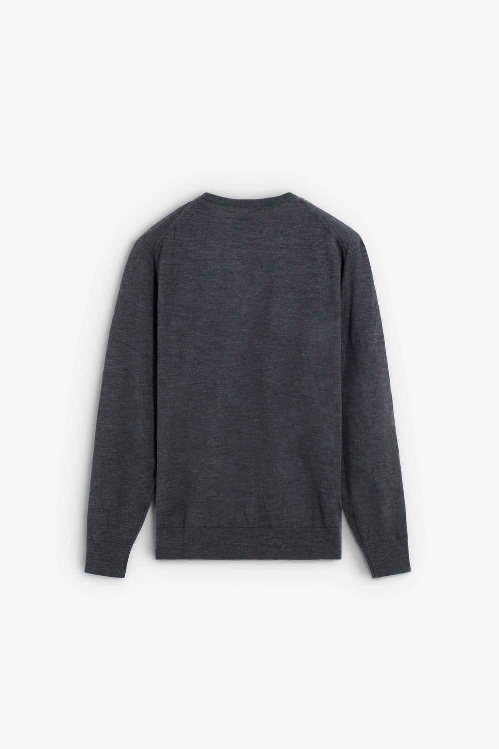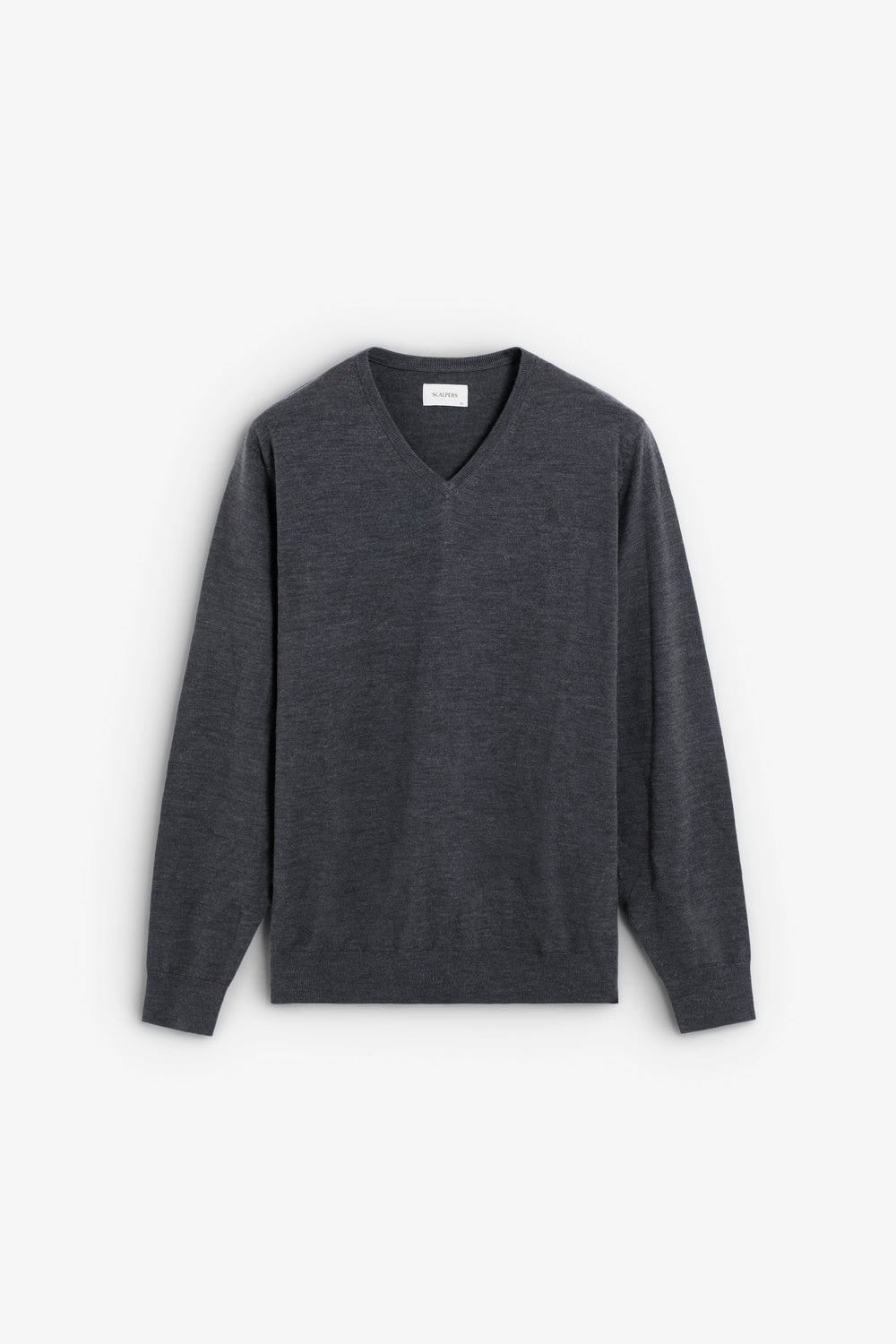 Sweater made of 100% wool. Regular Fit. V-neck. Long sleeves. Matching embroidered skull detail on the chest. Ribbed trim.