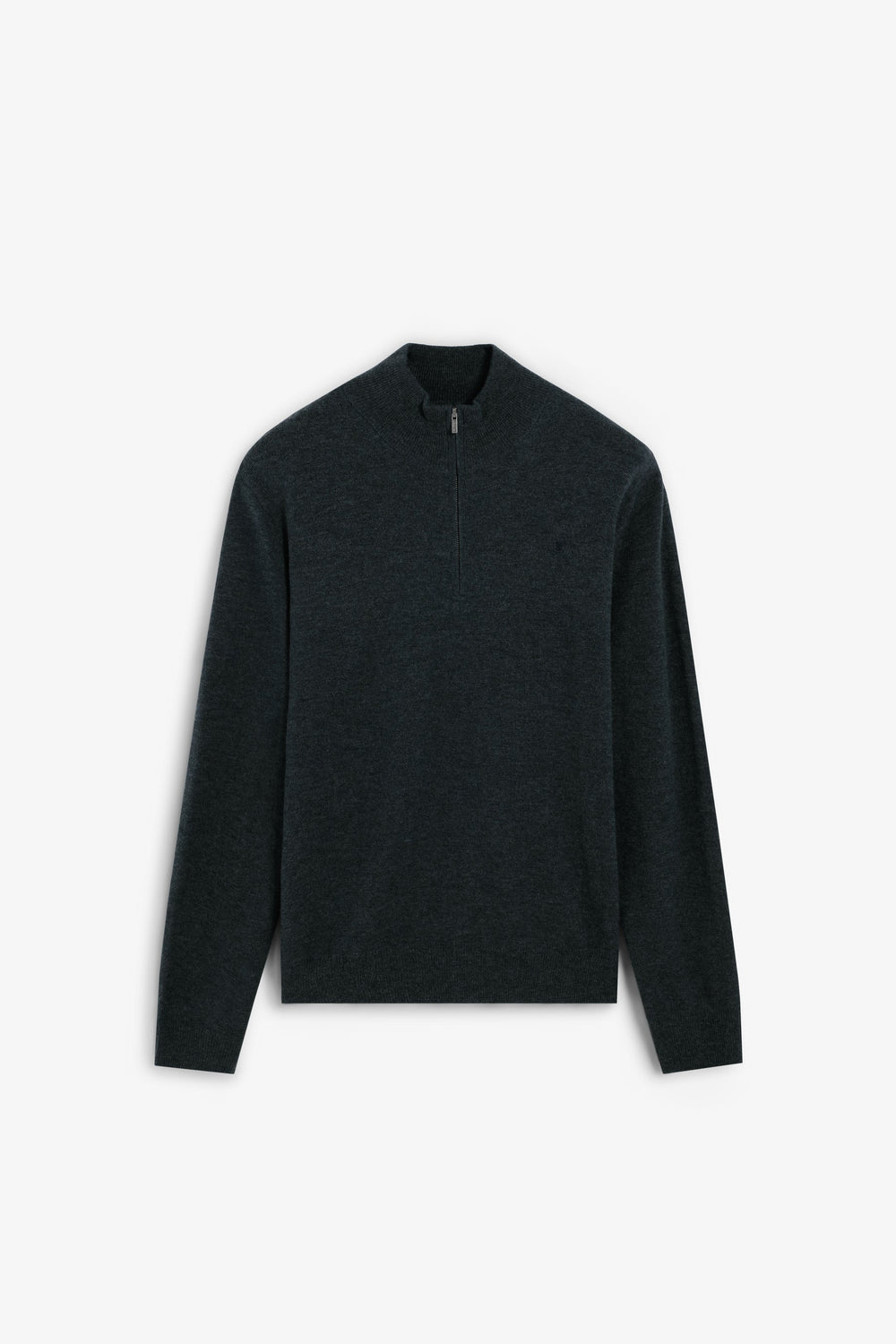 Sweater made of 100% wool. Regular Fit. Collar with half zip fastening. Long sleeves. Matching embroidered skull detail on the chest. Ribbed trim.