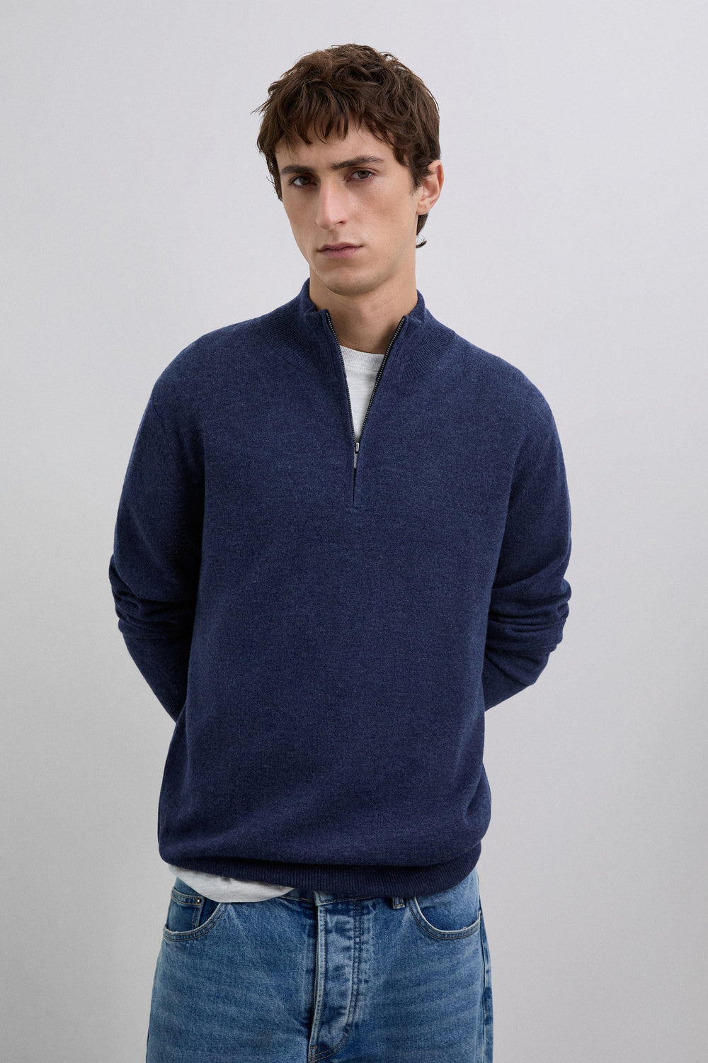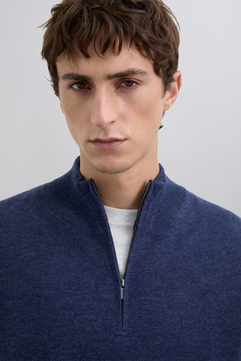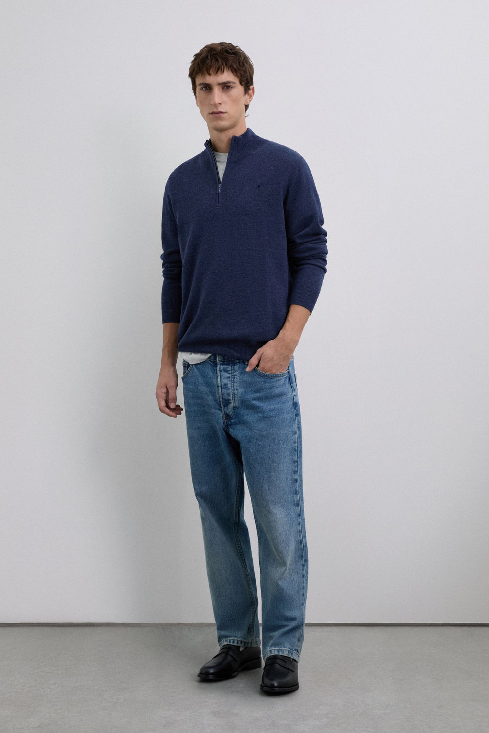 Sweater made of 100% wool. Regular Fit. Collar with half zip fastening. Long sleeves. Matching embroidered skull detail on the chest. Ribbed trim.