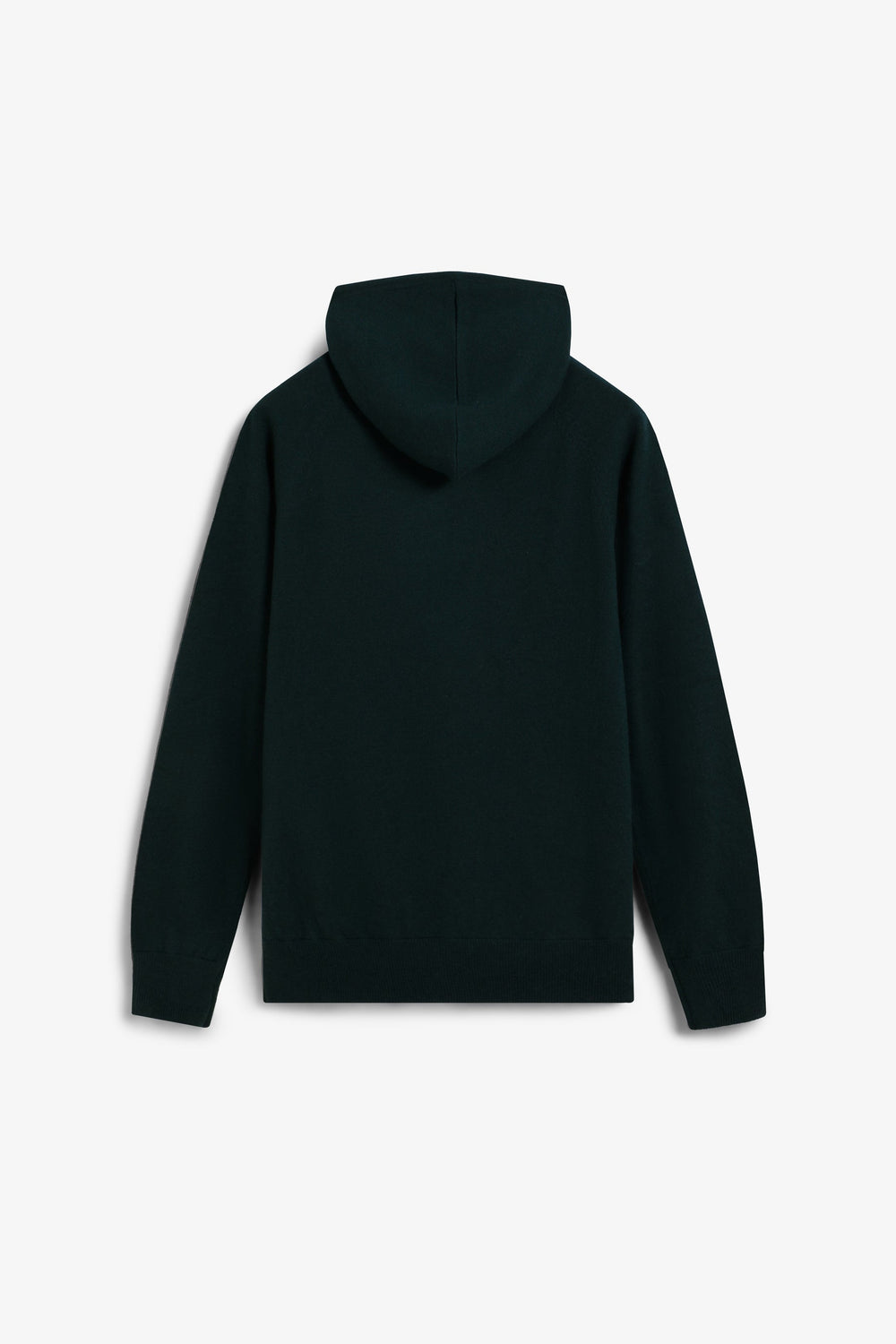 Sweater made of 100% wool. Adjustable drawstring hood. Long sleeves. Pouch pocket on the front. Ribbed cuffs and waistband.