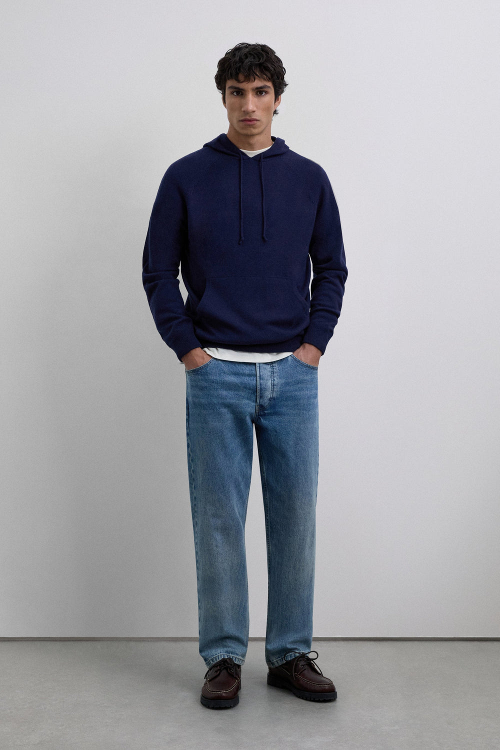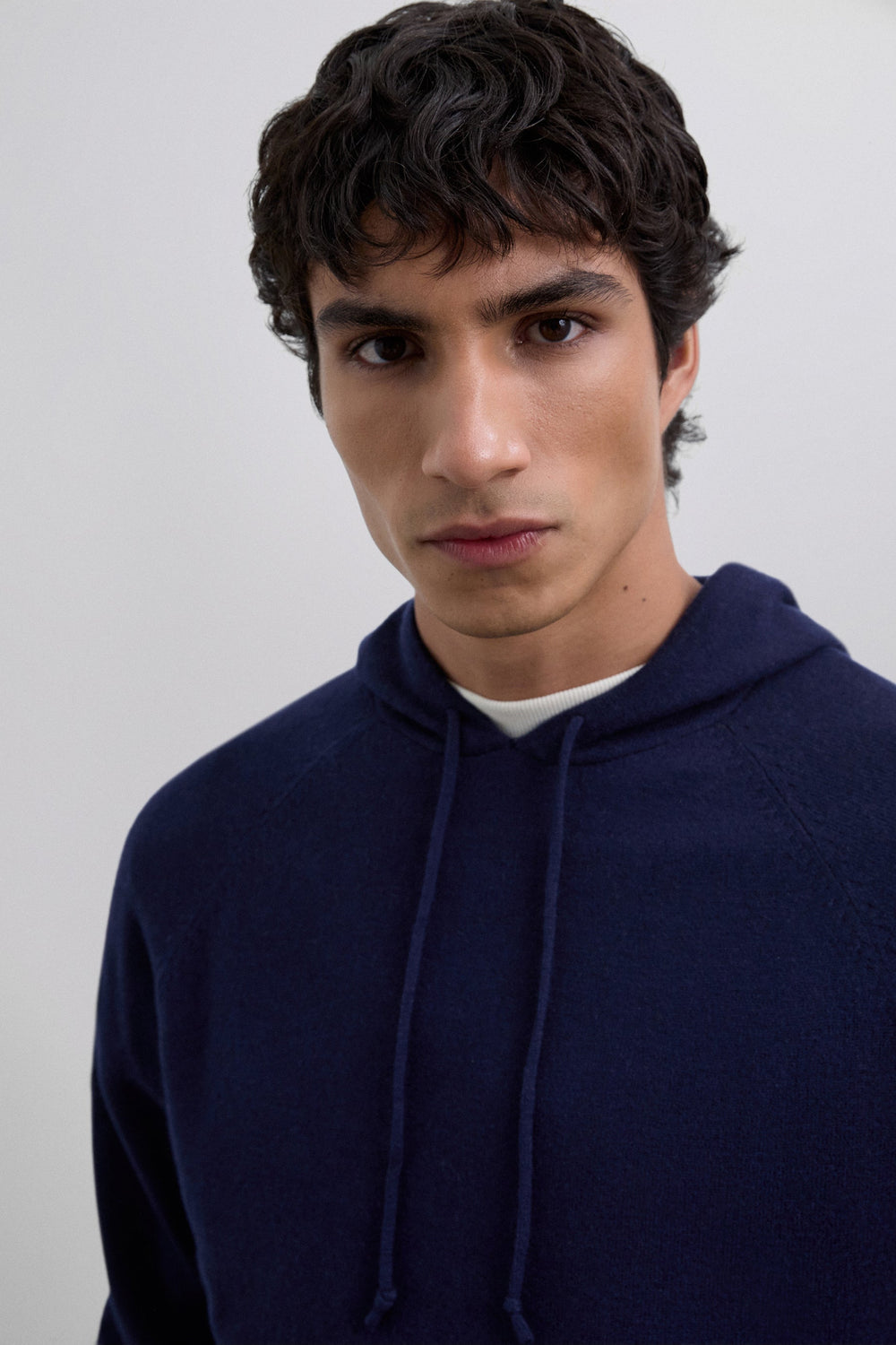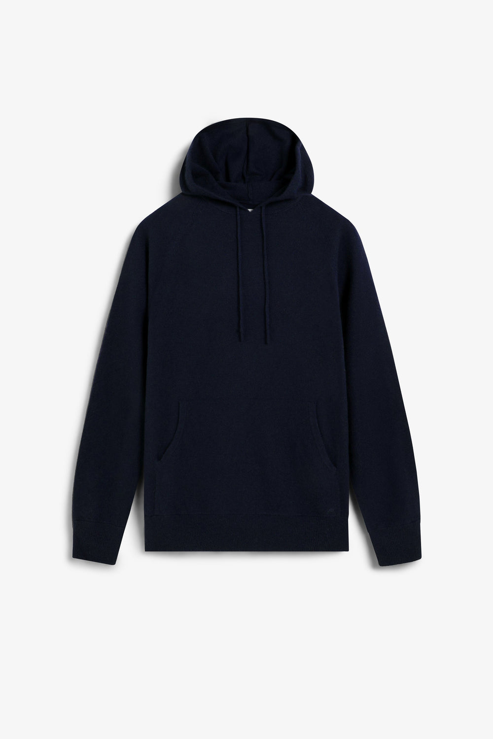 Sweater made of 100% wool. Adjustable drawstring hood. Long sleeves. Pouch pocket on the front. Ribbed cuffs and waistband.