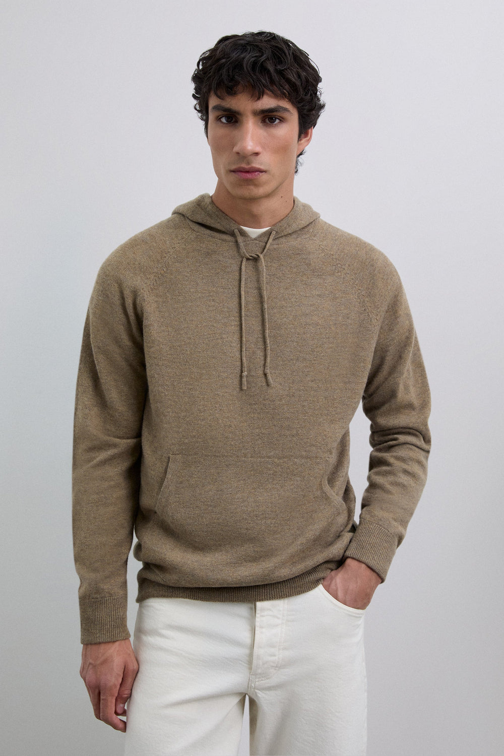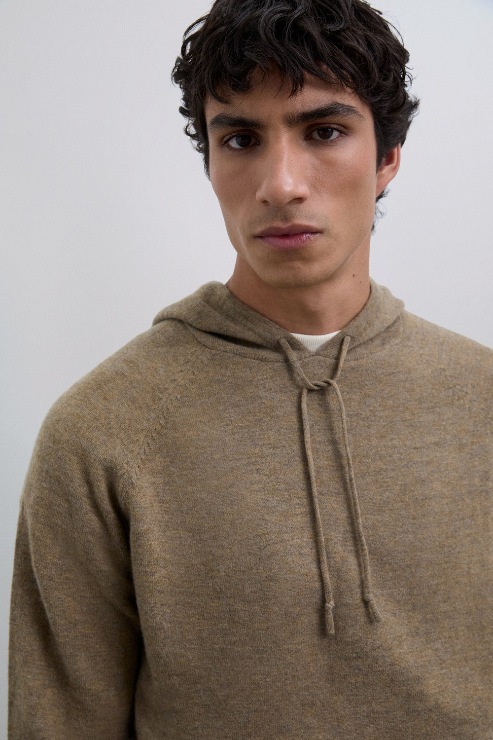 WOOL SWEATER WITH ADJUSTABLE HOOD