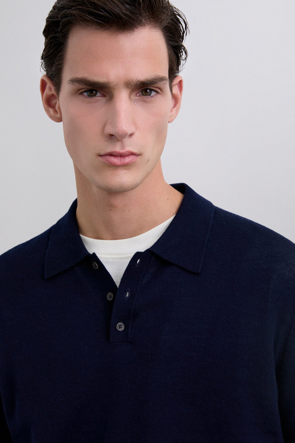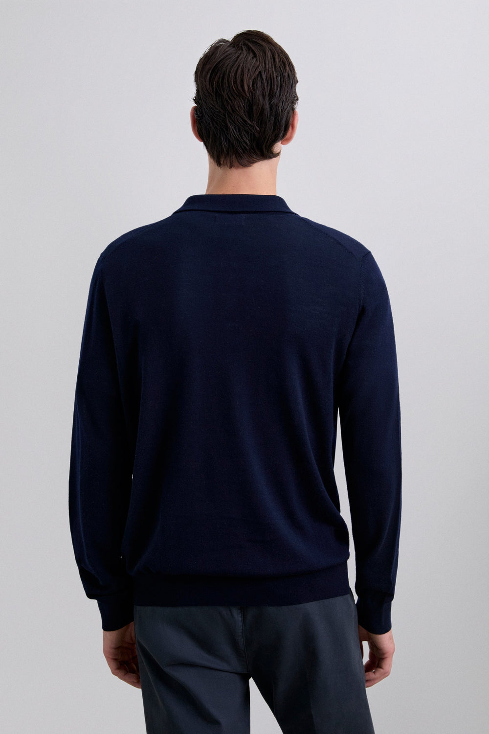 Sweater made of 100% wool. Long sleeves. Polo shirt collar. Button fastening.