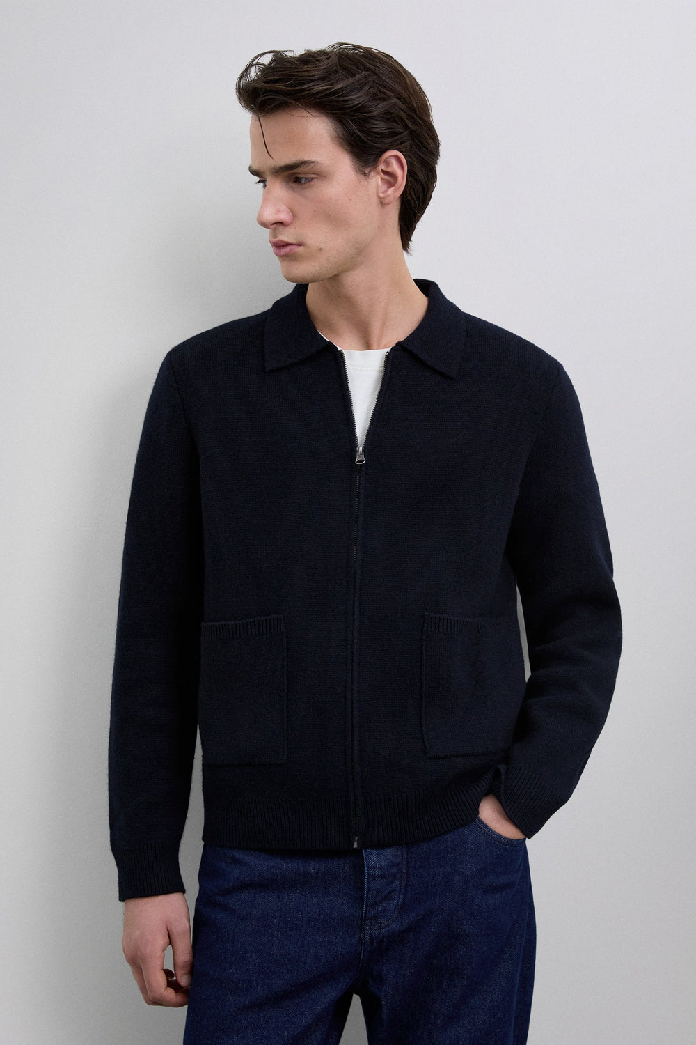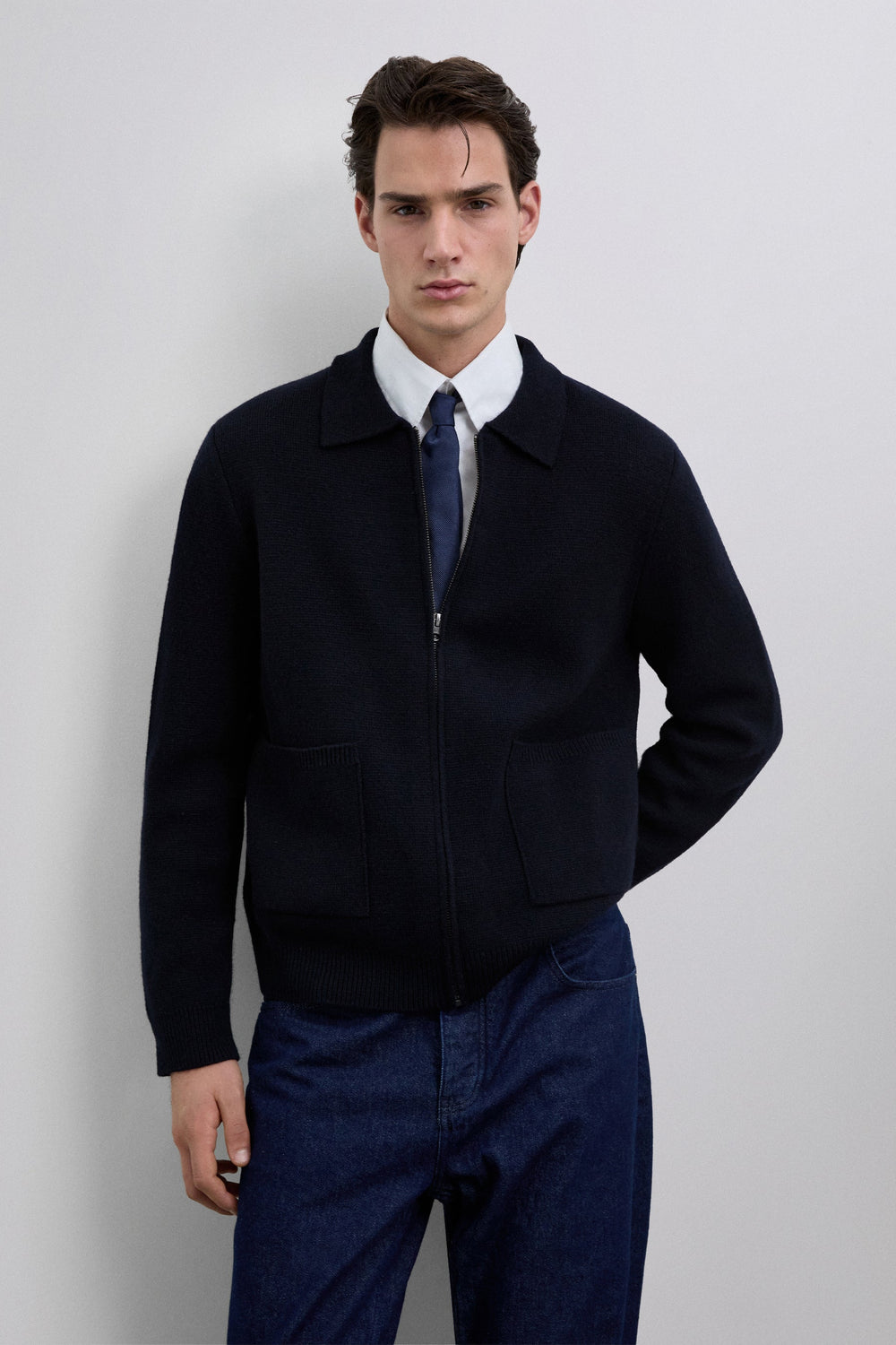 Cardigan made of 100% merino wool. Zip fastening. Front pockets. Long sleeves. Regular fit. Ribbed trim.